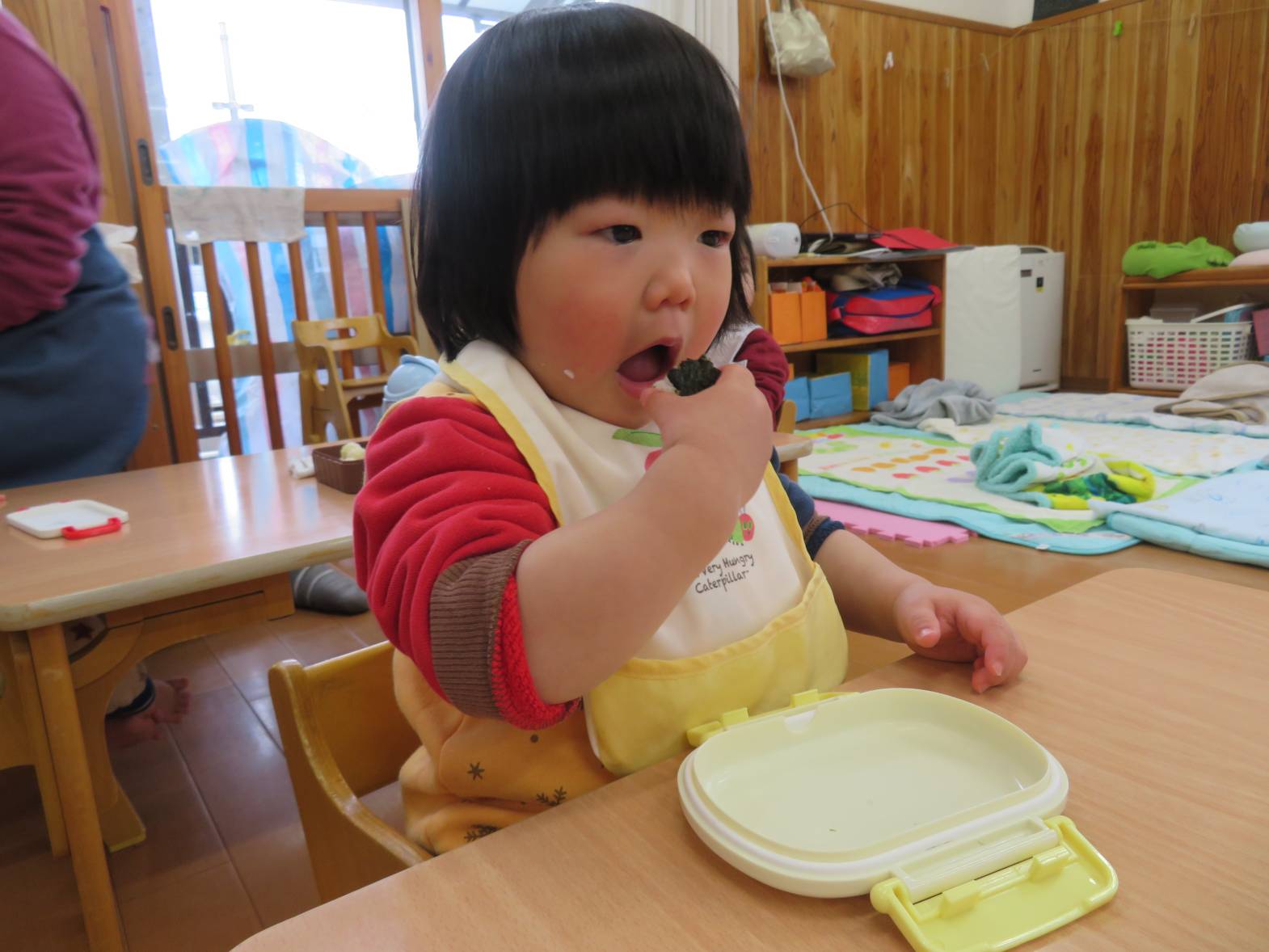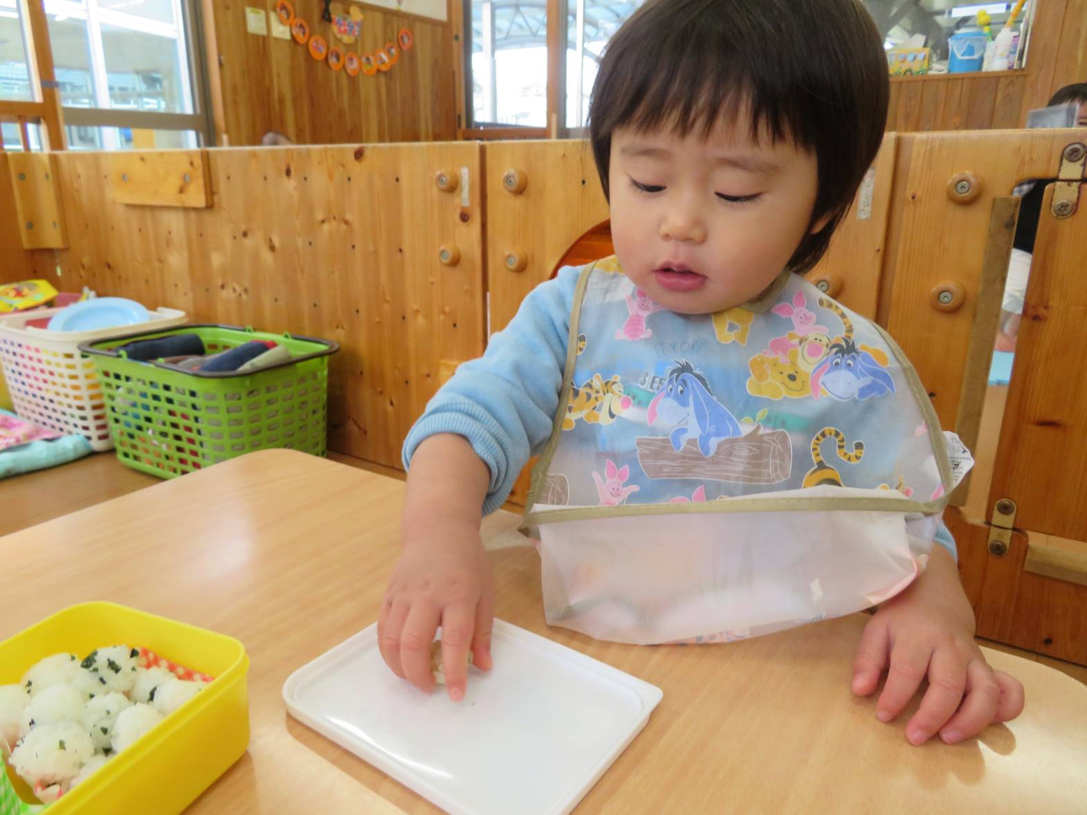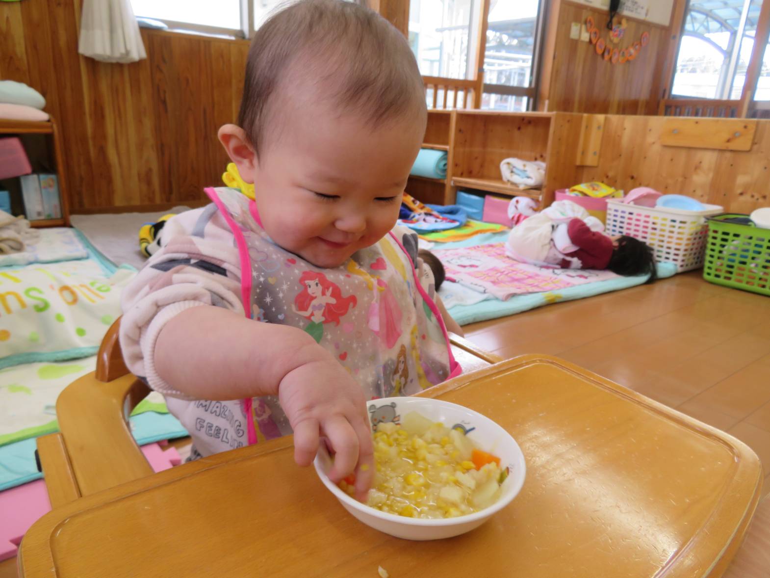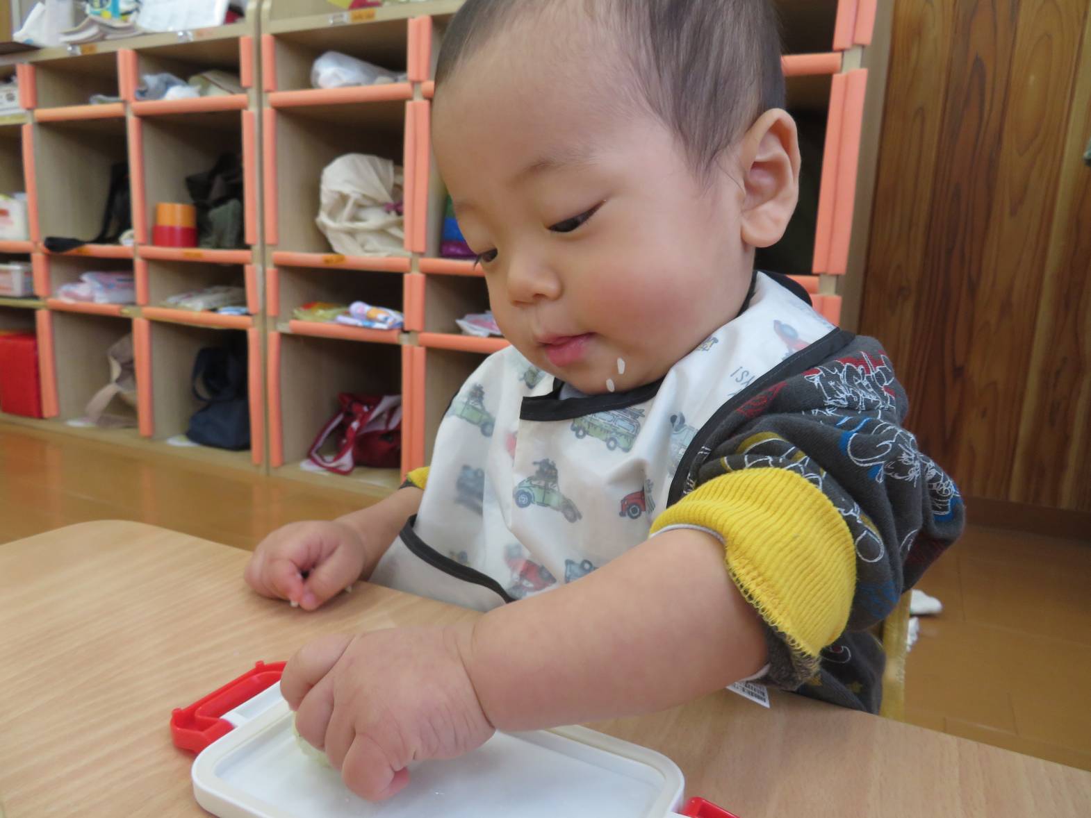 たくさん体を動かし、お腹が空いたひよこ組さん。