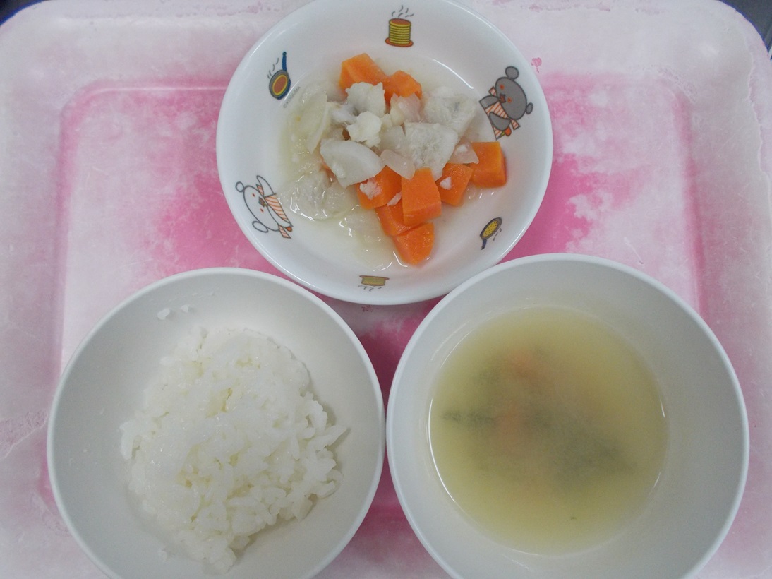 1月14日(火)から1月18日(土)までの給食献立写真・離乳食提供量と写真の一例です。