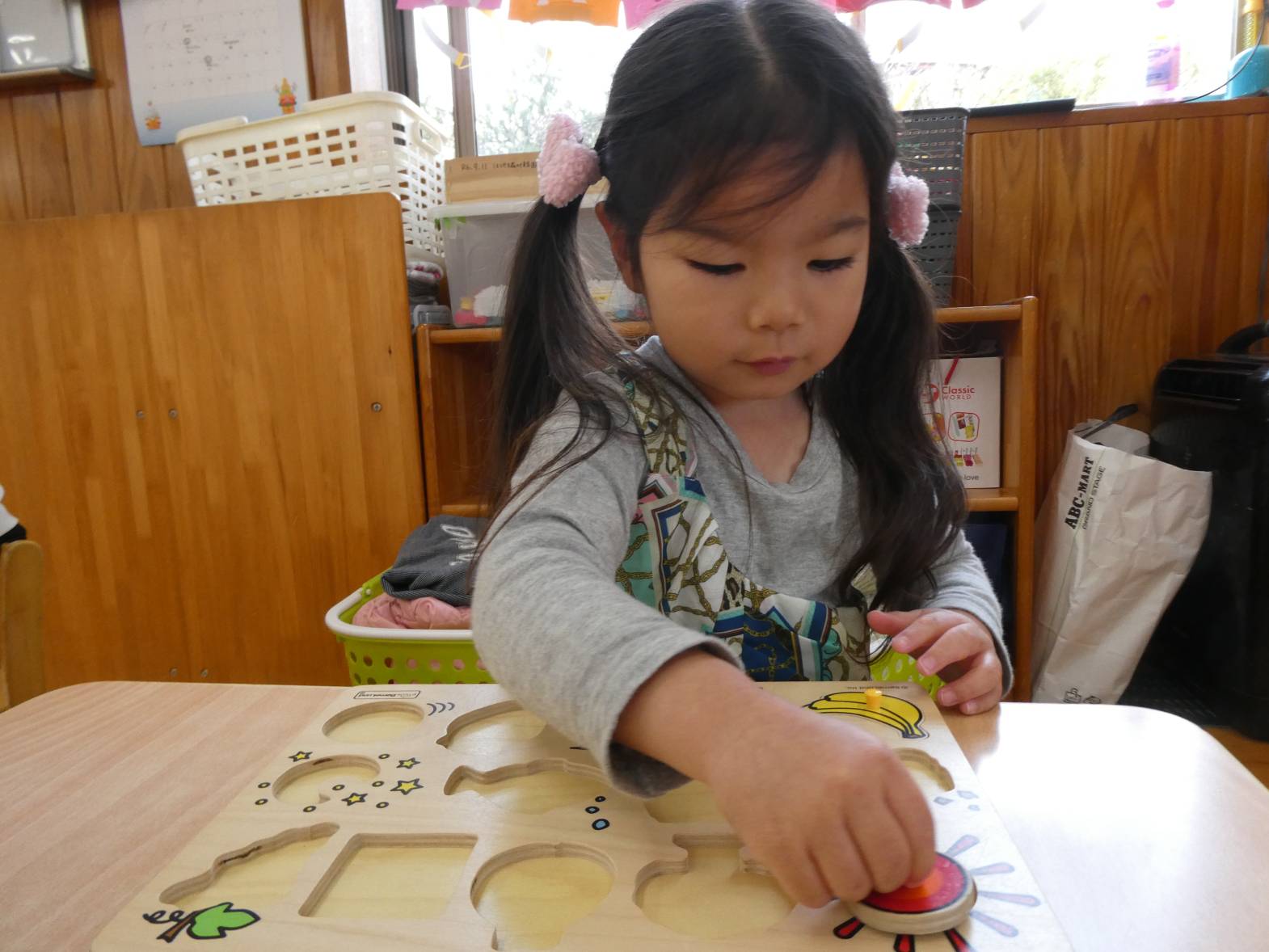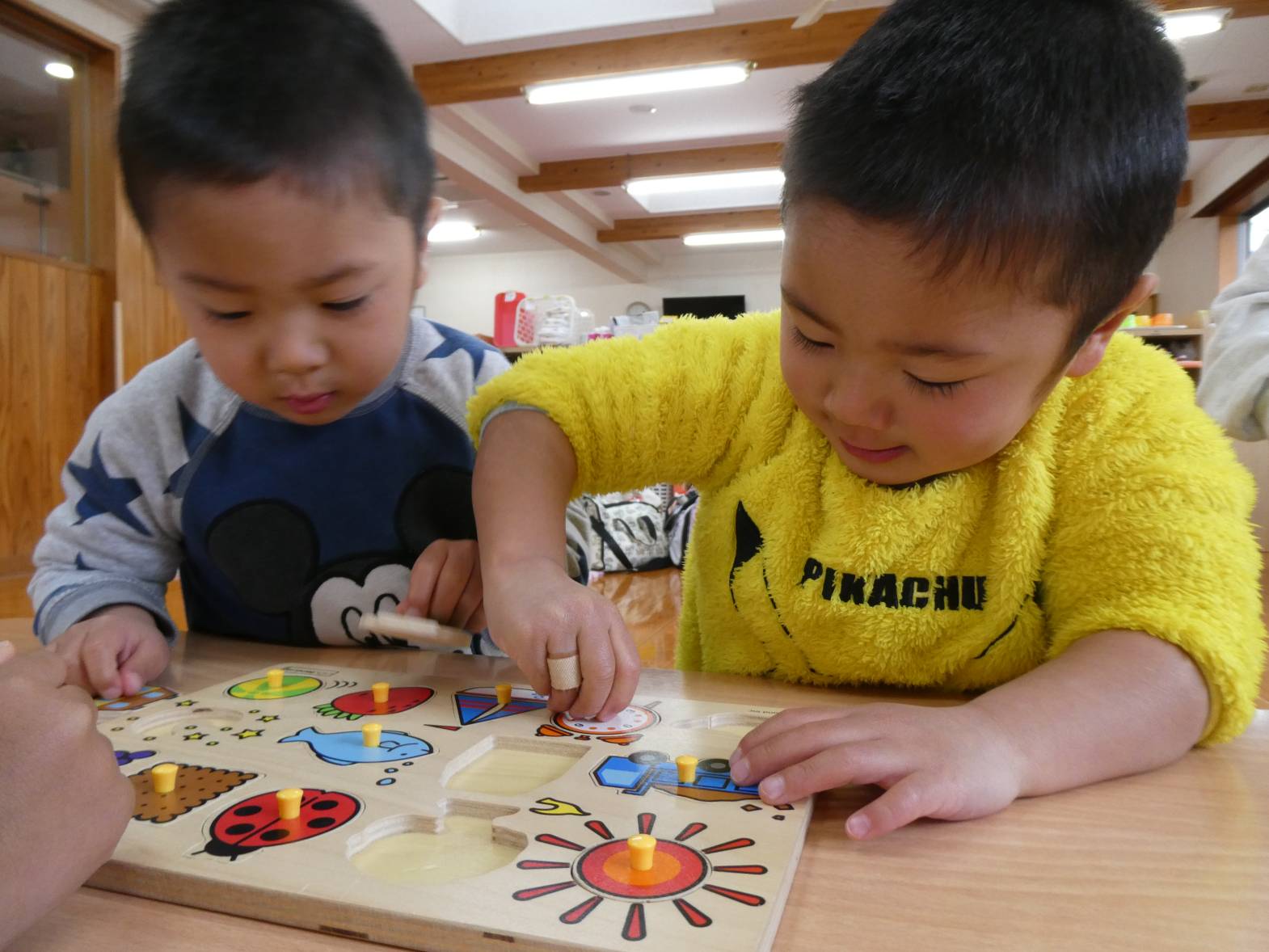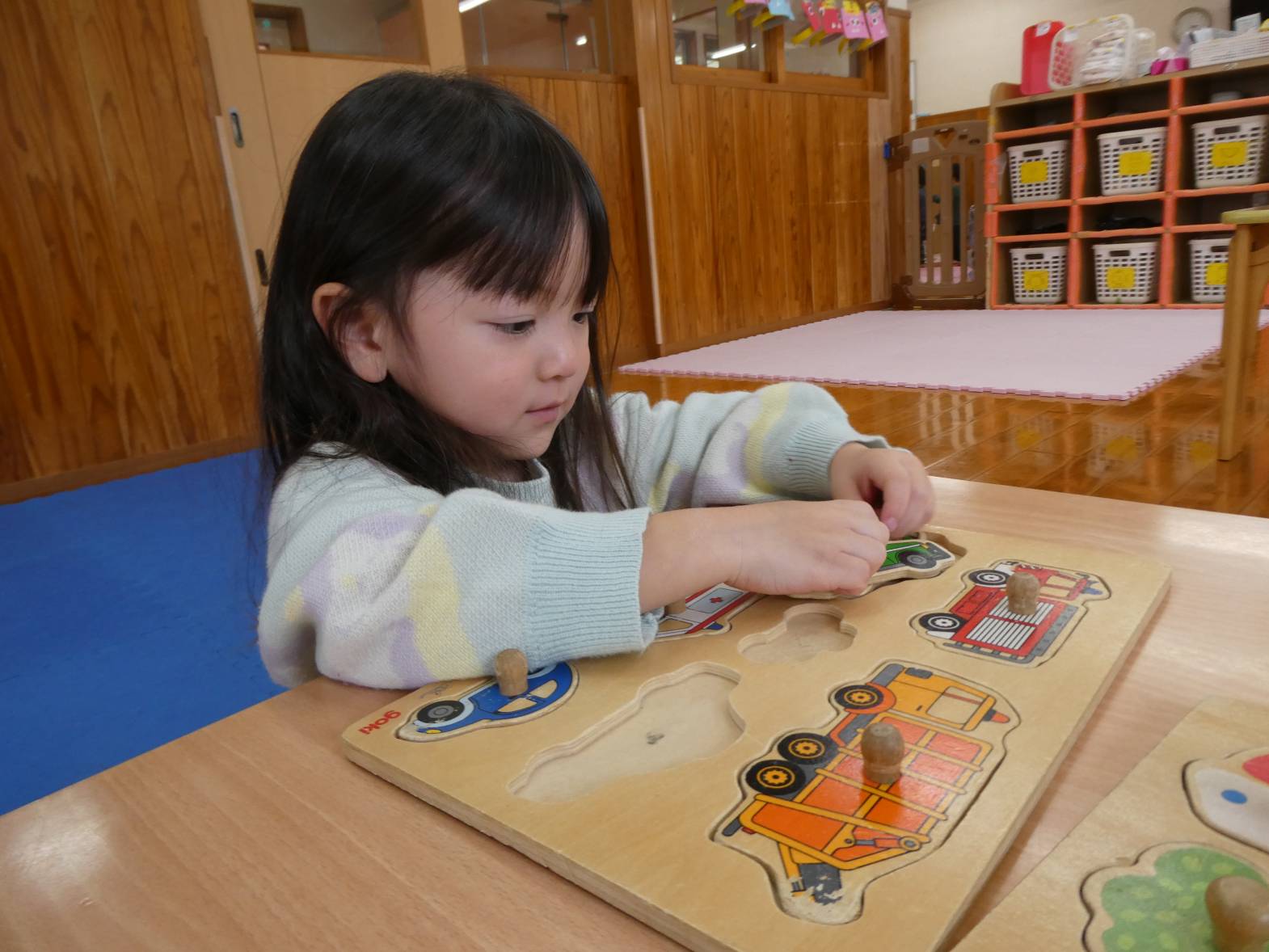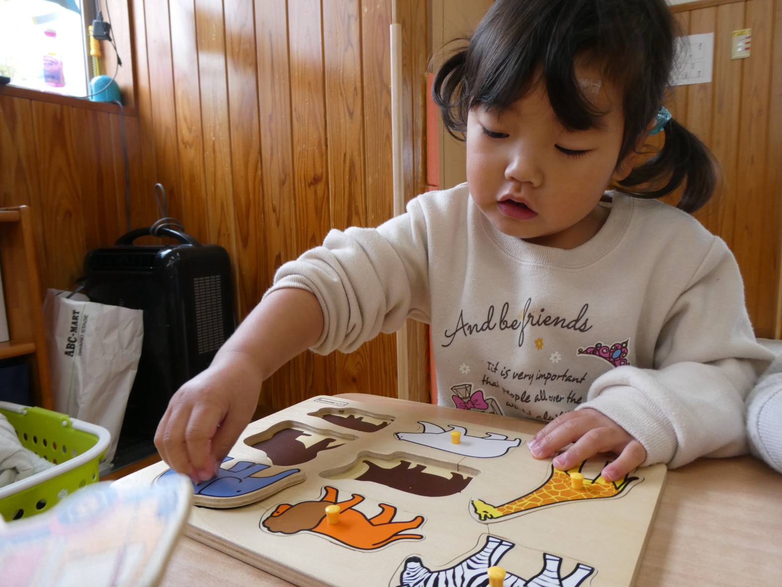 今週は、暖かく過ごしやすい日が続いています。 室内遊びでは、机上遊びも取り入れており、パズルで遊ぶ子どもたち。 「いちごはどこかな?」、「きりんと同じ形はここだ!」と、集中して取り組みます。 また積み木遊びでは、ドミノや階段を作ることにハマっているぱんだ組さん! 「倒さないようにね!」、「はい、積み木持ってきたよ。」と、互いに声を掛け合う様子も見られています。 様々な活動を行いながら、友だちと遊ぶ楽しさを味わえるようにしていきたいと思います♪