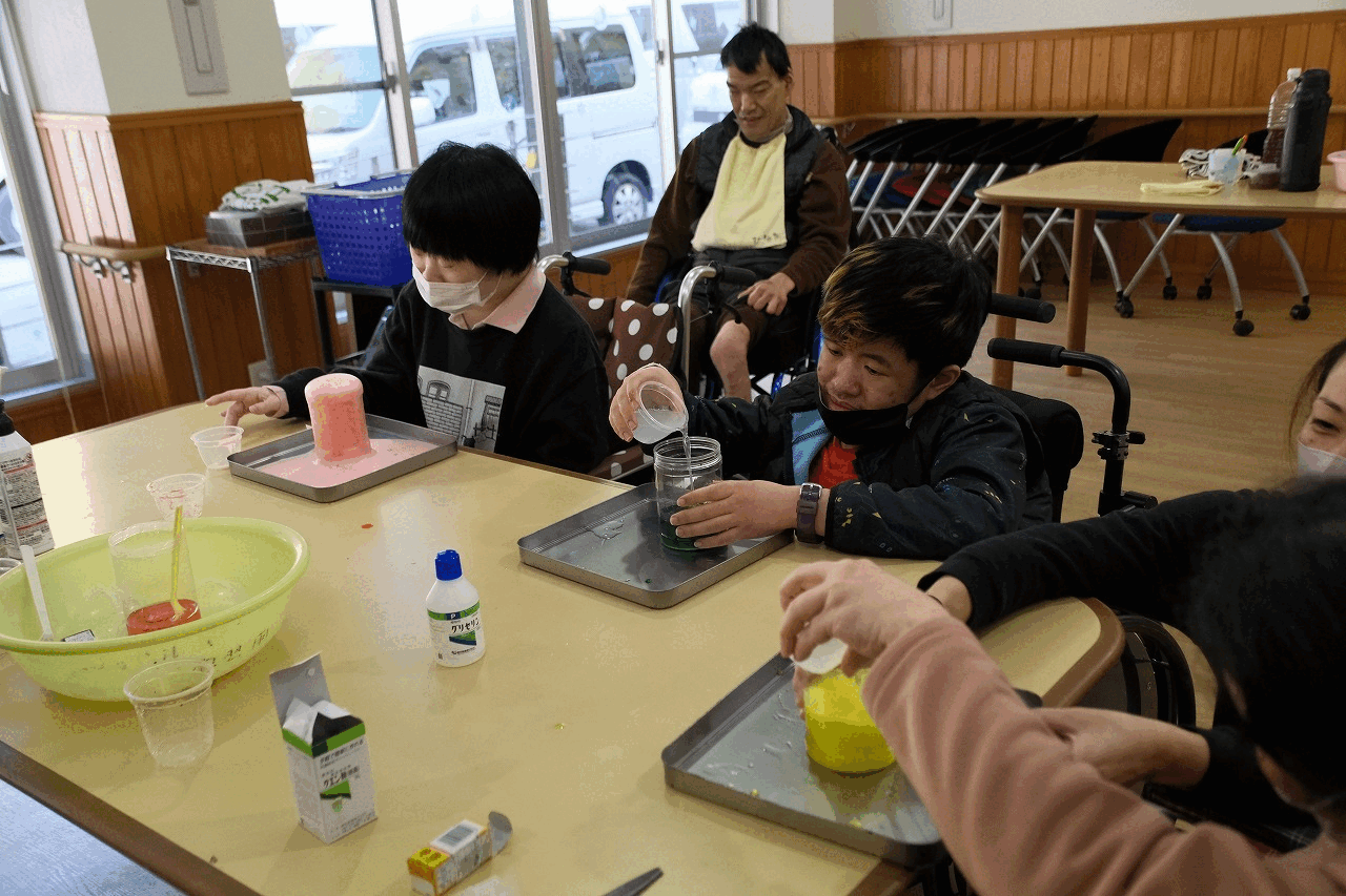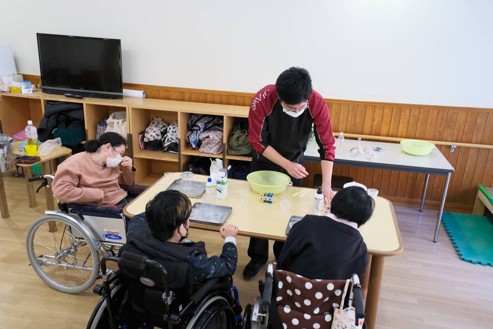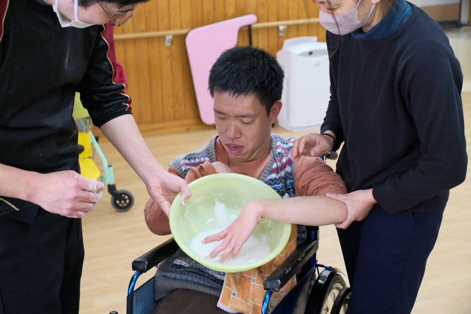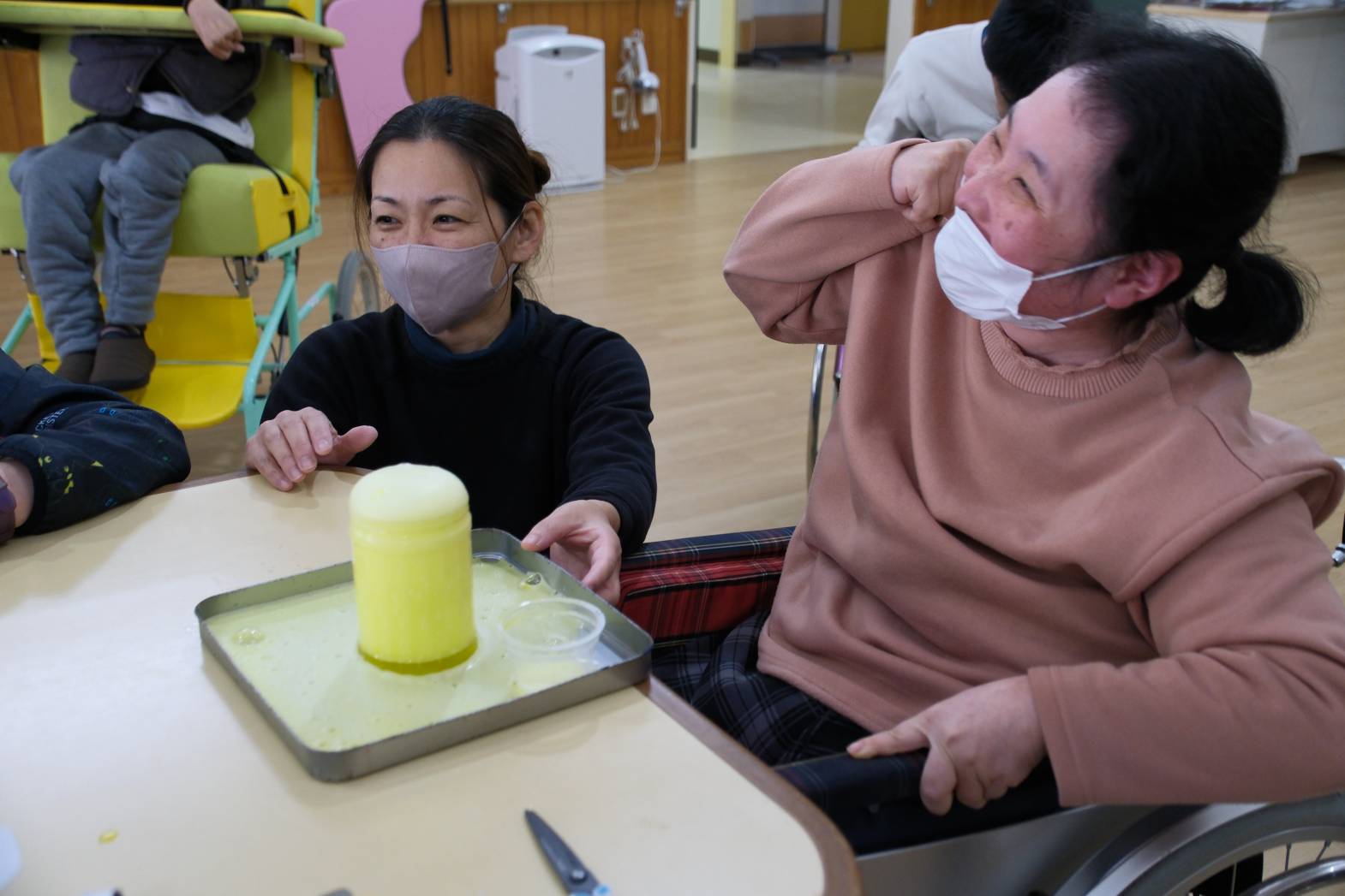 急に泡が噴出してくるとびっくりしますが、視覚的にもとっても楽しい活動ができました。