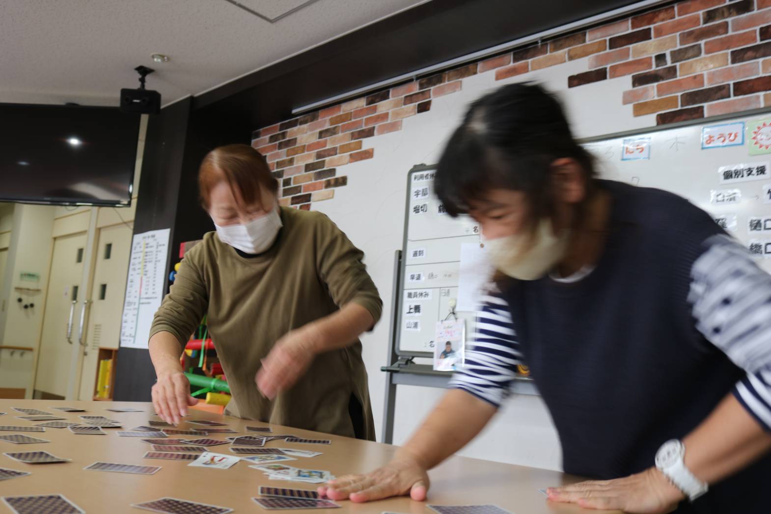 リハレクを行いました。 椅子に座って全身のストレッチと、 トランプを使ったレクリエーションを行いました。 指先を使ってトランプをめくるレクリエーションに、 皆さん笑顔で集中して取り組まれていました。 また次回も楽しく体を動かしましょう。