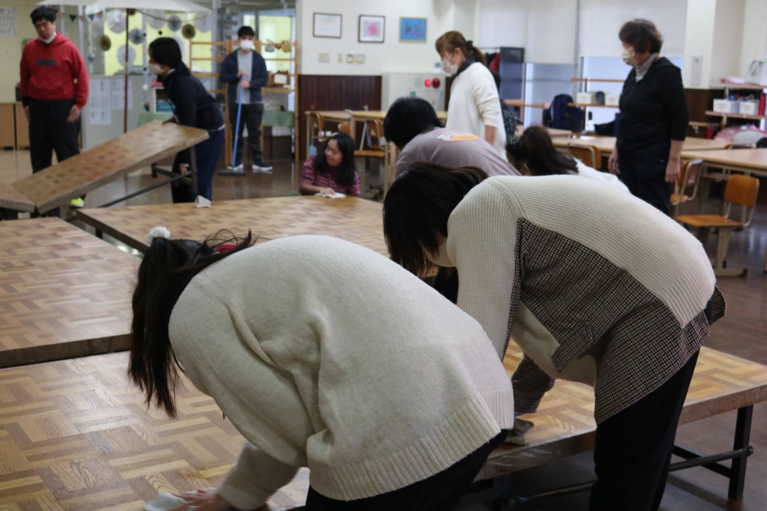 2月22日(土)に開催予定の大発表SATURDAYに向け、 ステージの設営を行いました。 設営されたステージを拭き掃除してくださいました。 毎日少しずつ発表する演目を制作、練習されています。 1か月後の本番が楽しみです。