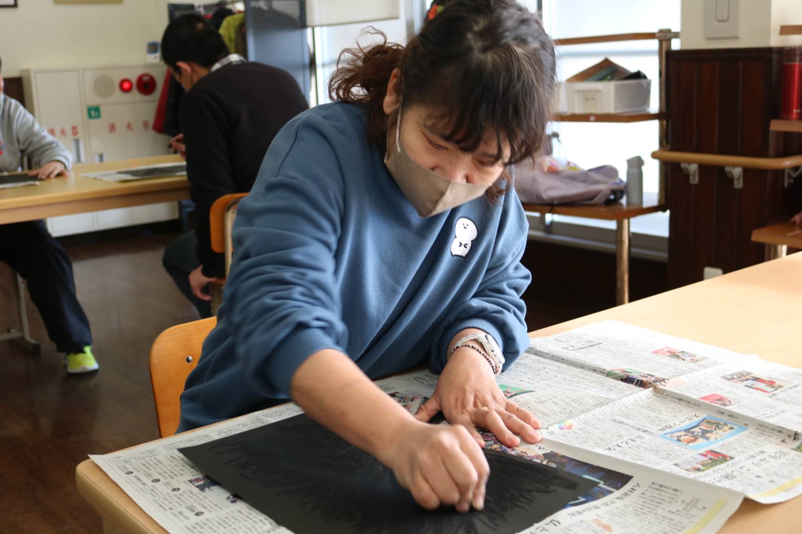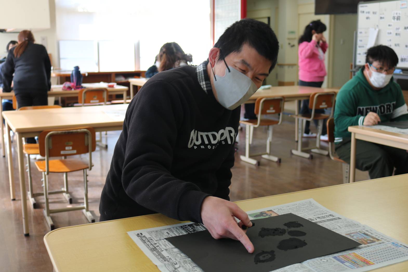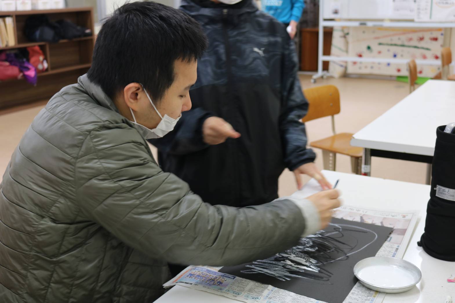 チャレンジデイにて、Let’sアートを行いました。 Let’sアートでは、皆さんに様々な素材や表現方法に 挑戦してもらいながらアート活動を行っています。 今回は、黒い画用紙に白黒2色のクレヨンと絵の具だけを使って 自由に制作してもらいました。 皆さん笑顔で時間いっぱい取り組んでいました。
