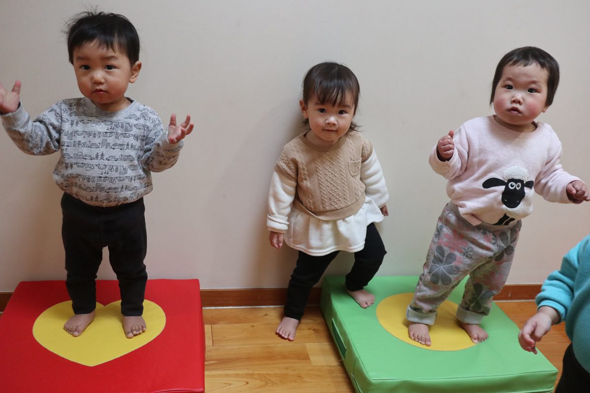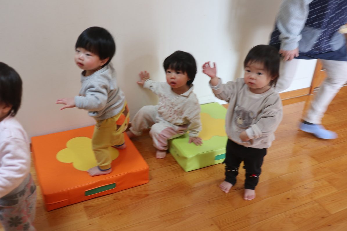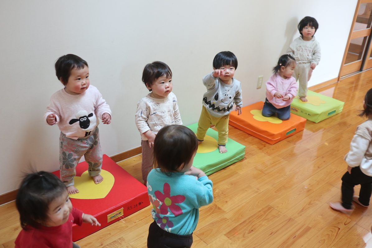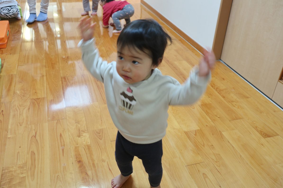 踊ることが大好きな子どもたち! 音楽に合わせて、オリジナルダンスを踊ったり、保育者のダンスを真似したりとニコニコで踊ることができるようになっています。 ひよこ組さんの人気の曲が流れると、「あっ!」と嬉しそうに声を出し、マットの上に乗ってノリノリなひよこ組さん。 掛け声を出したり、友だち同士で笑い合ったりと子どもたちもダンスが大好きな活動の一つになっているようです!