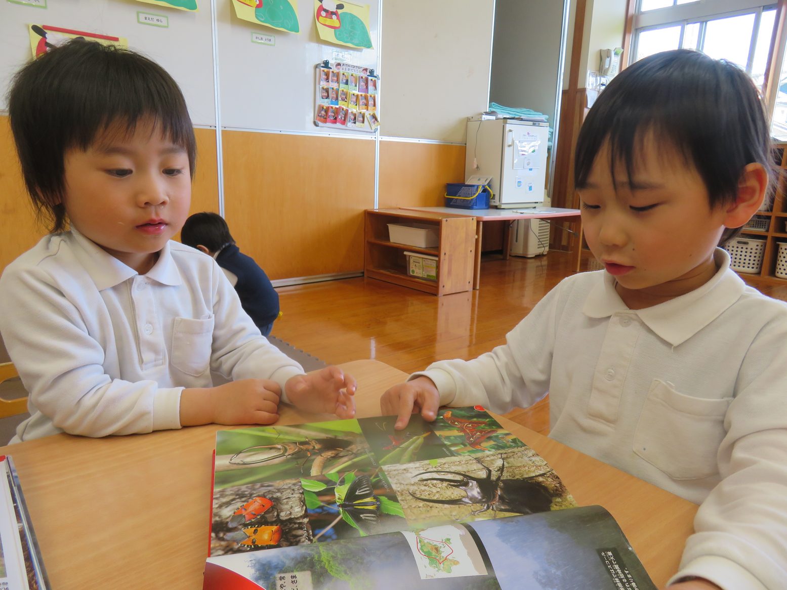 図鑑や絵本を通して、虫や動物、平仮名に興味津々なりす組さんです。