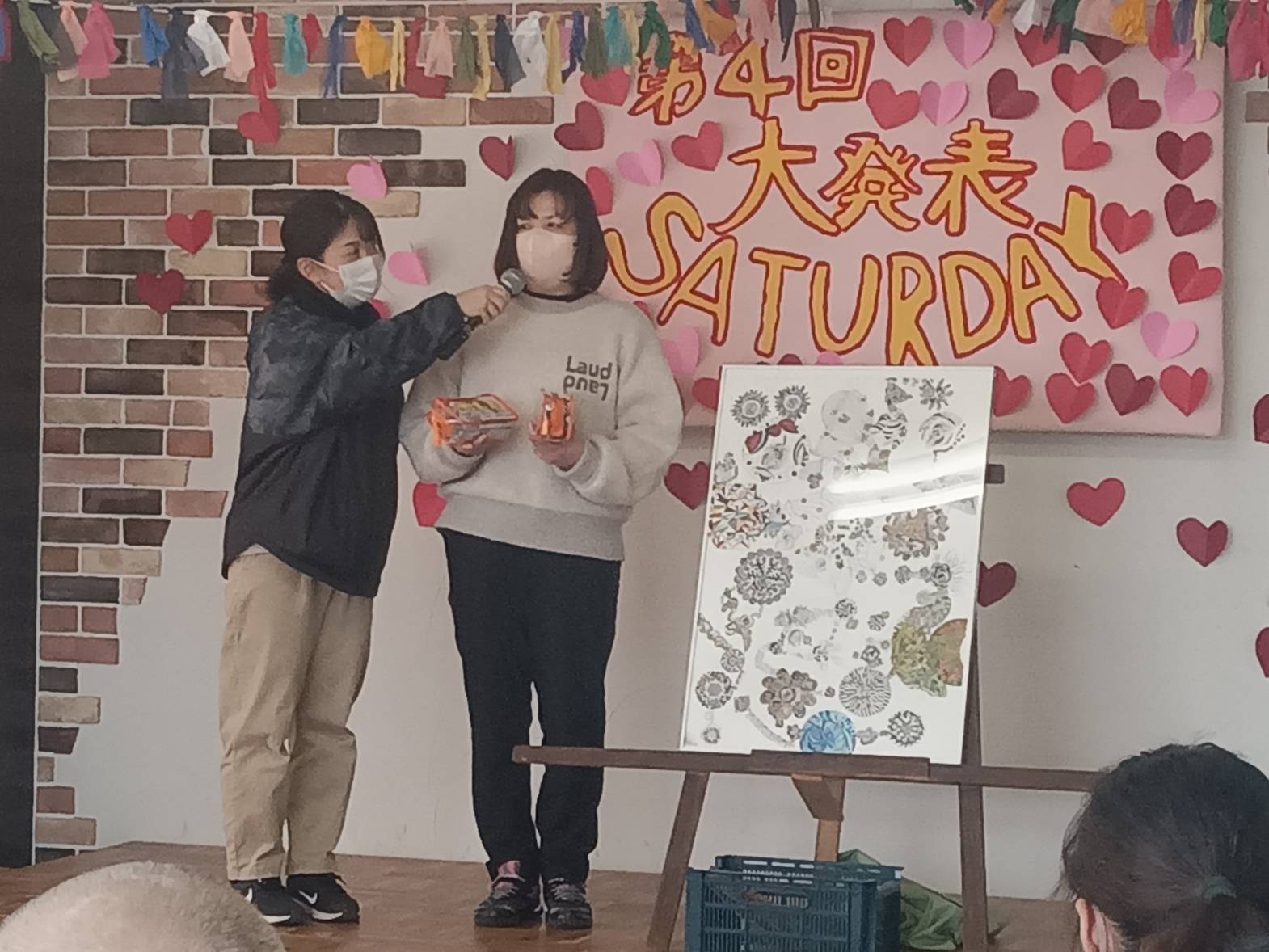 本日、利用者の皆さんのご家族をきららにお招きし、 『第4回大発表SATURDAY』を開催しました。 利用者の皆さんが日頃から取り組まれている活動や、 この日の為に練習してきた内容を ご家族の前で発表されています。 最後には、ご家族の皆さんと一緒に記念写真を撮影し閉会しました。 発表を観覧され、ご家族の皆さんが笑顔で喜んでくださったり 涙を流されるご様子に我々支援員も心温まる発表会でした。
