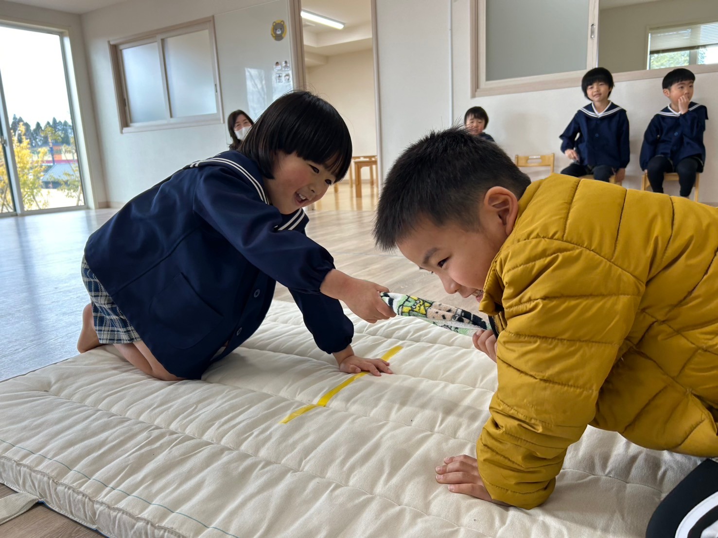 最後にはお友だちとチームになって職員とも勝負を行いました。