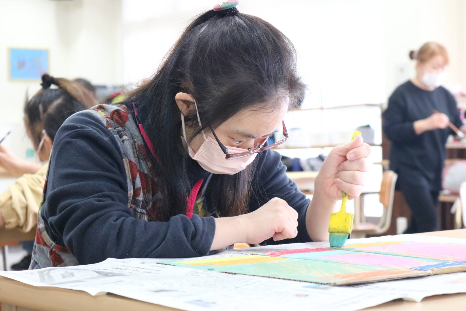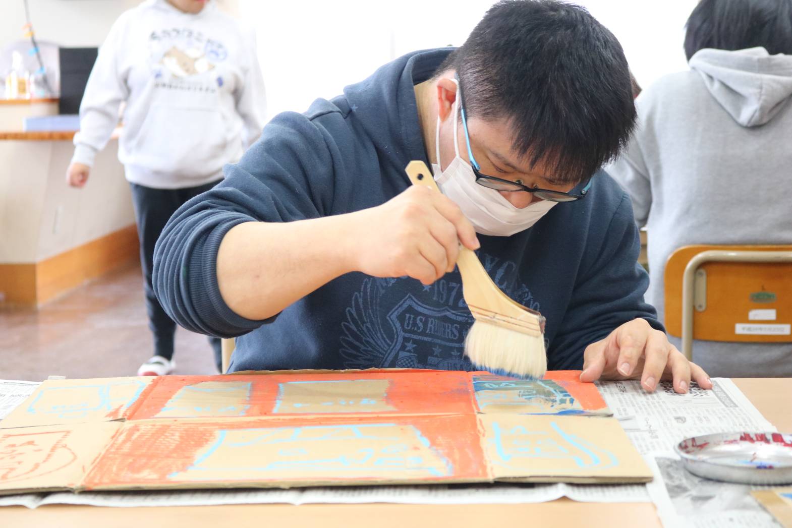 本日のLet’sアートでは、前回の活動にてダンボールにクレヨンで絵を描いていた作品に 絵の具を使って色を加えてみました。 色や筆の大きさなど好きなものを選んで取り組まれていました。 集中して制作してくれる方も多く、充実した時間となりました。