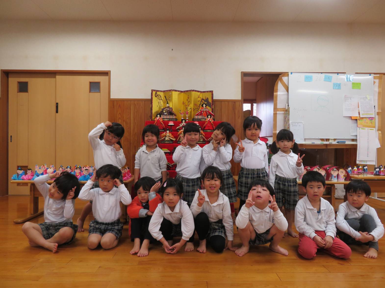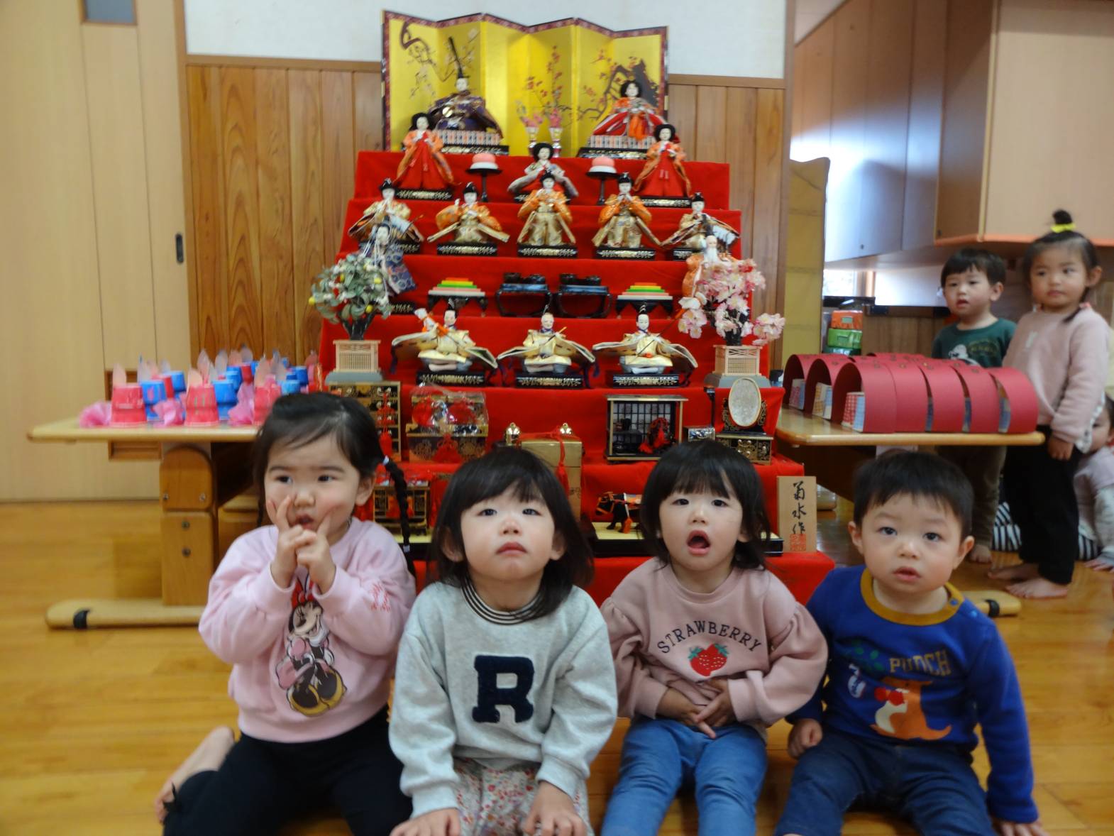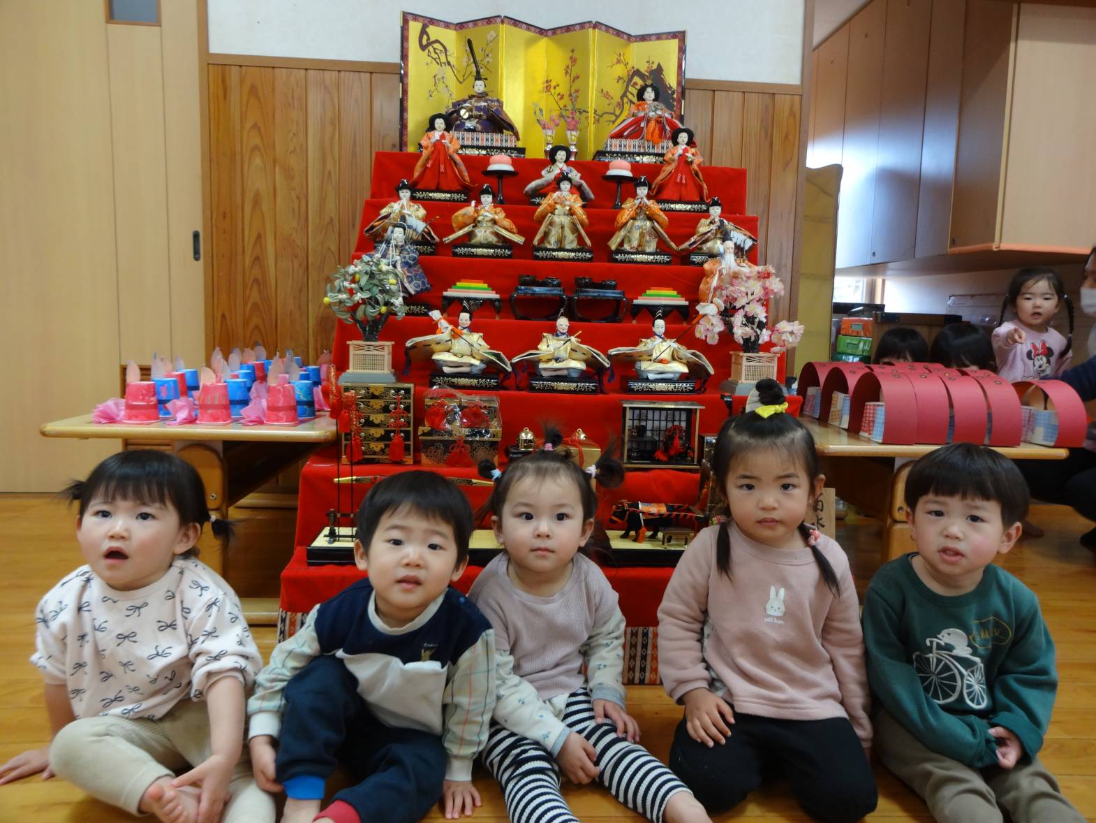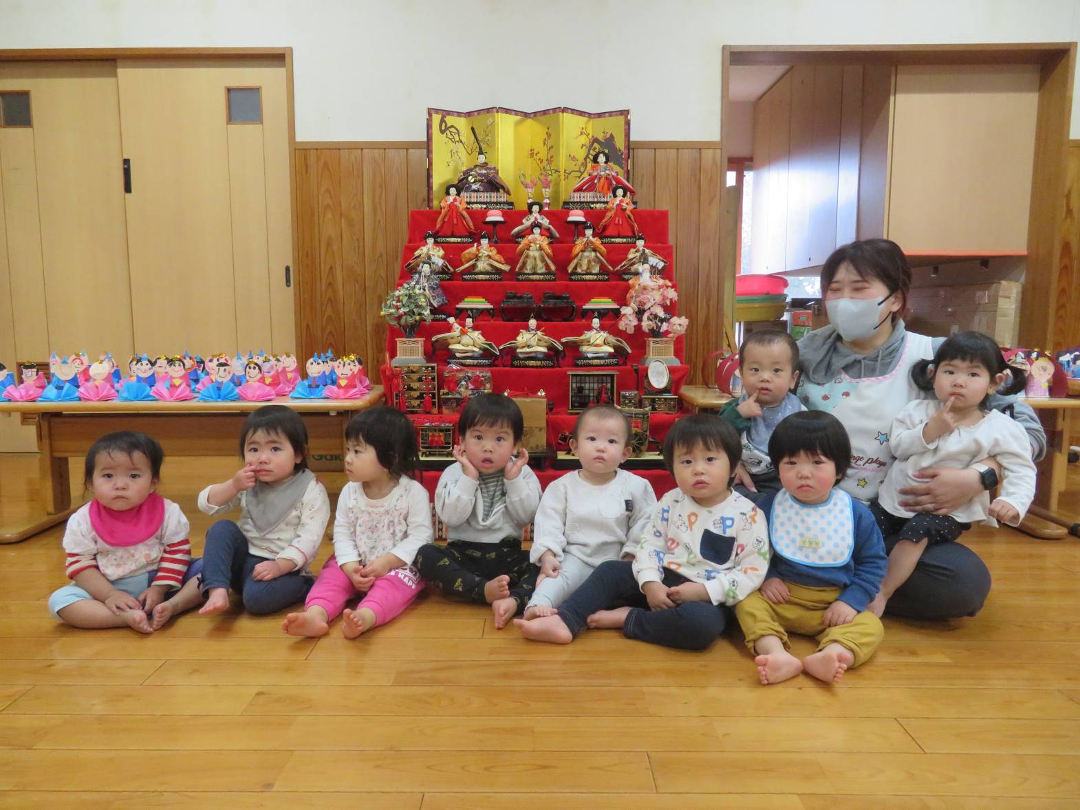 ひよこ、こあら組さんもひな壇の前でハイチーズ!