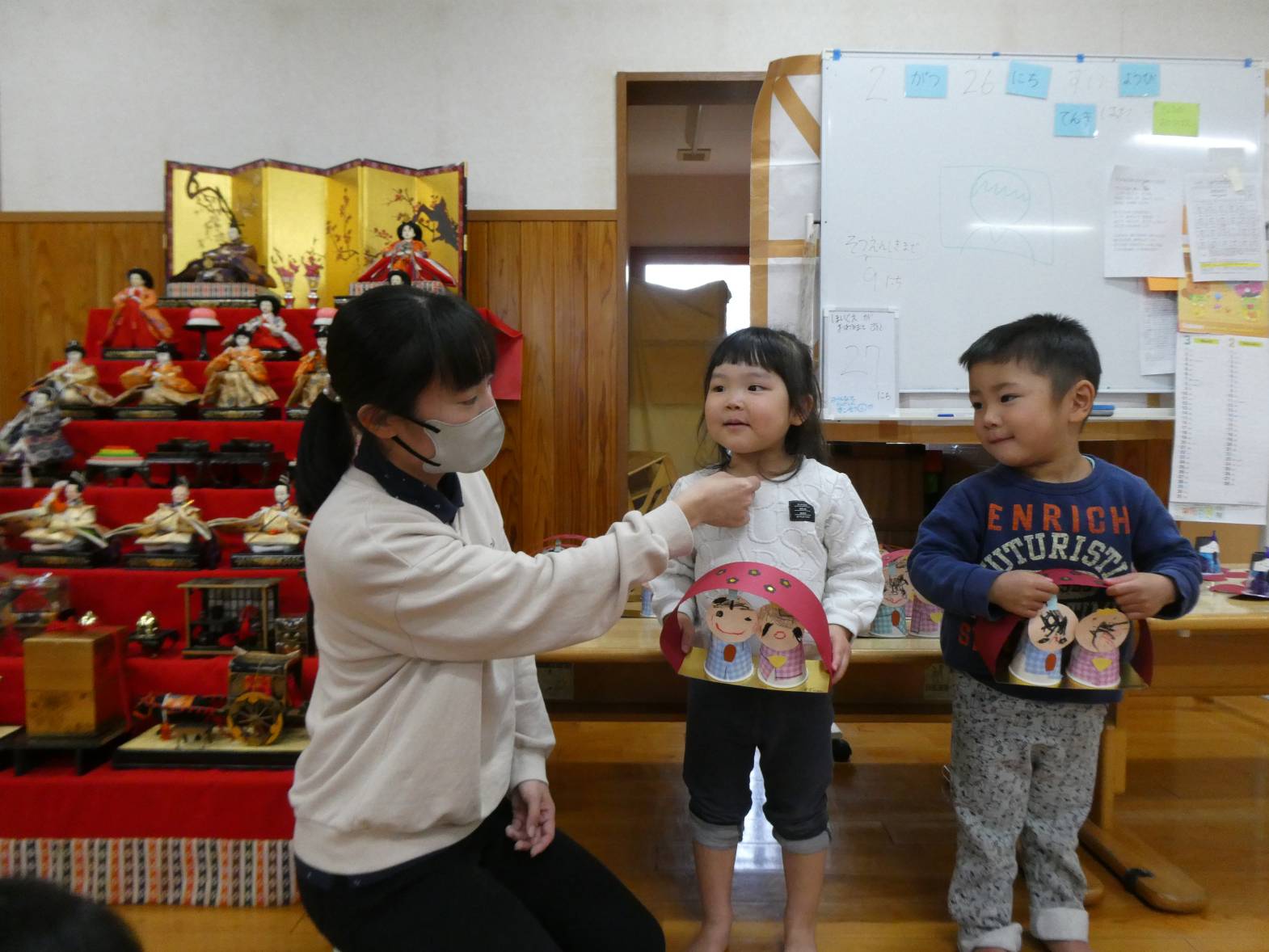 「ひなまつりは、女の子をお祝いする日なんだね~。」とひなまつりがどんな日か真剣に学ぶ様子が見られました。