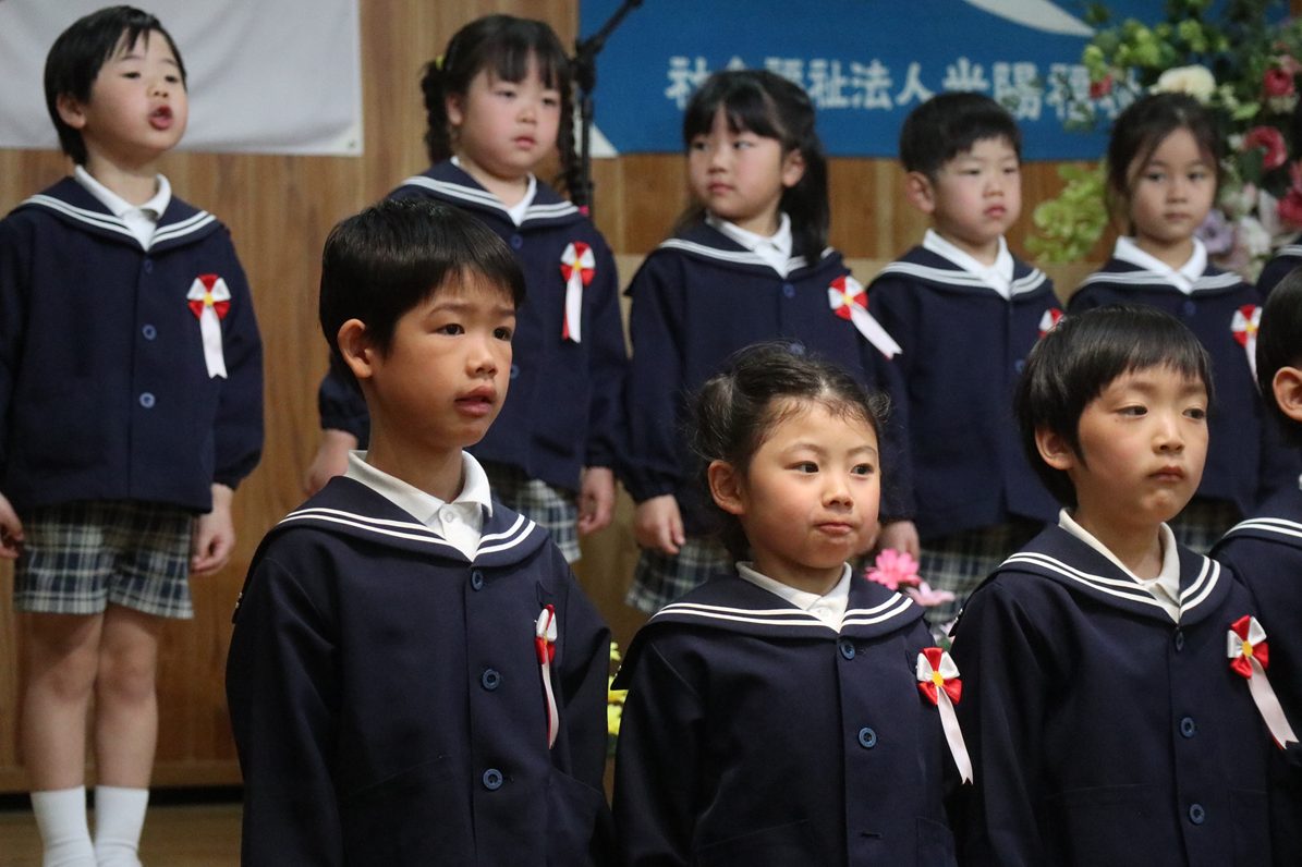 卒園証書授与では、名前を呼ばれると大きな声で返事をする子どもたち。