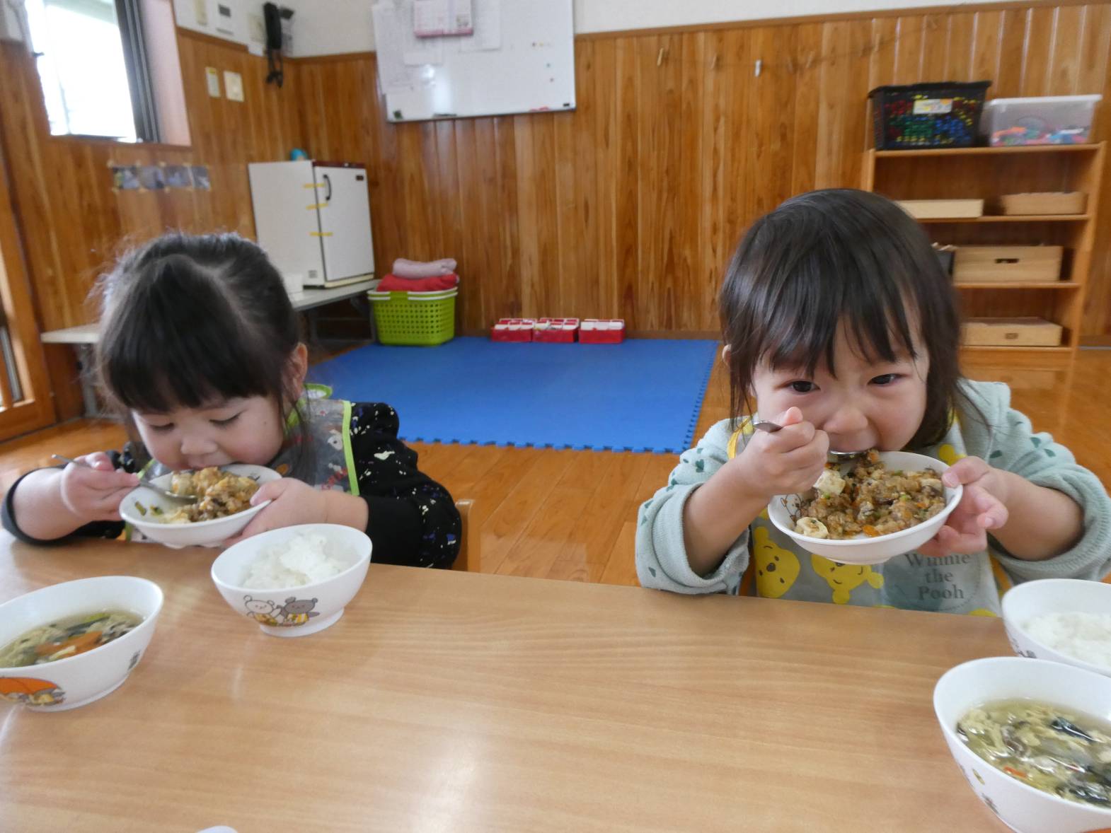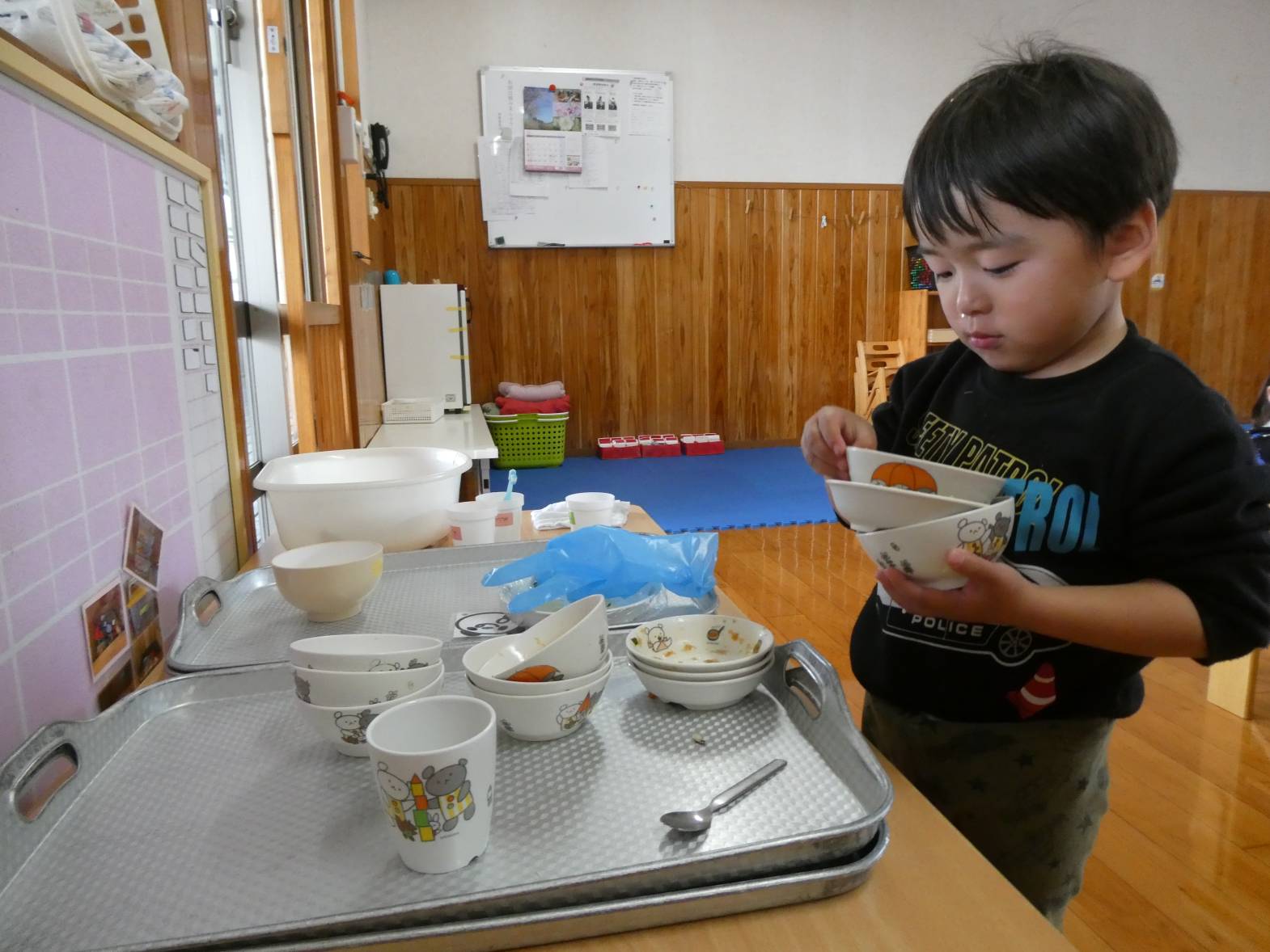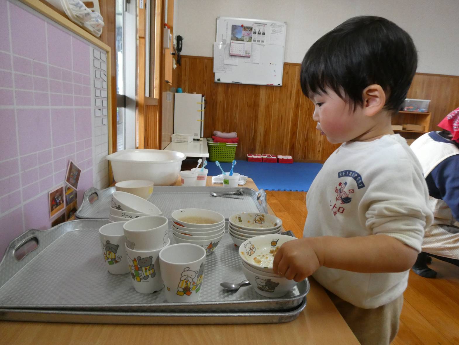 今週の月曜日から、りす組の部屋で一日を過ごしています! 昨日は、運動遊びがありました。運動遊びの先生と楽しく準備体操をしたりバイキンマンゲームをしたりした子どもたち。 「もう一回したーい!」と声が聞こえるくらい楽しむ様子が見られました。 給食では、姿勢を正しくしながらご飯を食べる子どもたち。 食べ終わったあとは、食器をお盆にのせたり歯ブラシを取ったりと様々なことを練習しています。 「かっこいいりす組さんになるんだ!」と意気込むぱんだ組さんでした!
