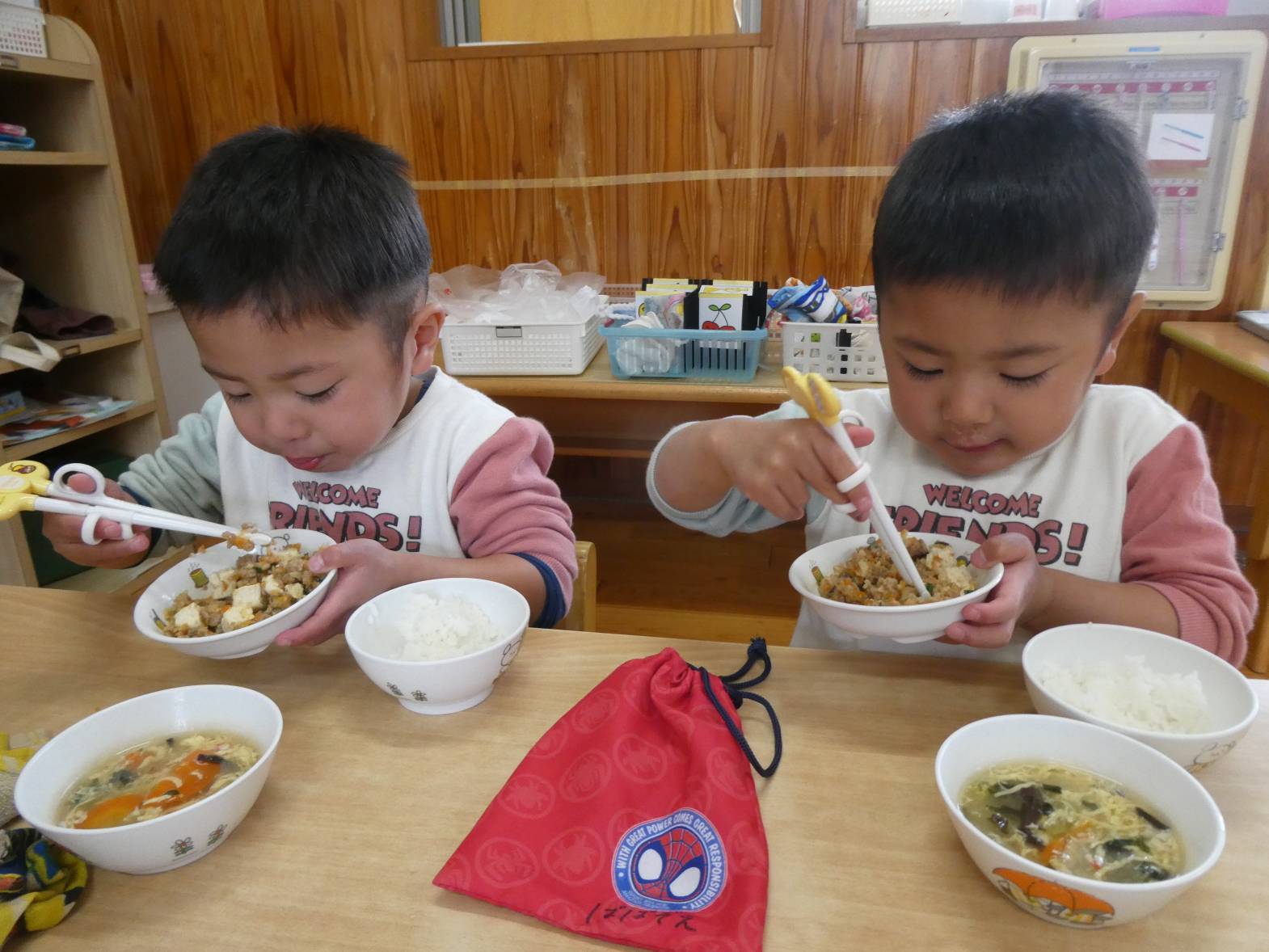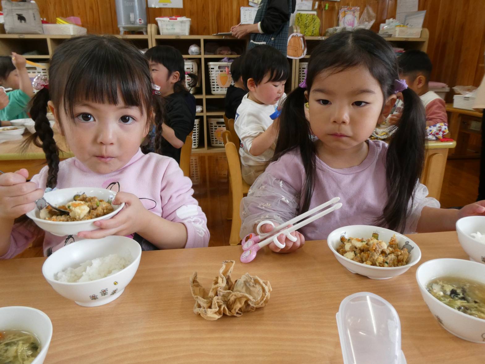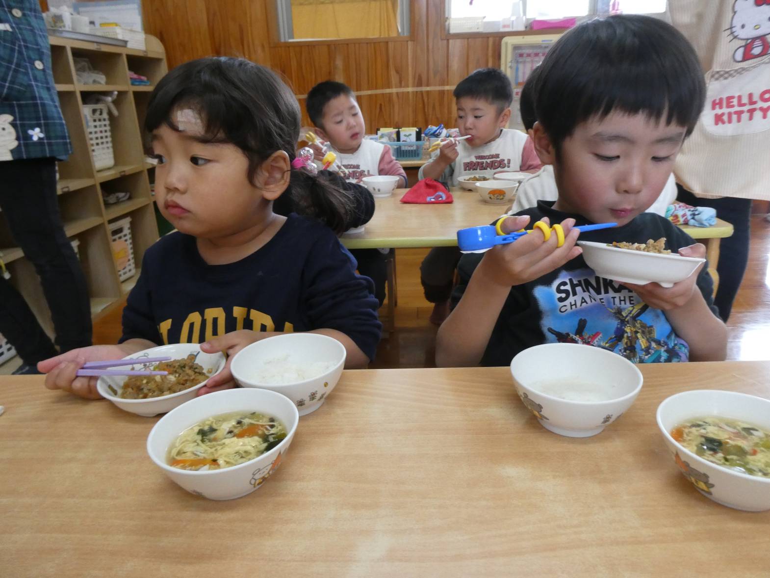 今週の月曜日から、りす組の部屋で一日を過ごしています! 昨日は、運動遊びがありました。運動遊びの先生と楽しく準備体操をしたりバイキンマンゲームをしたりした子どもたち。 「もう一回したーい!」と声が聞こえるくらい楽しむ様子が見られました。 給食では、姿勢を正しくしながらご飯を食べる子どもたち。 食べ終わったあとは、食器をお盆にのせたり歯ブラシを取ったりと様々なことを練習しています。 「かっこいいりす組さんになるんだ!」と意気込むぱんだ組さんでした!