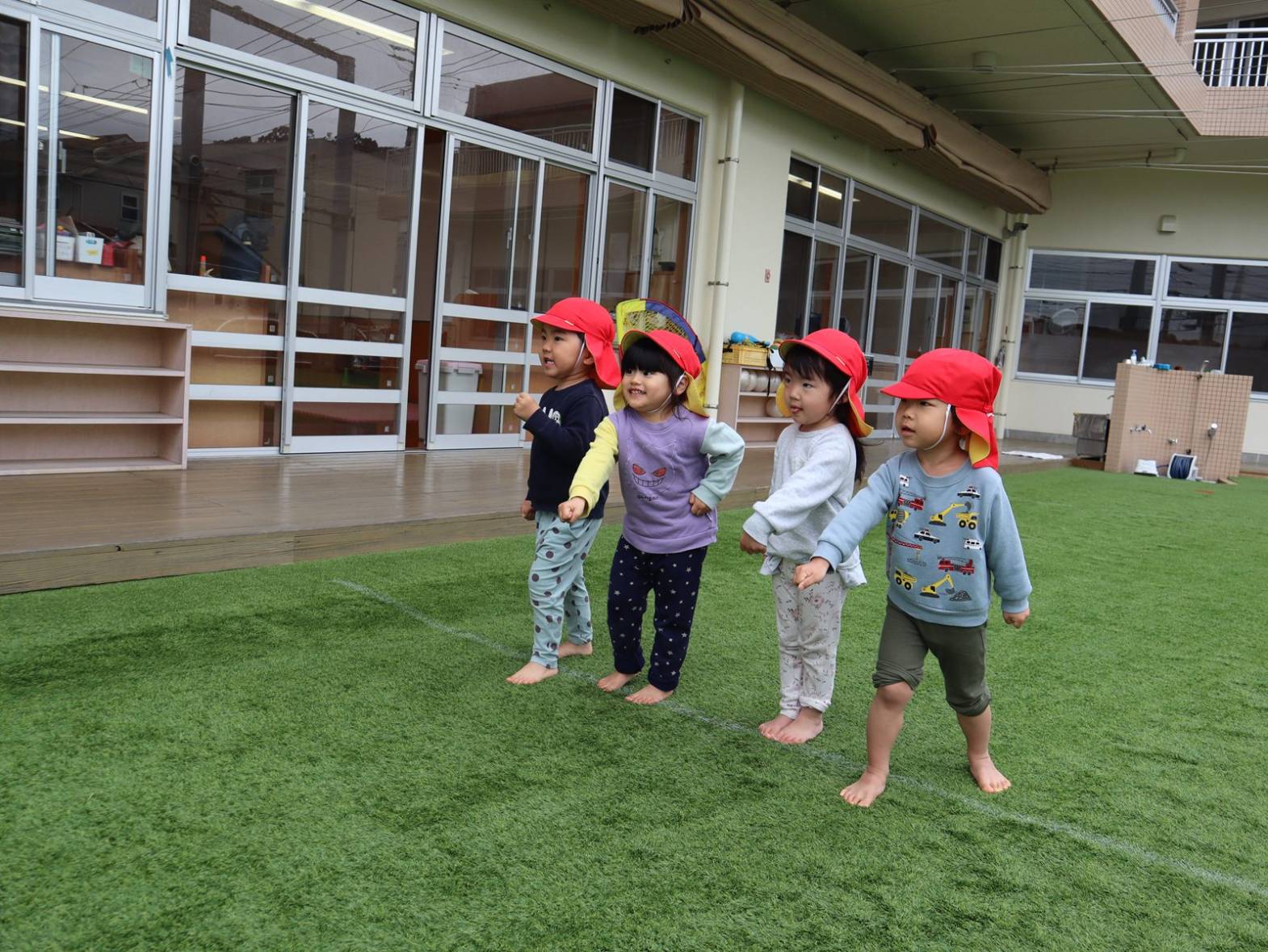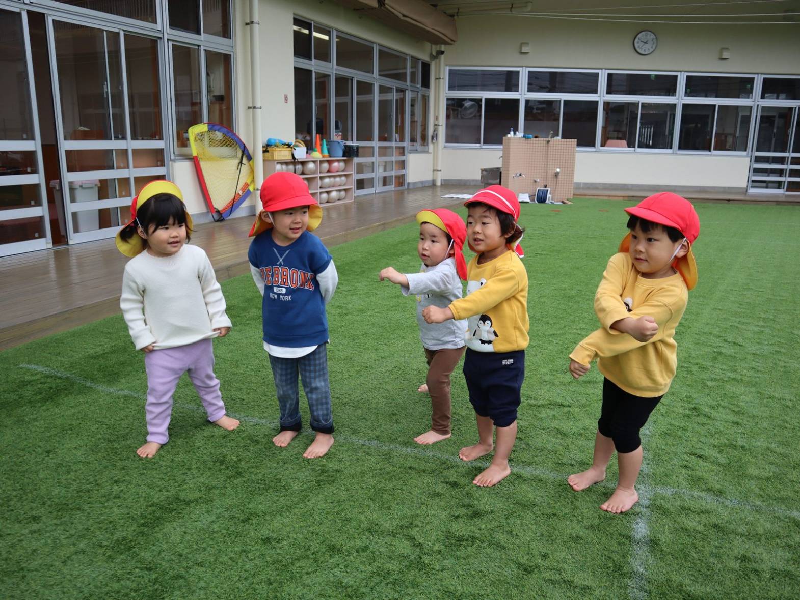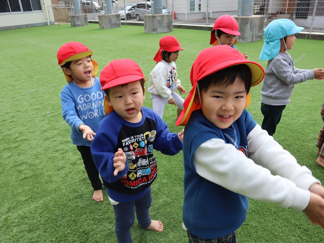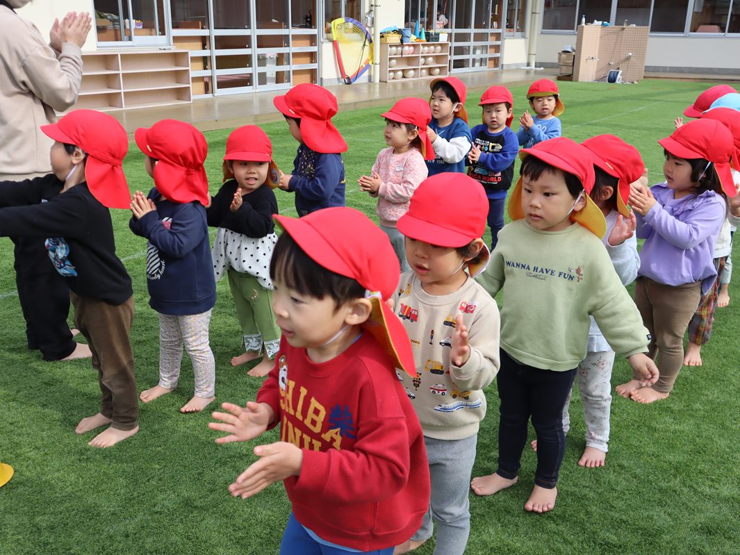 進級に向けて園庭での朝の集まりに取り組んでいるぱんだ組さん。 整列では「とんとんまえ!」と徐々に上手に並ぶことができる姿が見られます。 かけっこでは、『よーいトン!』の掛け声に合わせてスタート。 「頑張ーれ!」と応援にも力が入ります。 楽しい思い出を作りながら、進級に向けた取り組みにもみんなで挑戦していきたいと思います。
