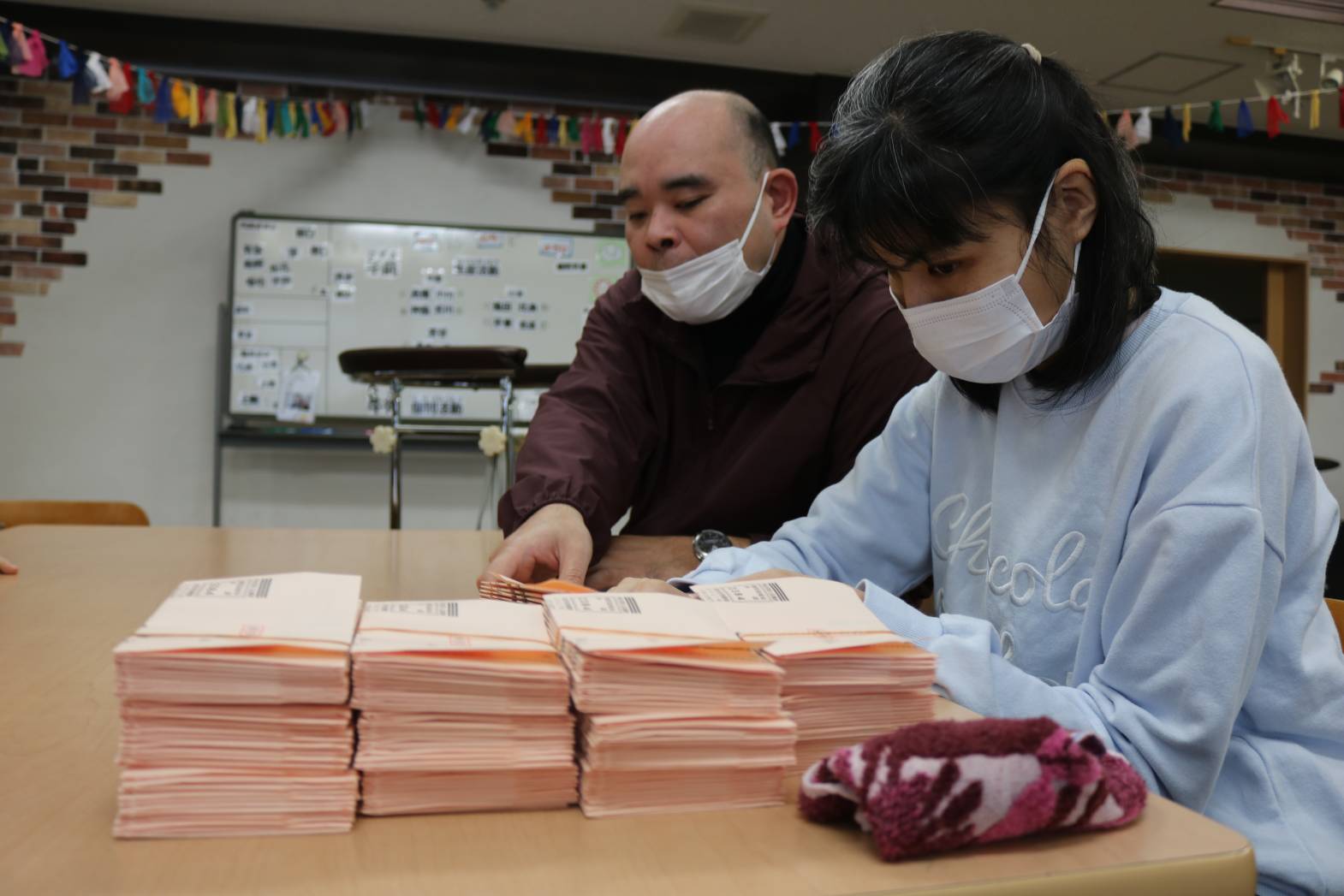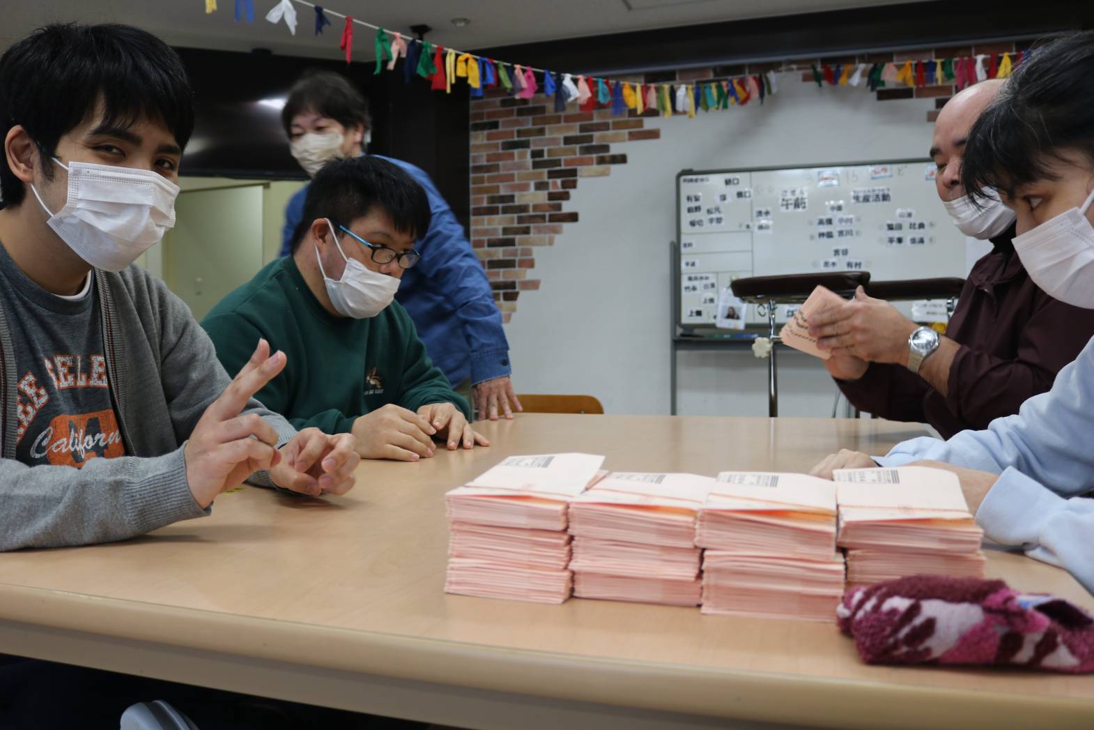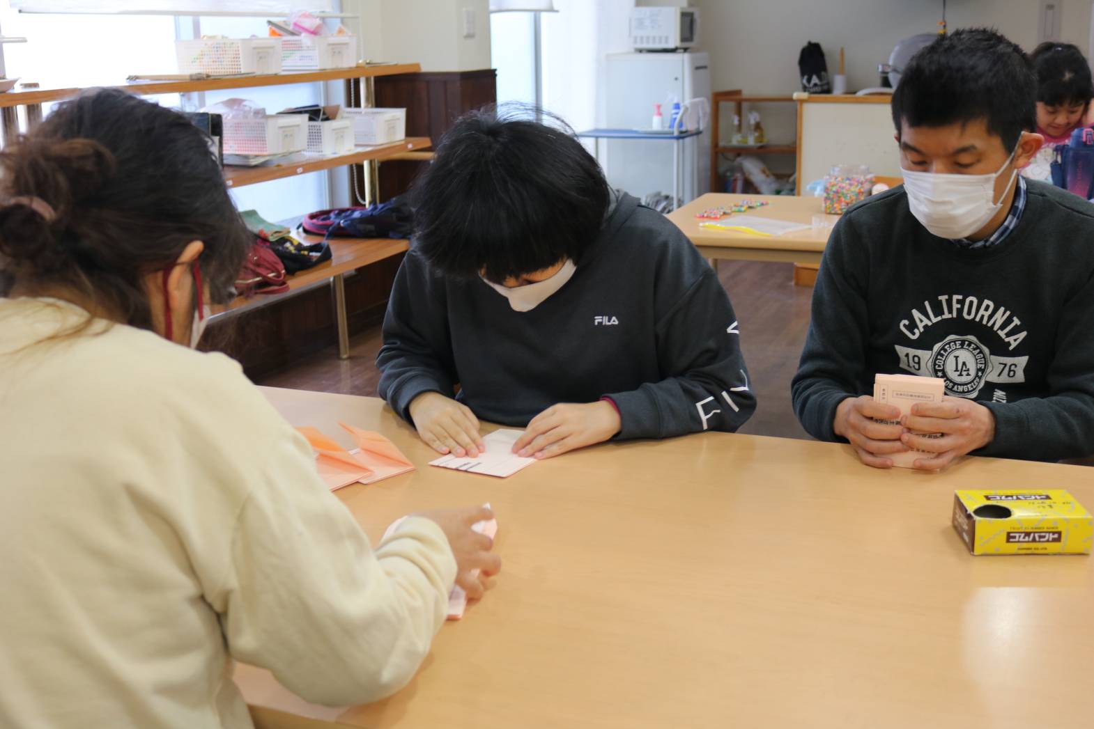 皆さん一緒に封筒折り作業を行いました。