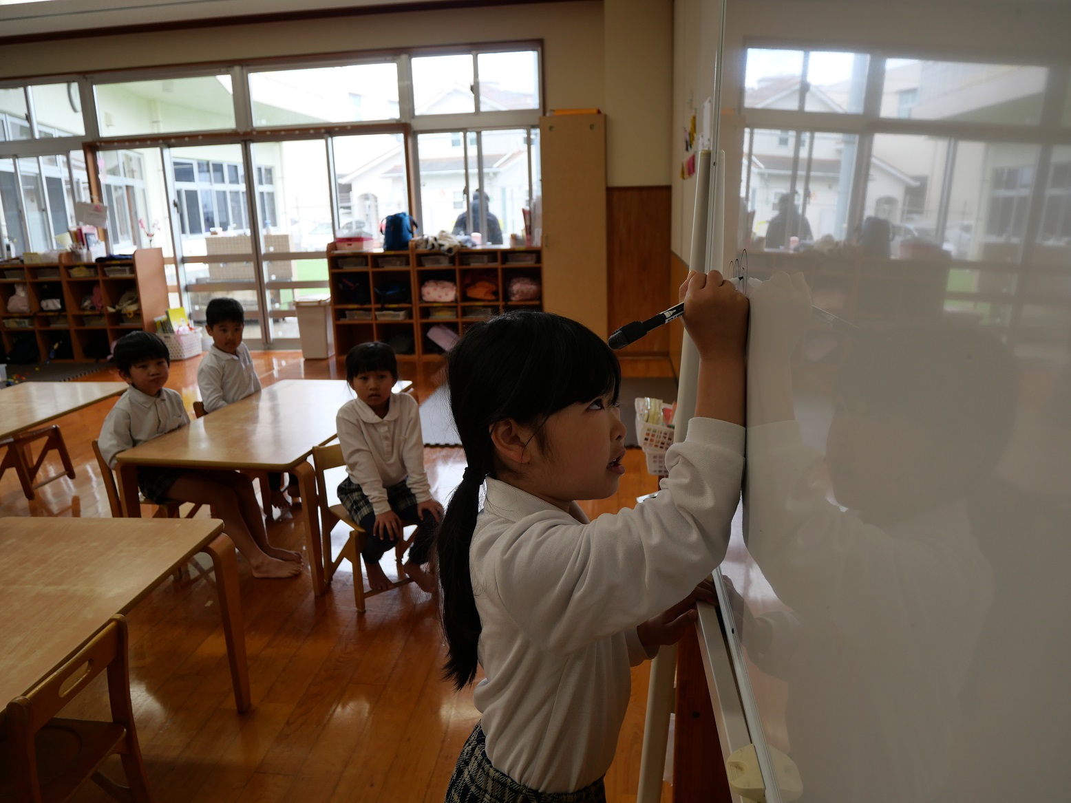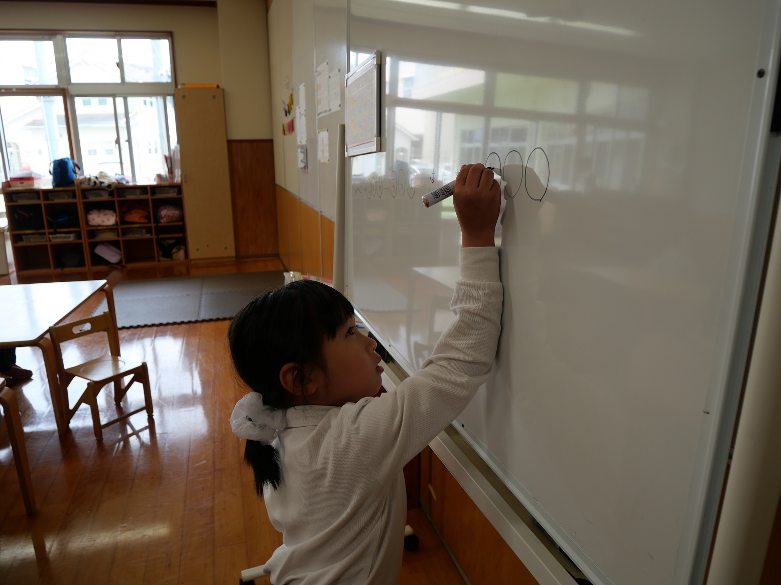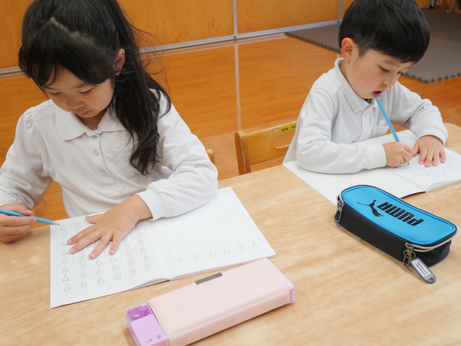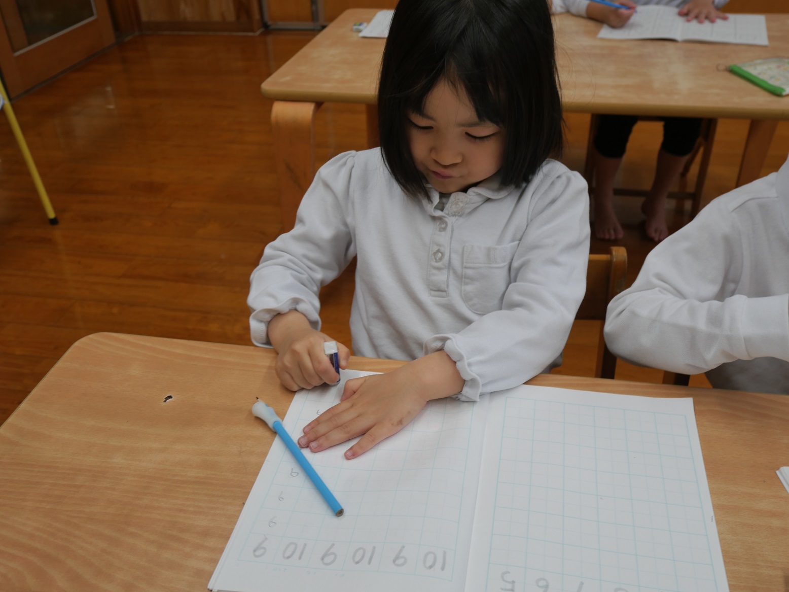 「数字、こんなに綺麗に書けるようになった!」「平仮名全部書けるんだよ。」と、上達したことへの喜びを感じる姿が見られました。