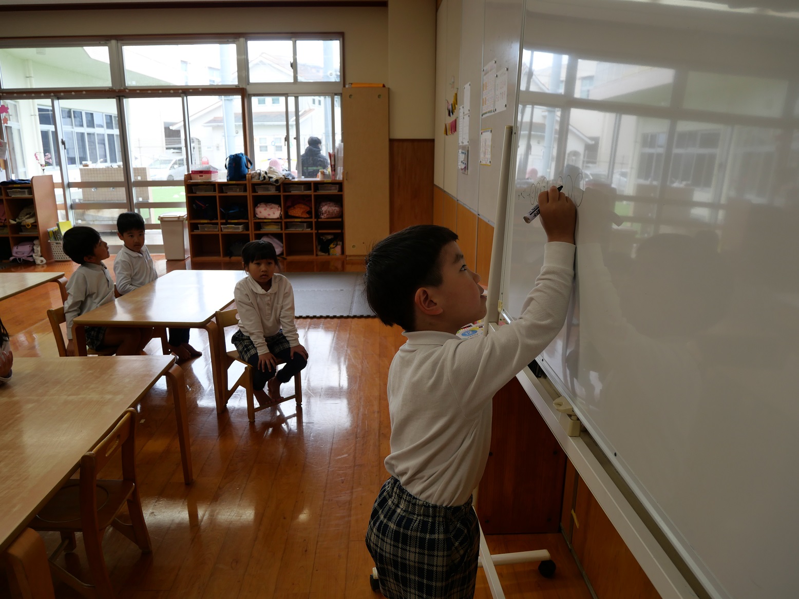 この日はホワイトボードに自分で平仮名を書いて、しりとり遊びもしました!