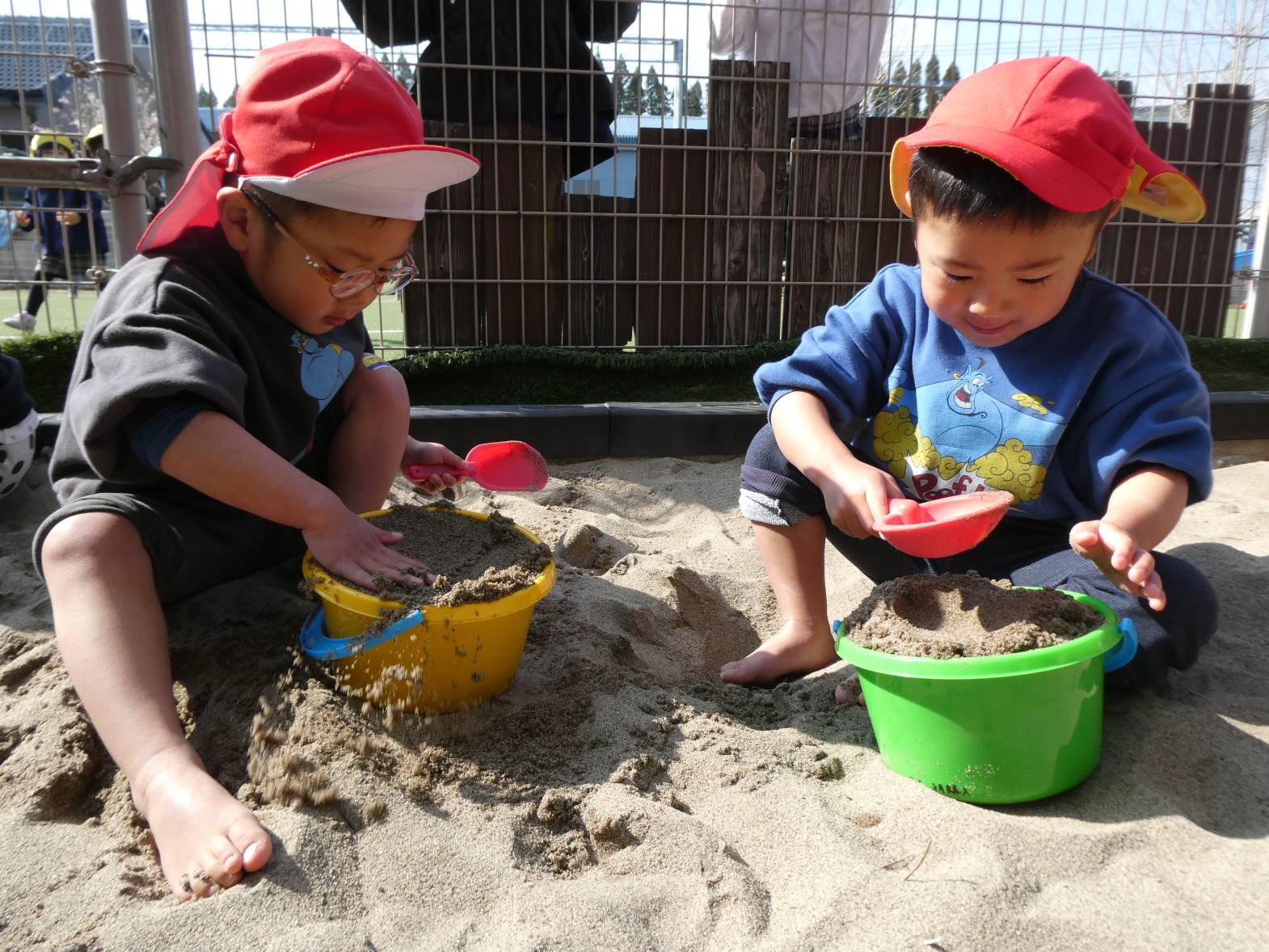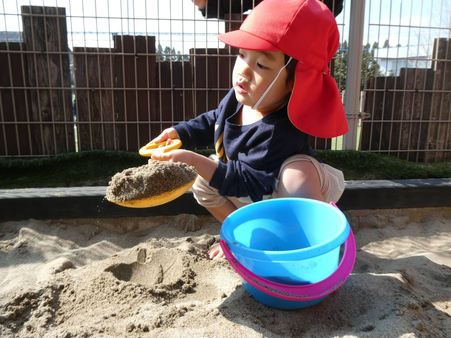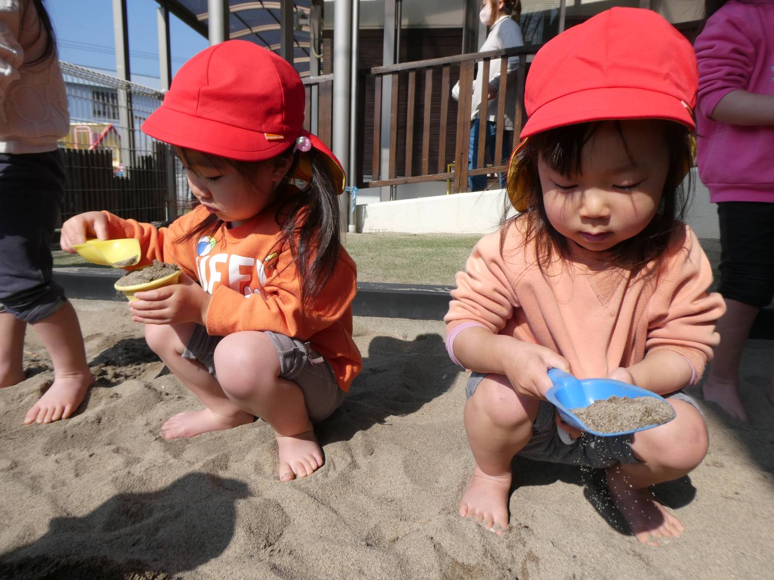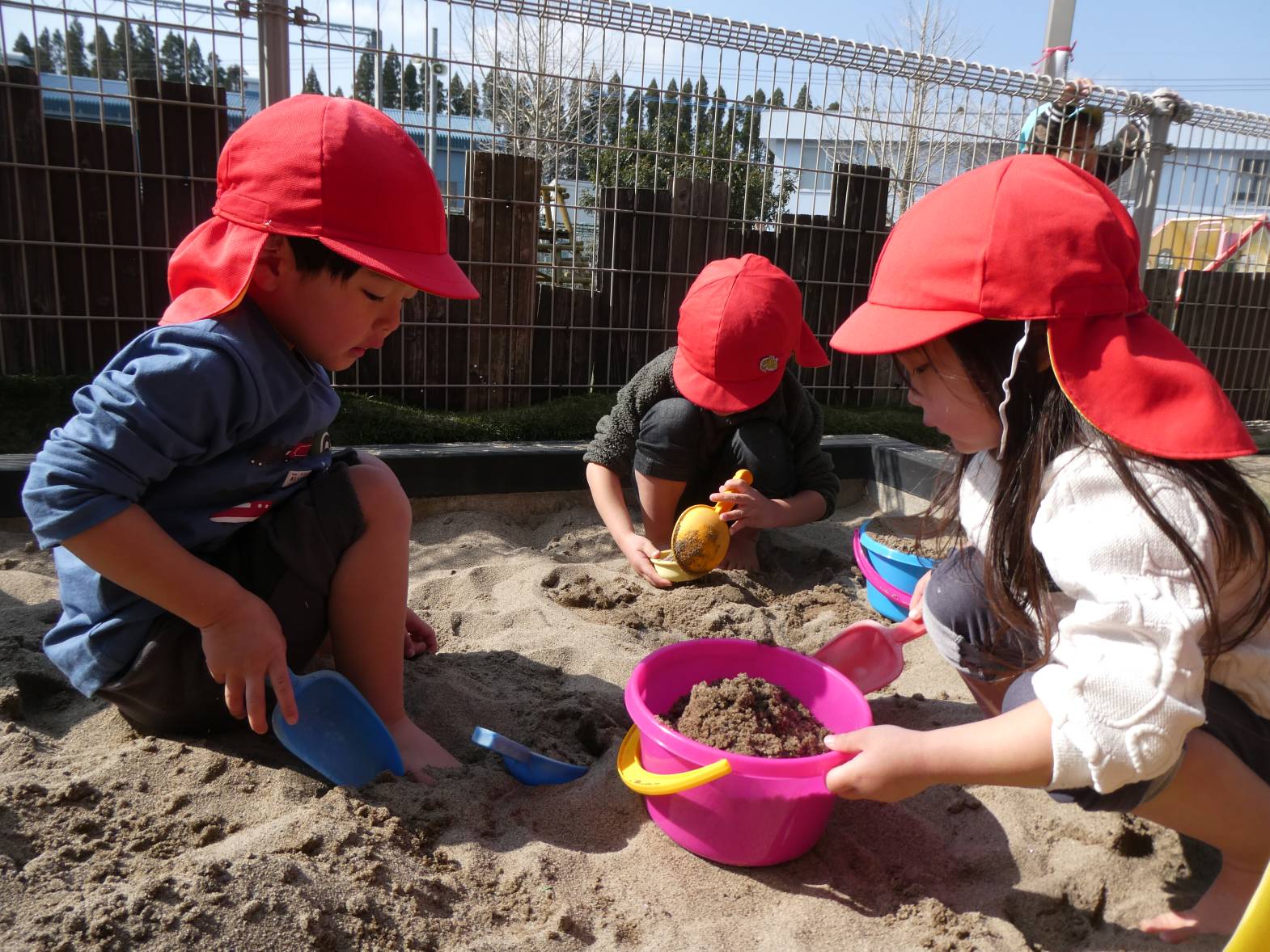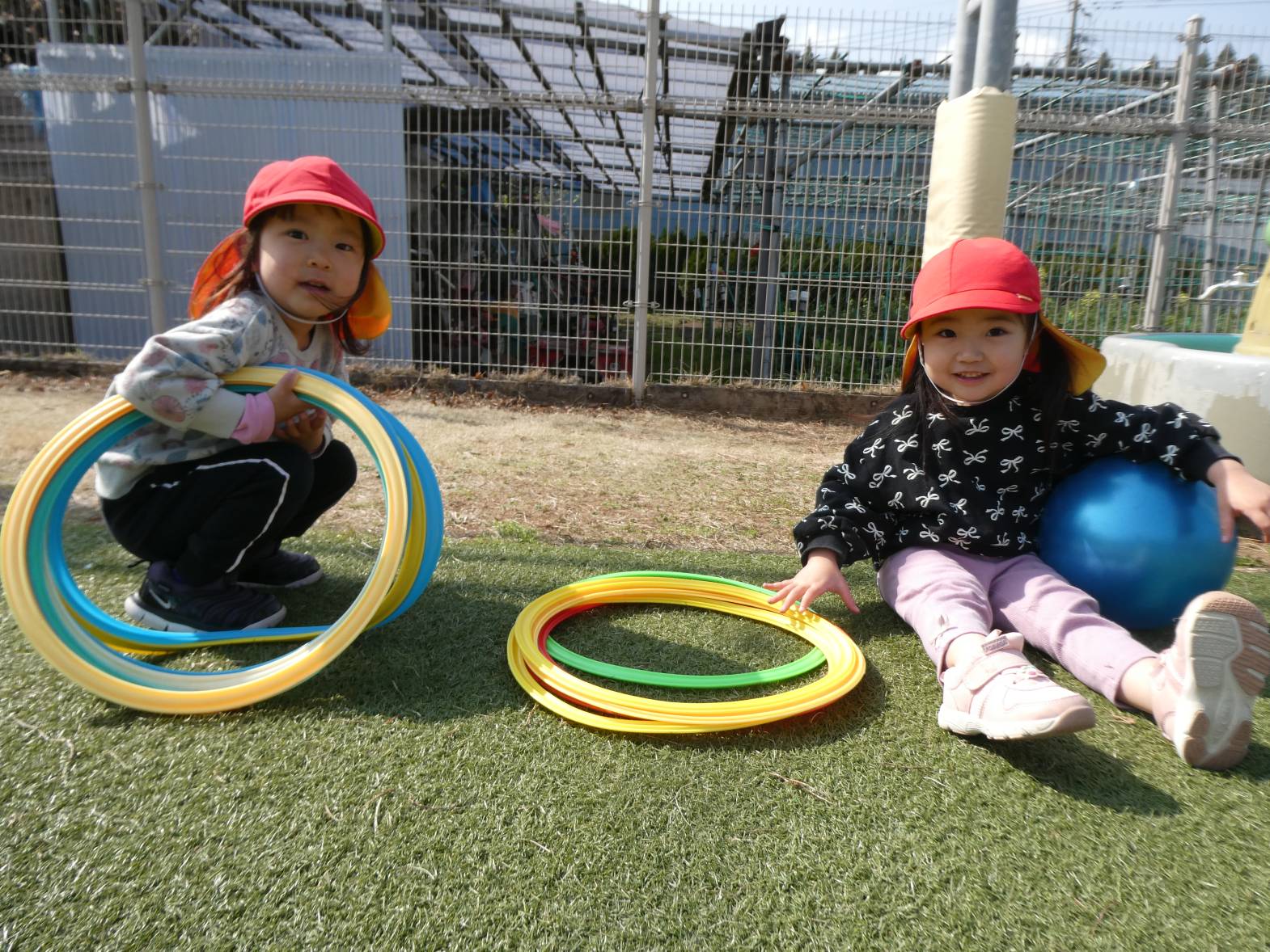 昨日、今日と天気が良く暖かく過ごしやすい気候でした。 ボールや輪っかを使って、遊びを自分たちで考える子どもたち。 砂場では、バケツも仲間入りして友だちと順番を守りながら楽しそうな雰囲気が見られます。 残り少ない日ですが、ぱんだ組さん全員で楽しい思い出を作りたいと思います!