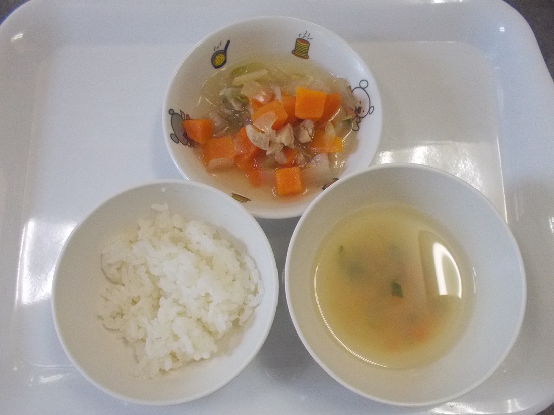 4月21日(月)から4月26日(土)までの給食献立写真・離乳食提供量と写真の一例です。