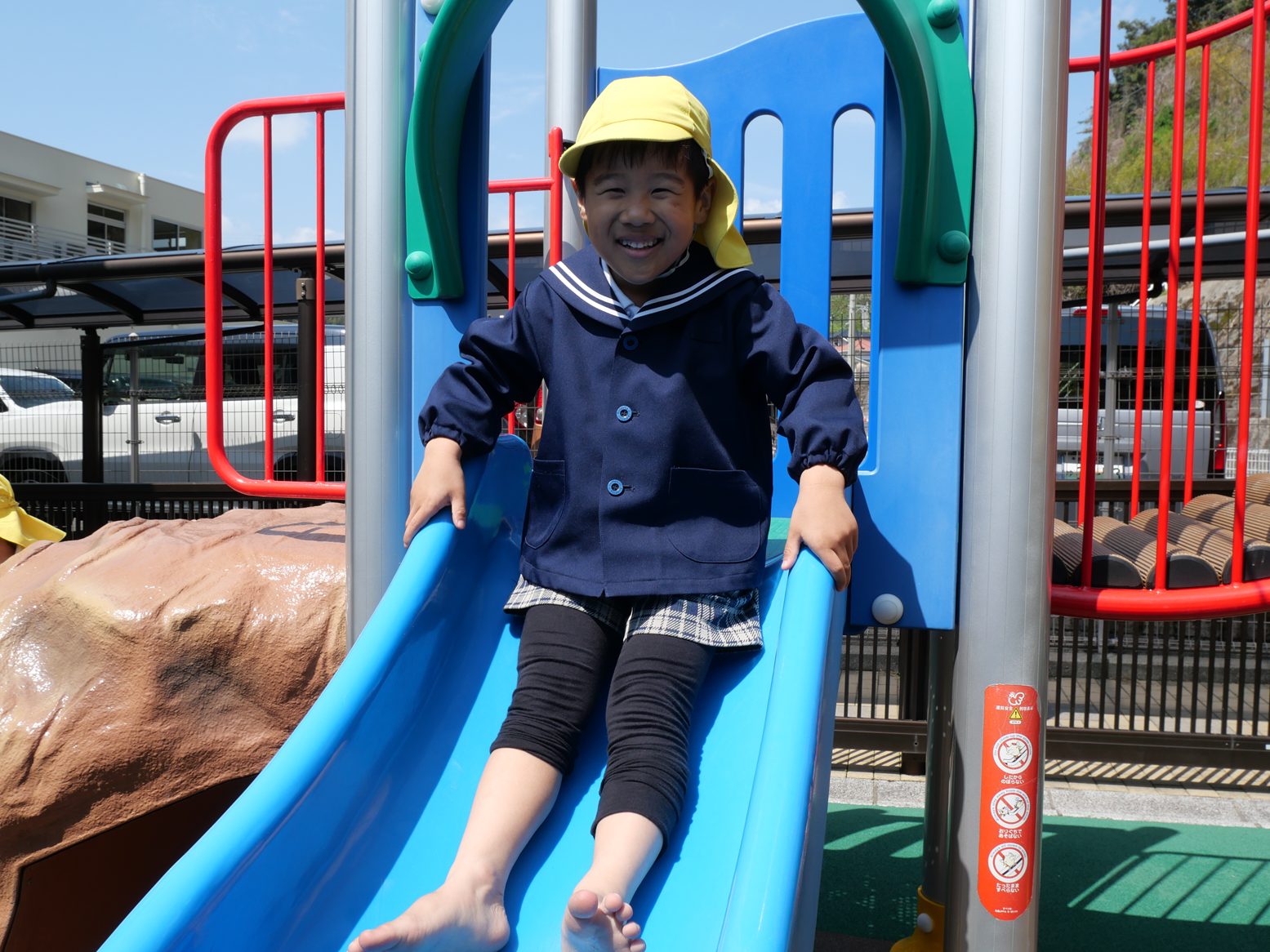 「滑り台、楽しいね!」「上手に登れるようになったよ。」と会話を弾ませながら、嬉しそうに遊ぶ姿が見られました。