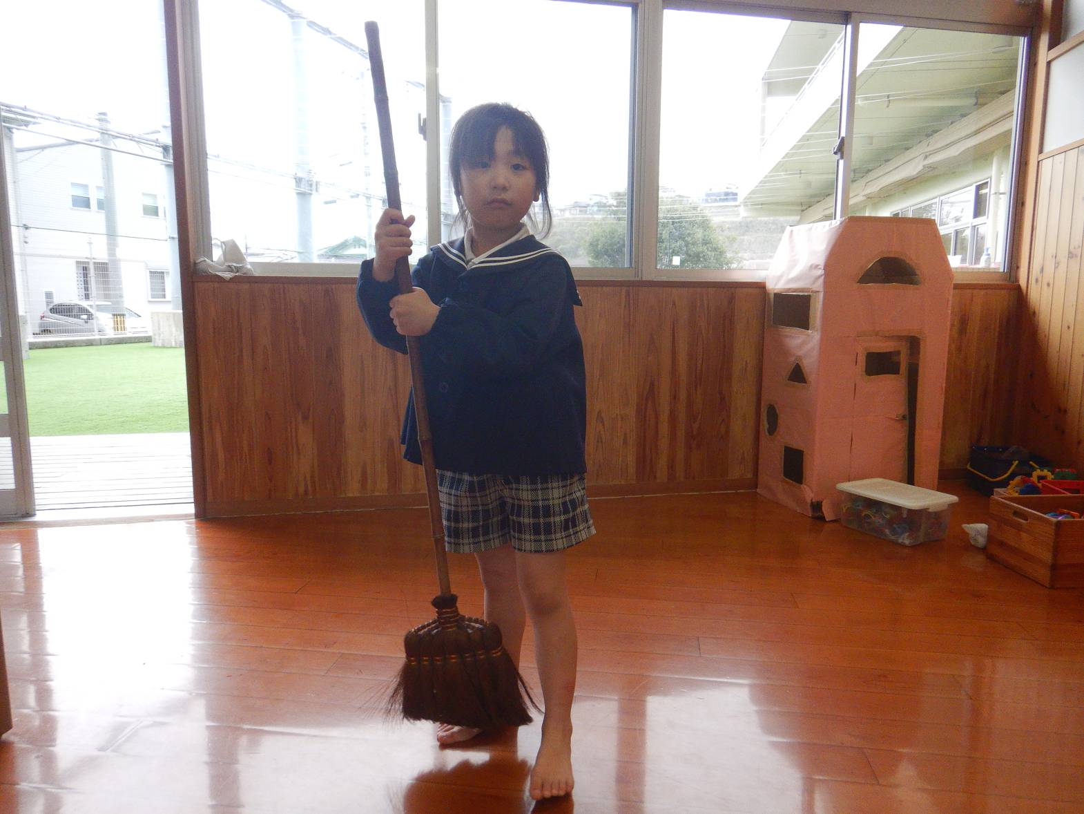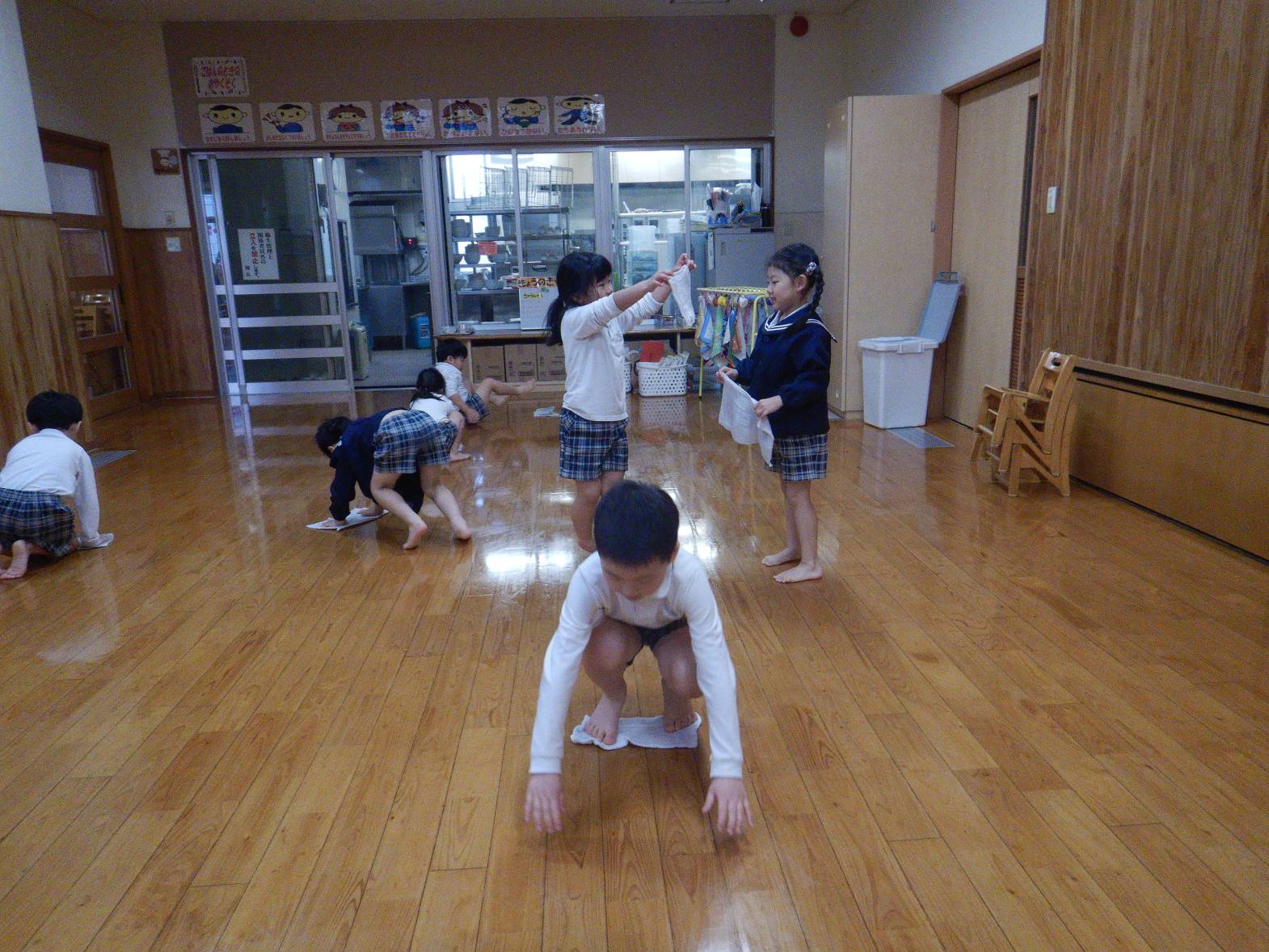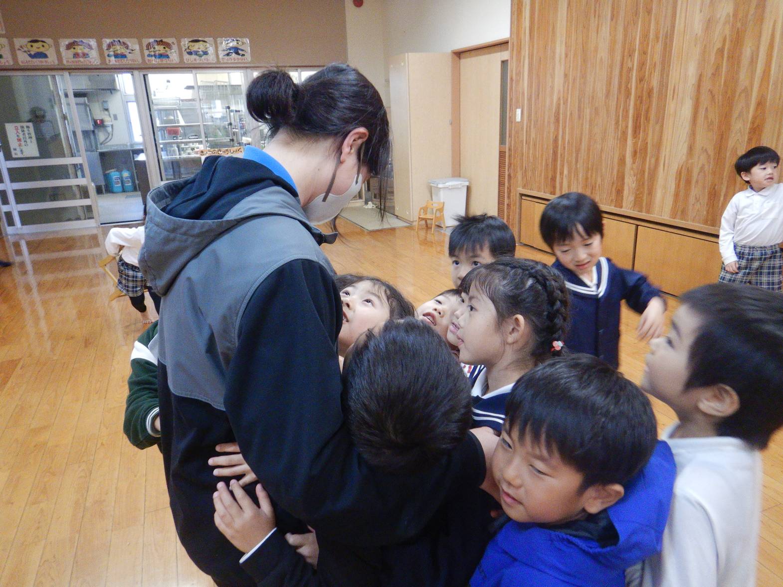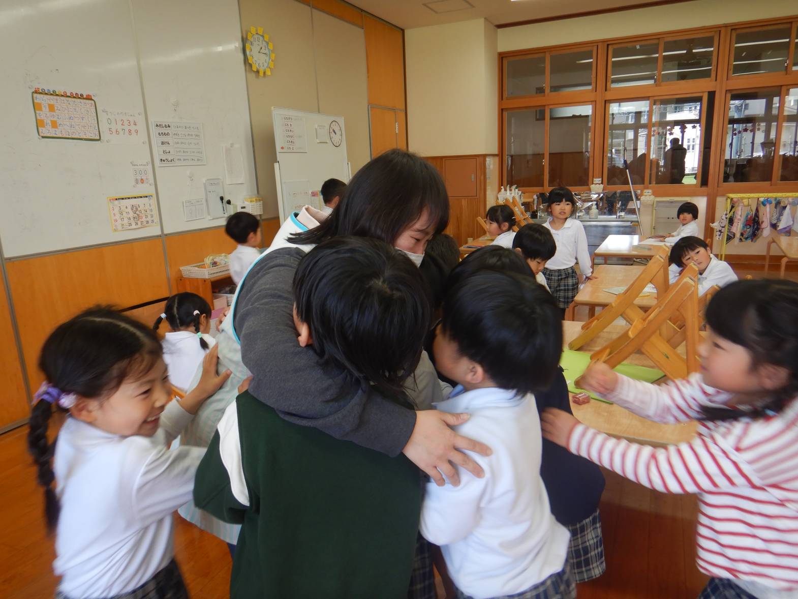 お世話になったひろき保育園を綺麗にしようときりん組のお友だちが大掃除をしてくれました。 「今までありがとうね!」「綺麗にするぞ!」と隅々まで綺麗にしてくれました。 その後は普段会えない赤ちゃん組の先生やお世話になった先生たちにも会いに行きました。 「大きくなったよ!」「今までありがとうございました。」とお話をするきりん組さんでした。 小学校に行っても明るく楽しく元気でね!