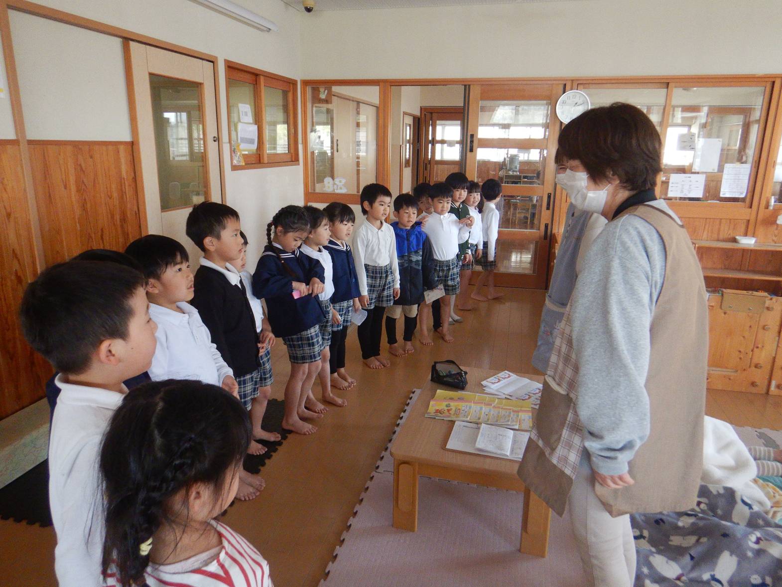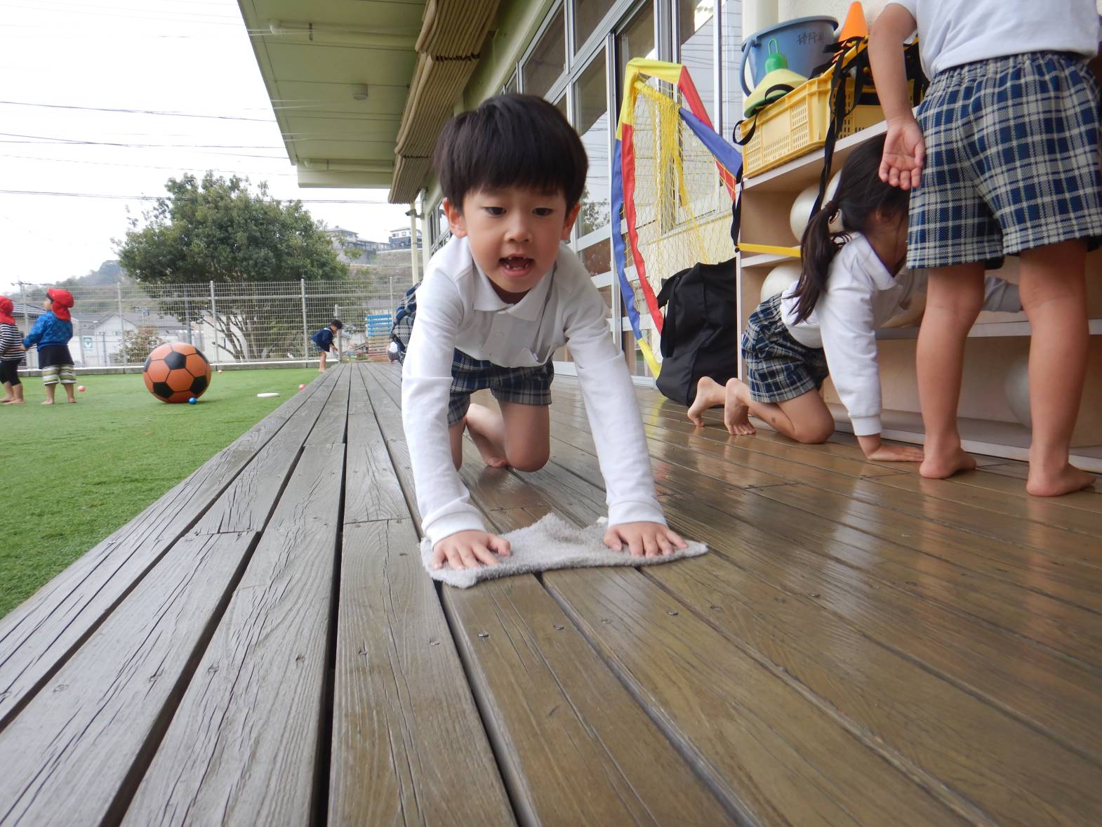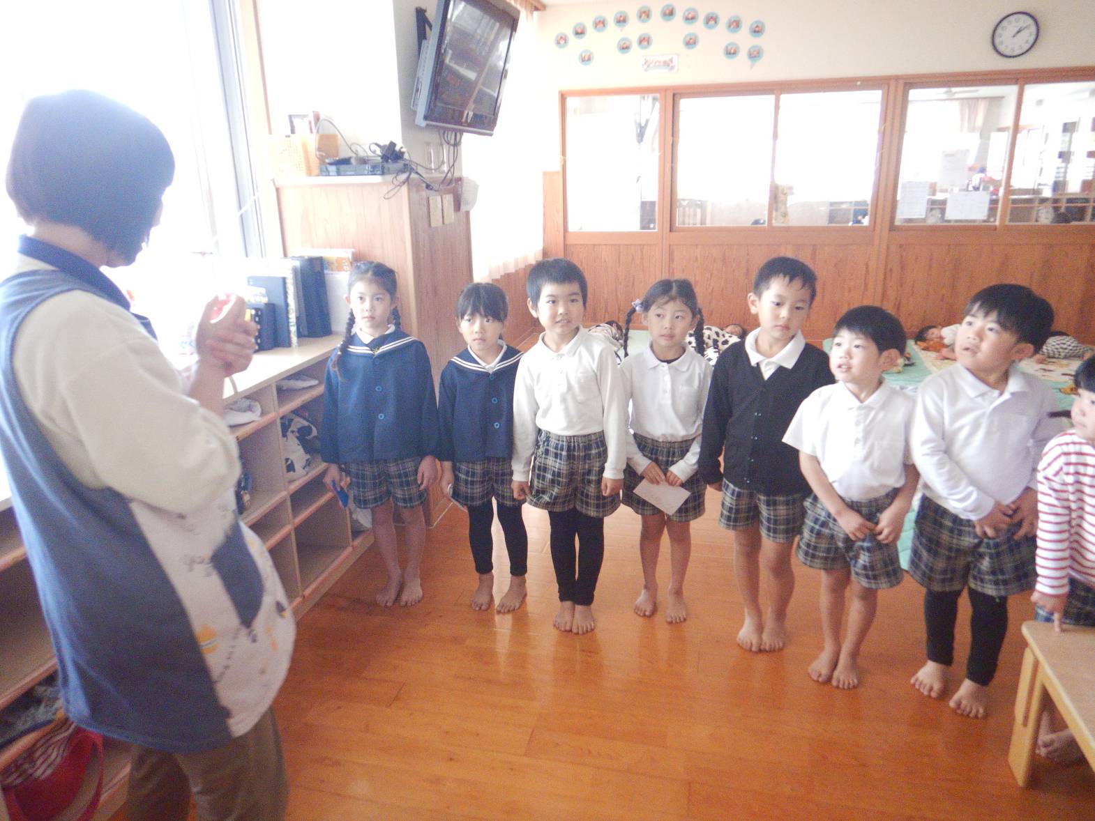 お世話になったひろき保育園を綺麗にしようときりん組のお友だちが大掃除をしてくれました。 「今までありがとうね!」「綺麗にするぞ!」と隅々まで綺麗にしてくれました。 その後は普段会えない赤ちゃん組の先生やお世話になった先生たちにも会いに行きました。 「大きくなったよ!」「今までありがとうございました。」とお話をするきりん組さんでした。 小学校に行っても明るく楽しく元気でね!