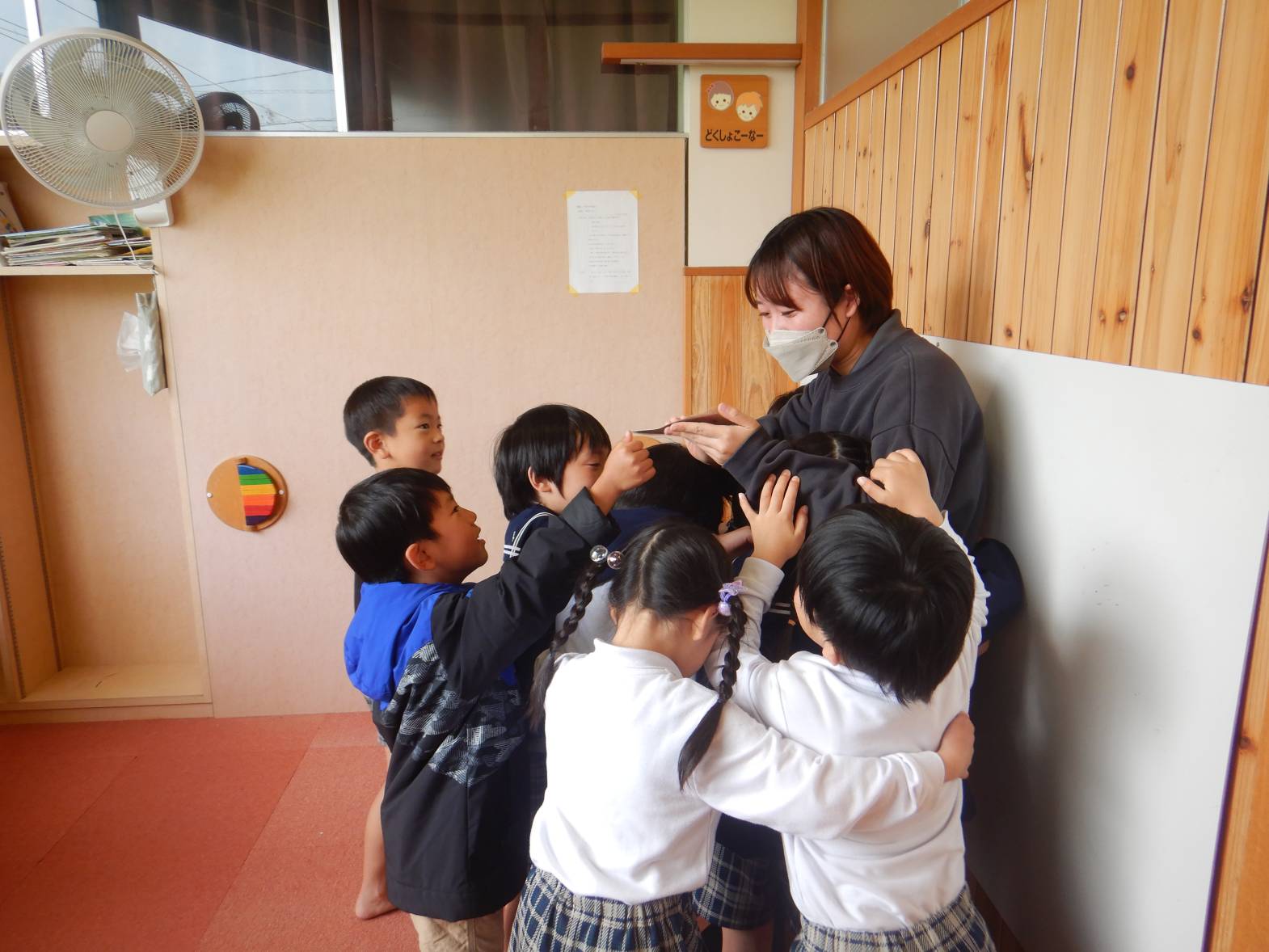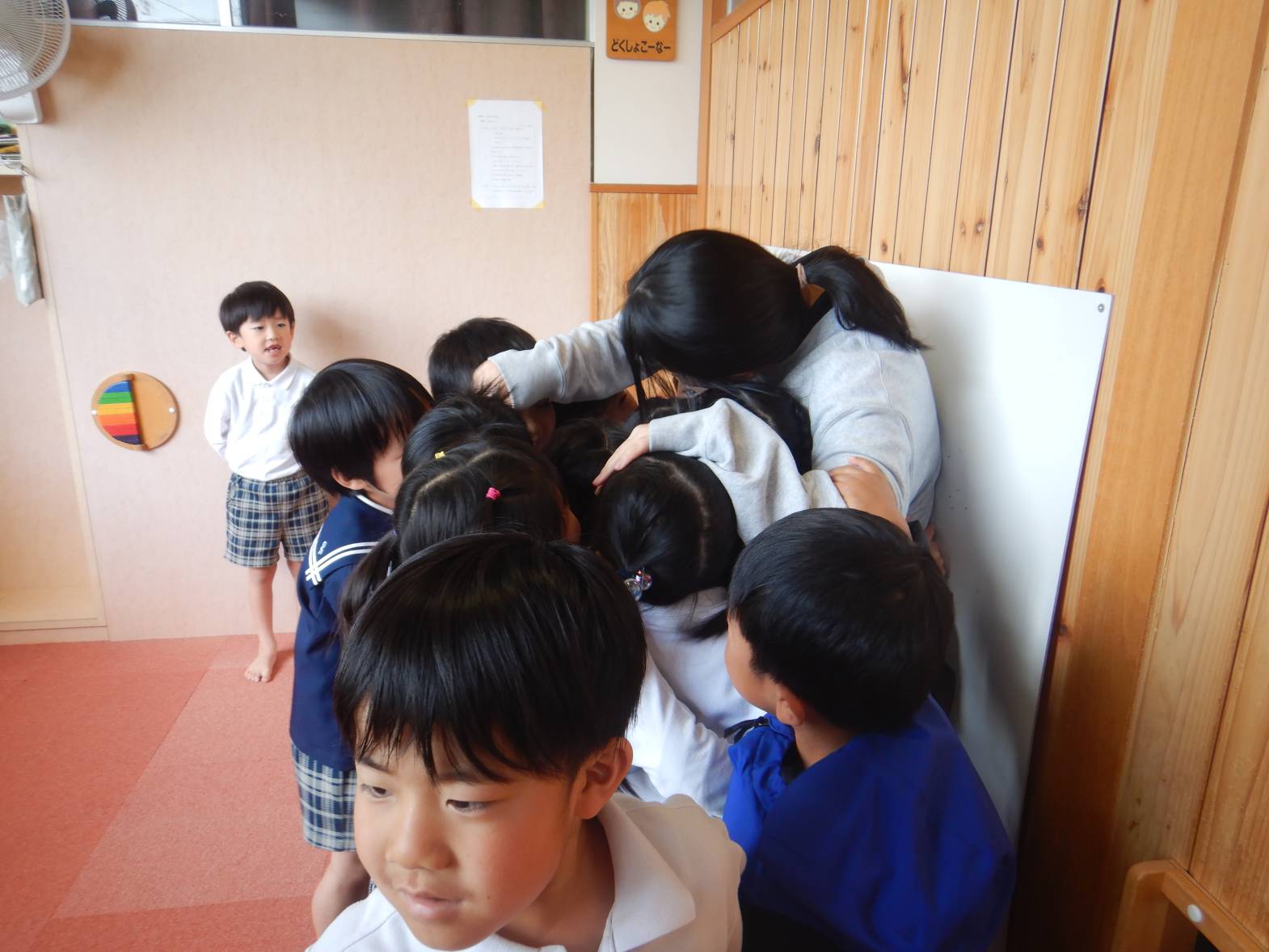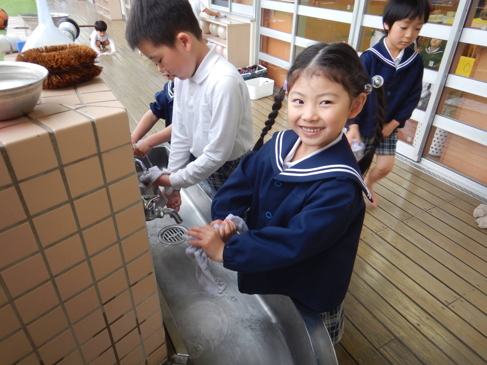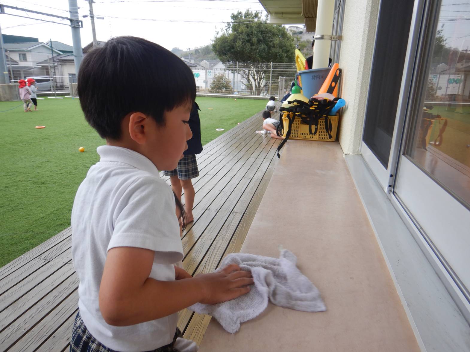 お世話になったひろき保育園を綺麗にしようときりん組のお友だちが大掃除をしてくれました。 「今までありがとうね!」「綺麗にするぞ!」と隅々まで綺麗にしてくれました。 その後は普段会えない赤ちゃん組の先生やお世話になった先生たちにも会いに行きました。 「大きくなったよ!」「今までありがとうございました。」とお話をするきりん組さんでした。 小学校に行っても明るく楽しく元気でね!