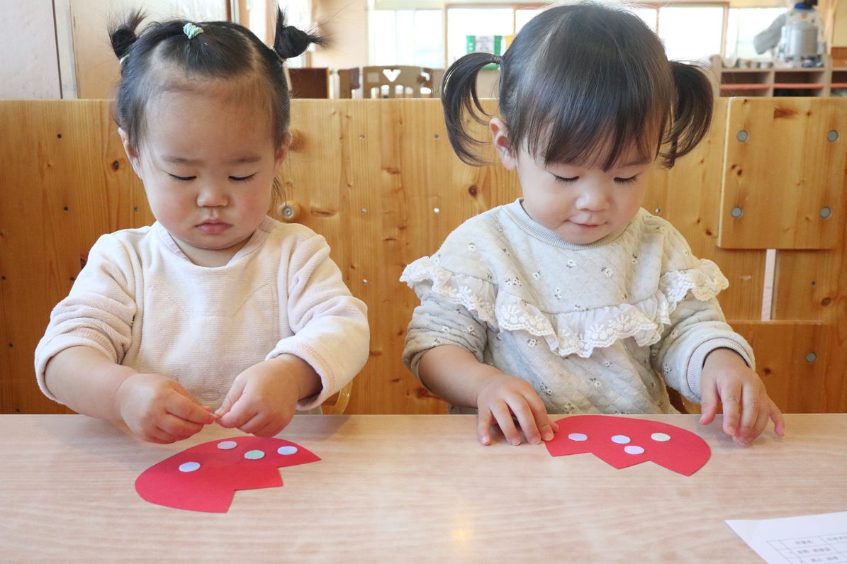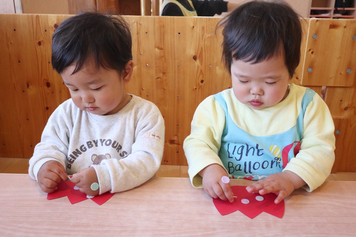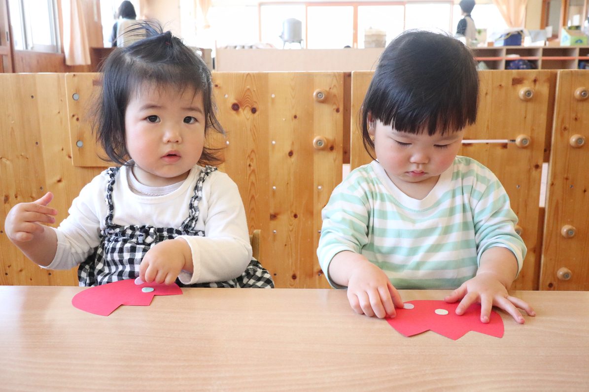 今年度初めての製作を行いました! 手形やシール貼りでチューリップを作っていき、目をキラキラ輝かせる子どもたち! 手先を器用に動かしながら、シールを貼ることができました。 今後も製作を通して、様々な素材に触れたり、季節を味わったりすることができるようにしていきたいと思います!