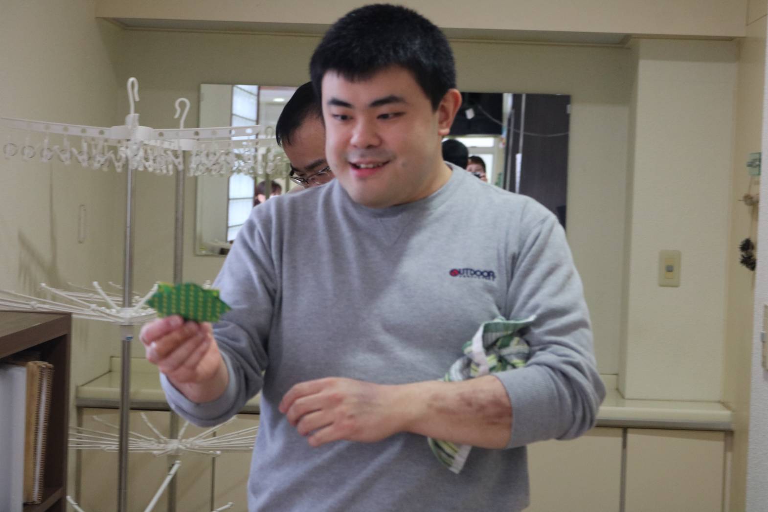 月曜日恒例の「英語で遊ぼう」を行いました。 本日は、いつもの歌や振り付けに加えて、 「イースターエッグ探し」にも挑戦しました。 物の間など難しい場所に隠れているものもありましたが、 活動室内に隠された折り紙を皆さん探し出すことができました。 それぞれ見つけた折り紙と一緒に記念撮影も行いました。 先週、皆さんで作ったイースターエッグも それぞれ記念に持ち帰って頂いています。 是非、ご家庭でも「イースターエッグ探し」楽しまれてみてください。