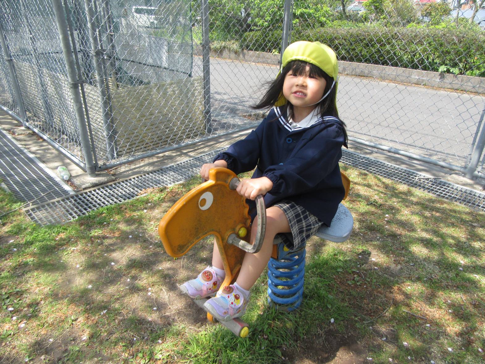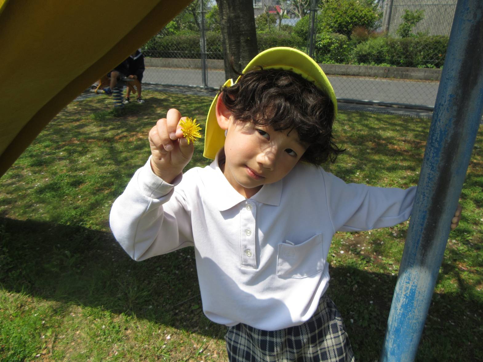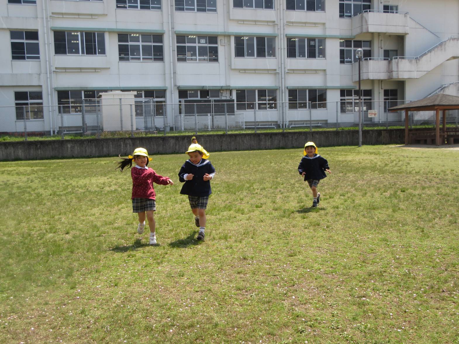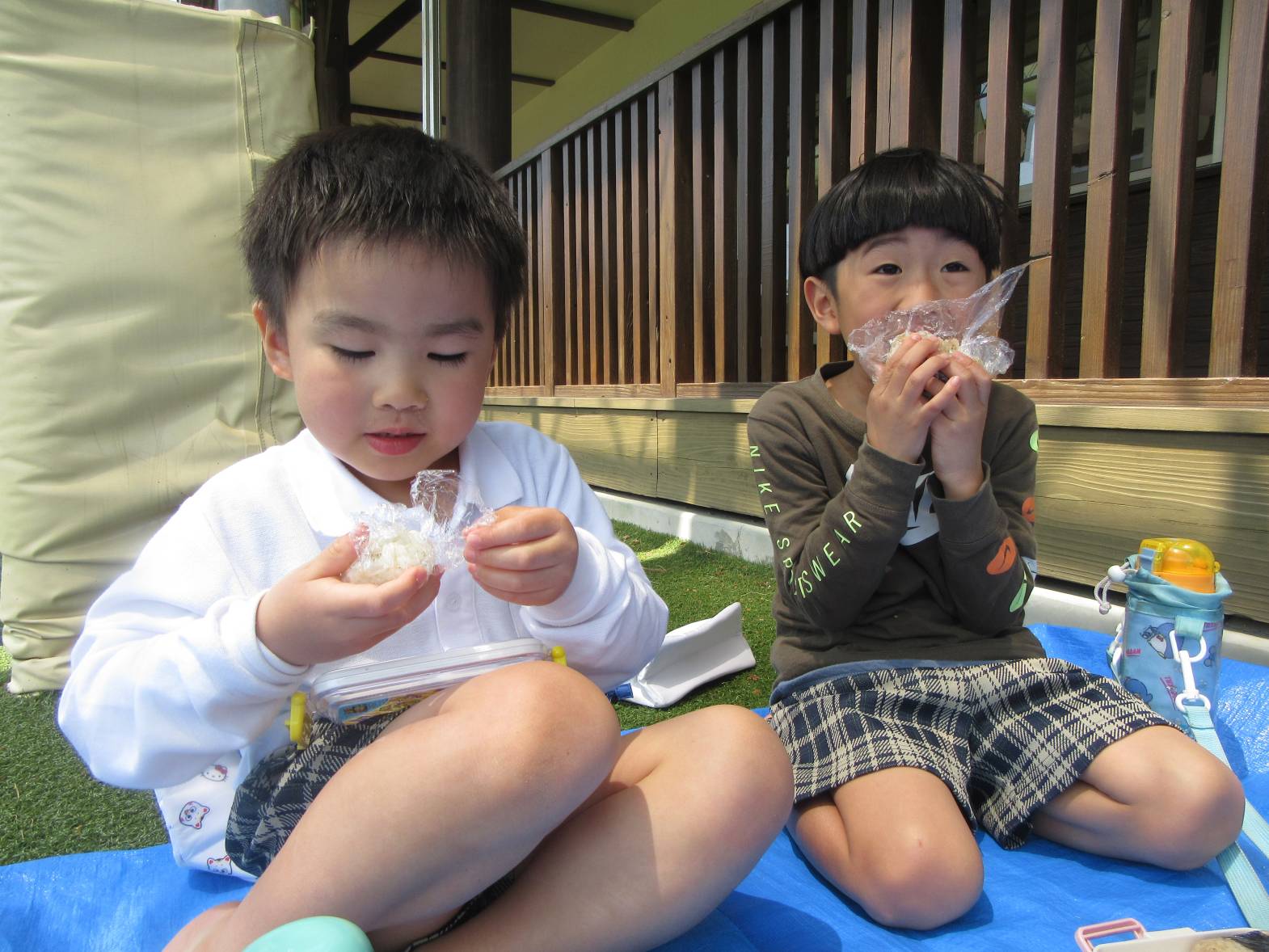 今日は、天気が良かったので近くのさしきばるちびっこ広場へお出かけに行きました。 約束事を確認して出発!「お花が咲いてる!」、「バイクだ!」と植物や景色について友だちと会話を弾ませながら歩いていきます。 広場に到着し、自由遊びの時間! 滑り台やブランコで遊び、体を思い切り動かすことができた子どもたち。 充実したおむすびの日になりました!