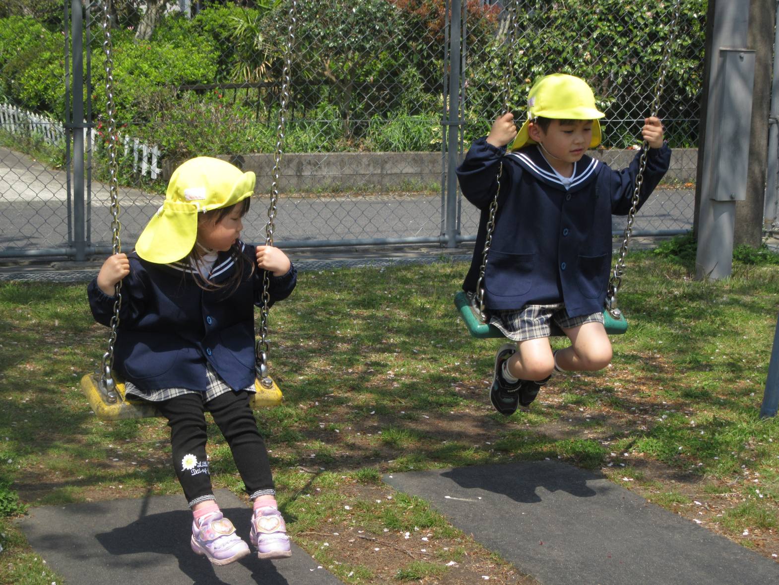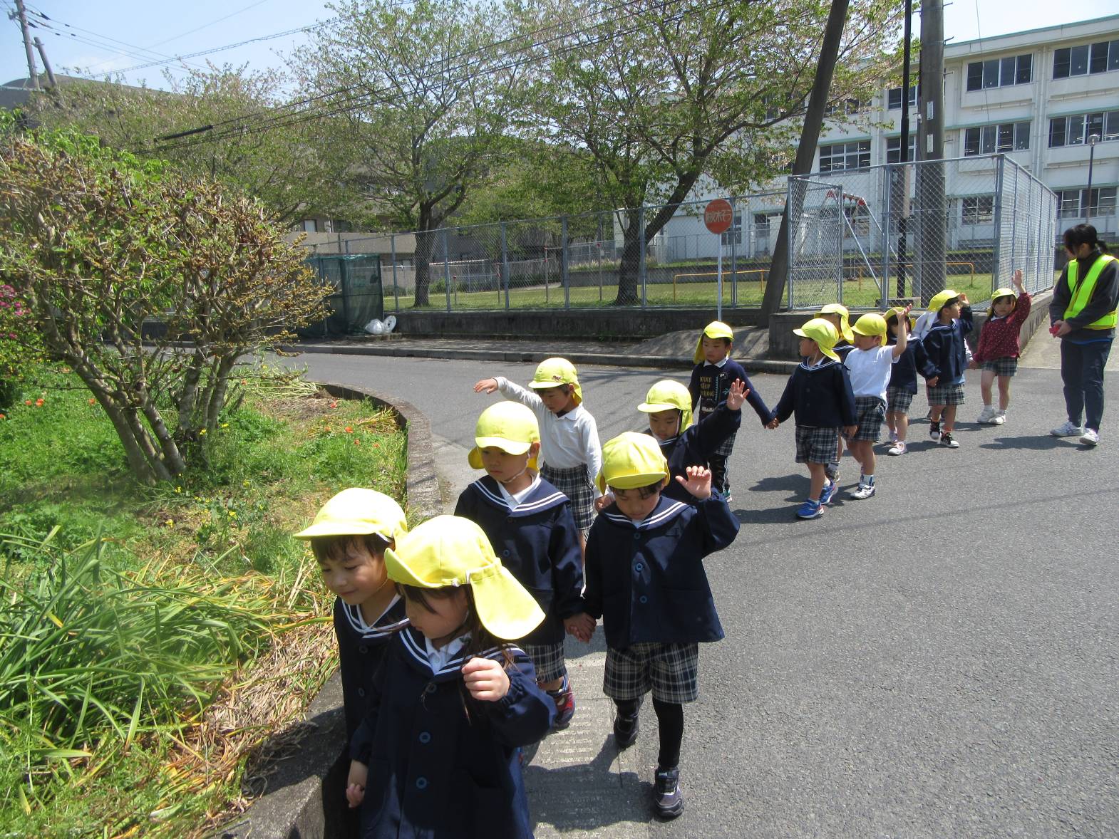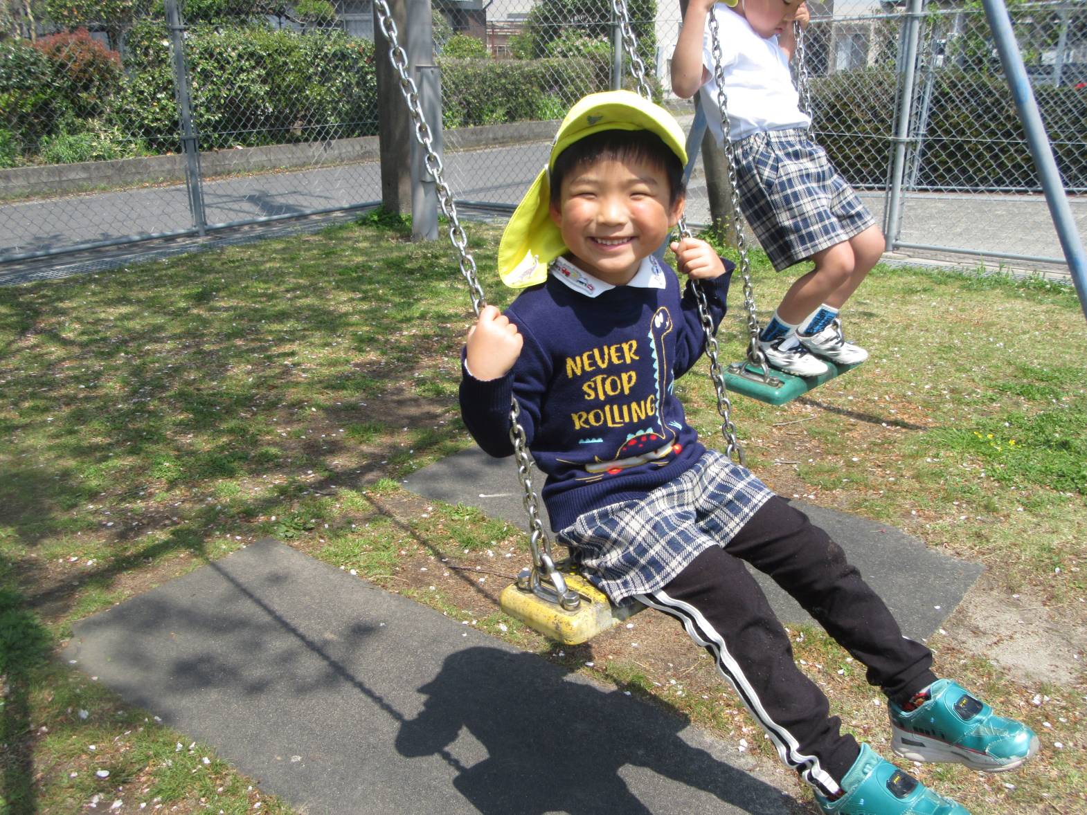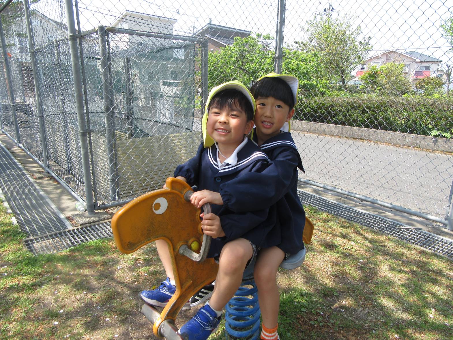 今日は、天気が良かったので近くのさしきばるちびっこ広場へお出かけに行きました。 約束事を確認して出発!「お花が咲いてる!」、「バイクだ!」と植物や景色について友だちと会話を弾ませながら歩いていきます。 広場に到着し、自由遊びの時間! 滑り台やブランコで遊び、体を思い切り動かすことができた子どもたち。 充実したおむすびの日になりました!