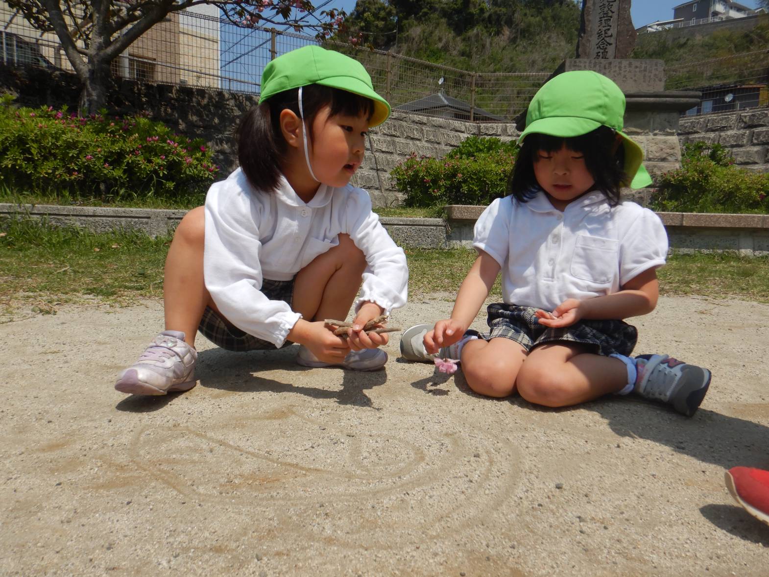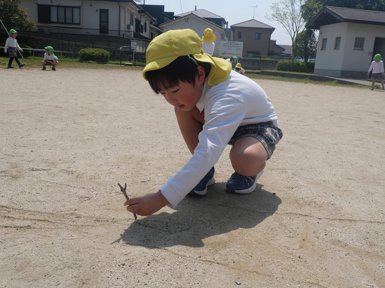 また砂に絵を描き、「これはアイスクリームだよ!」「これは何?」と会話を楽しむ子の姿も見られました。