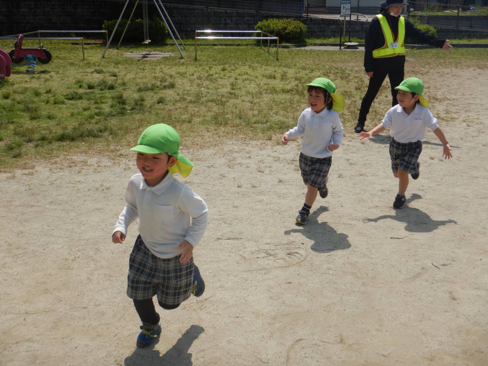 「待て待てー。」「鬼ごっこしよう!」と子どもたち同士で声を掛け合いながら、遊びを展開していきます。