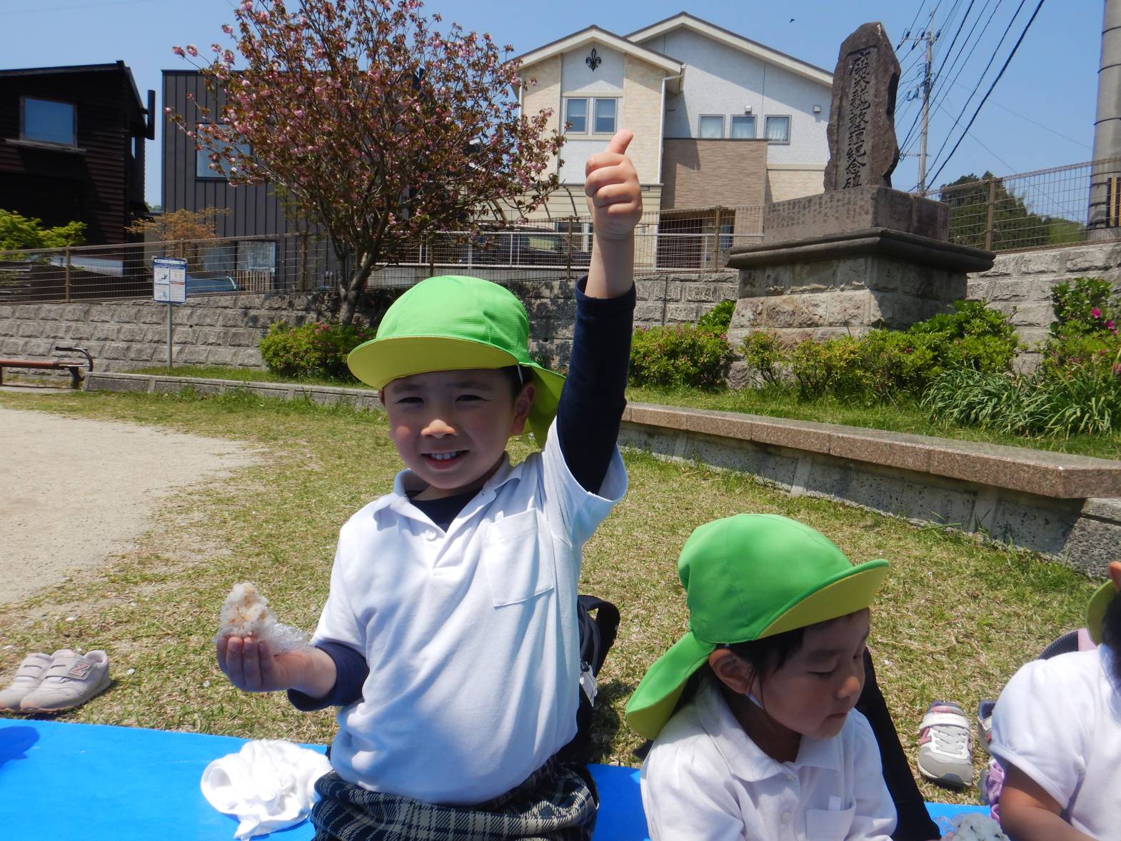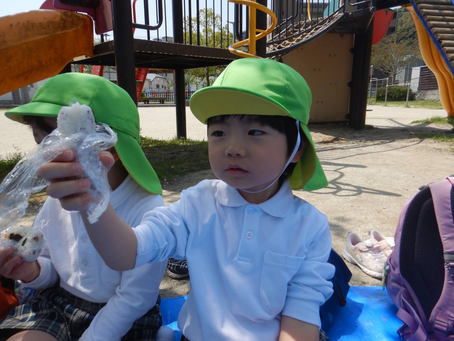 今月のおむすびの日はうさぎ組さん、きりん組さんで一緒にひろき第2公園に行きました。