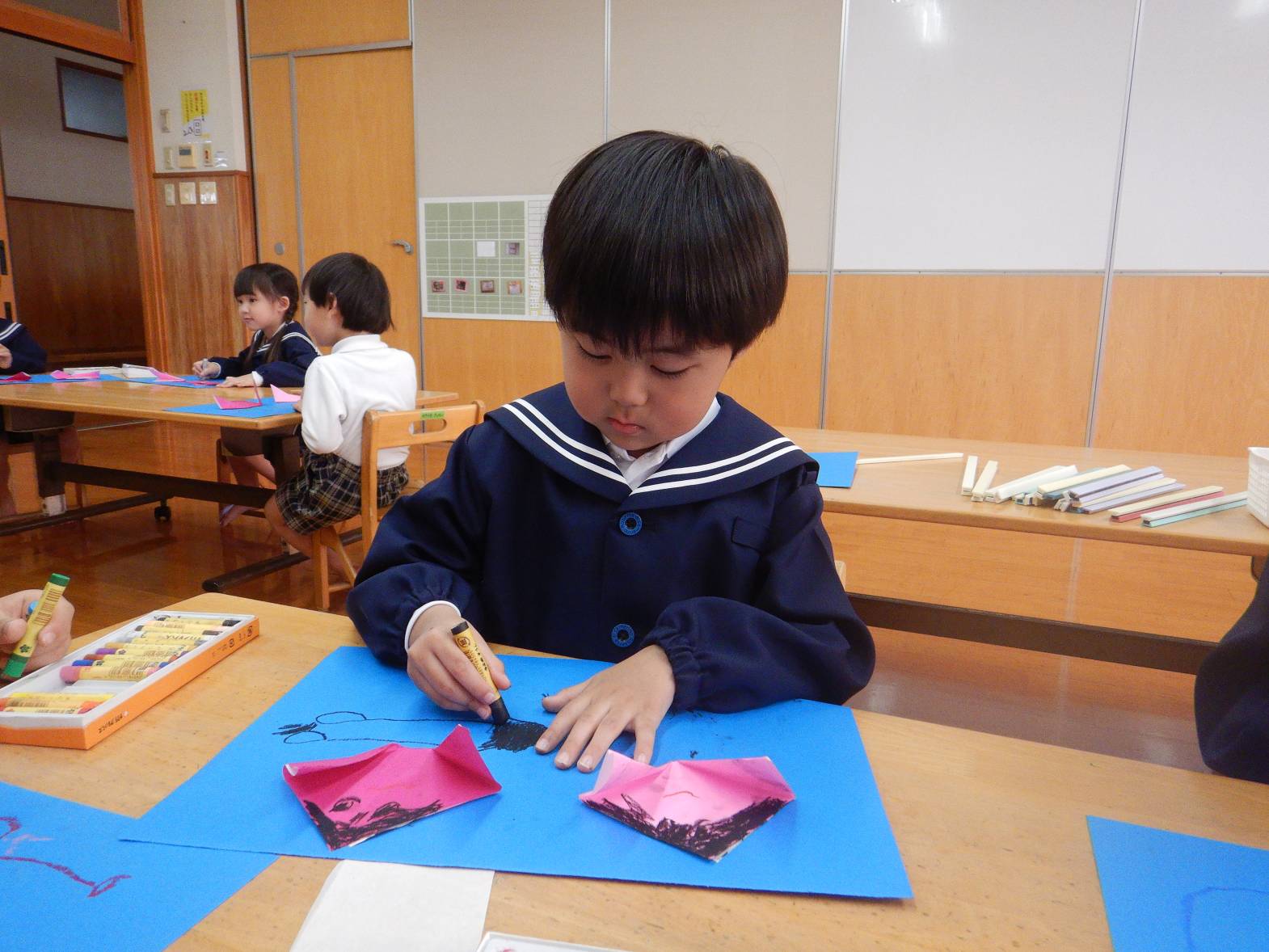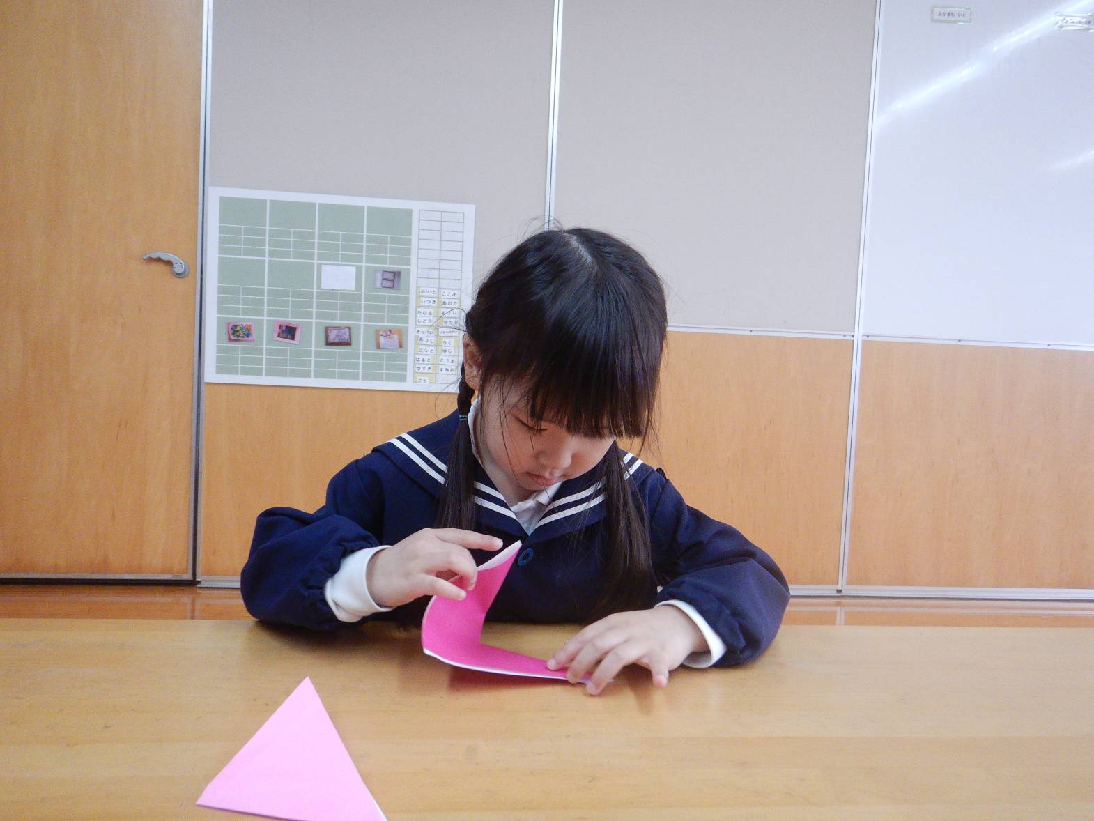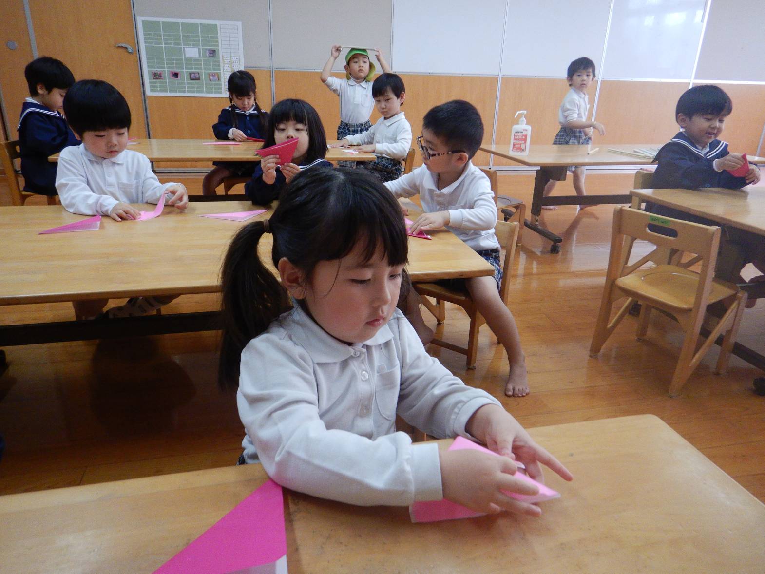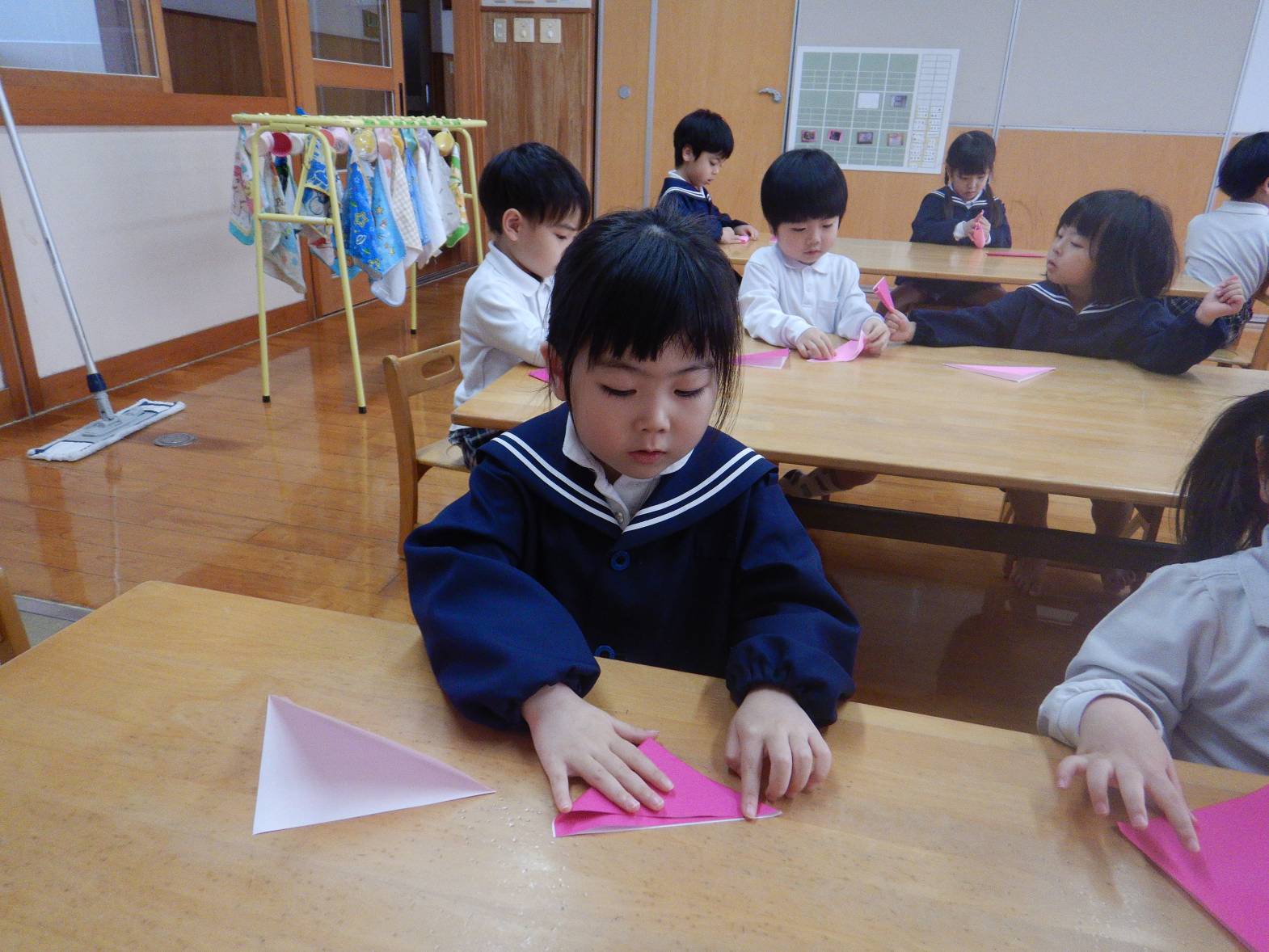 今週はチューリップの製作をしました。 まずは折り紙でチューリップの花を折っていきます。 「しっかり合わせて折れたよ!」「ちょっと難しかった。」とお手本を見ながら折っていく子どもたち。 次は画用紙にお花を貼って絵を描いていきます。 「ちょうちょ書こうかな?」「お友だち書いちゃおう!」と思い思いのチューリップを作ったうさぎ組さんでした。