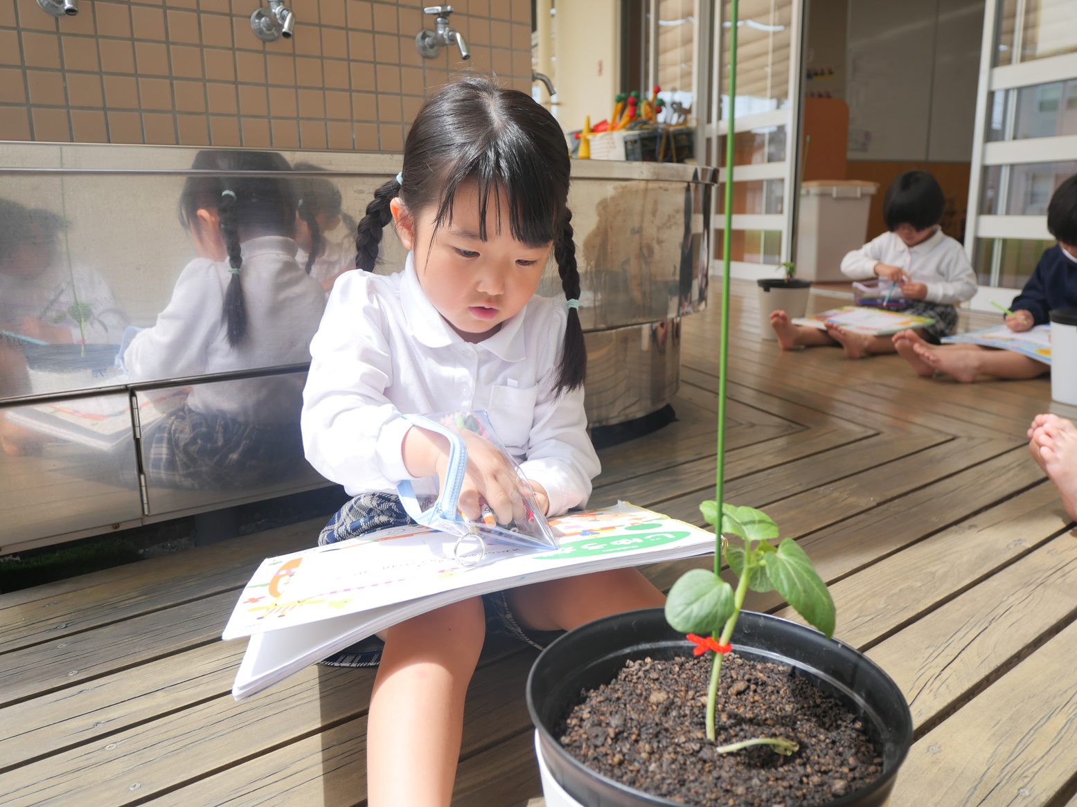 今週、オクラの苗植えをした子どもたち。