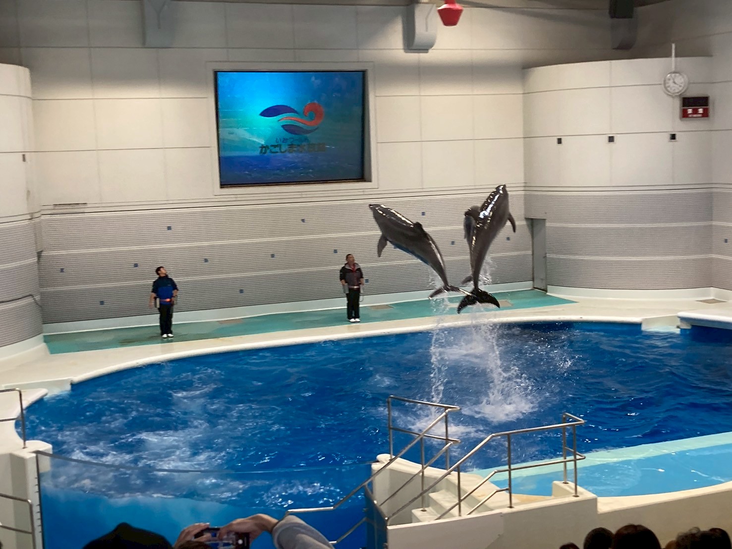 最後はイルカショーを見学しました。今年生まれた小さなイルカの赤ちゃんがとってもかわいかったです。小さくても、大きなイルカと同じようにジャンプすると拍手と一緒に、会場が優しい声に包まれておりました。