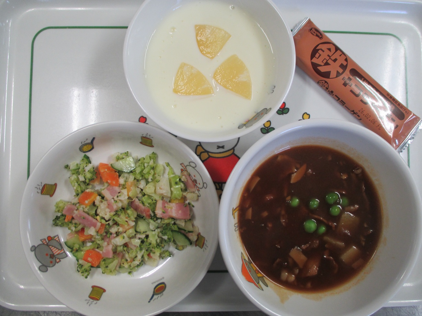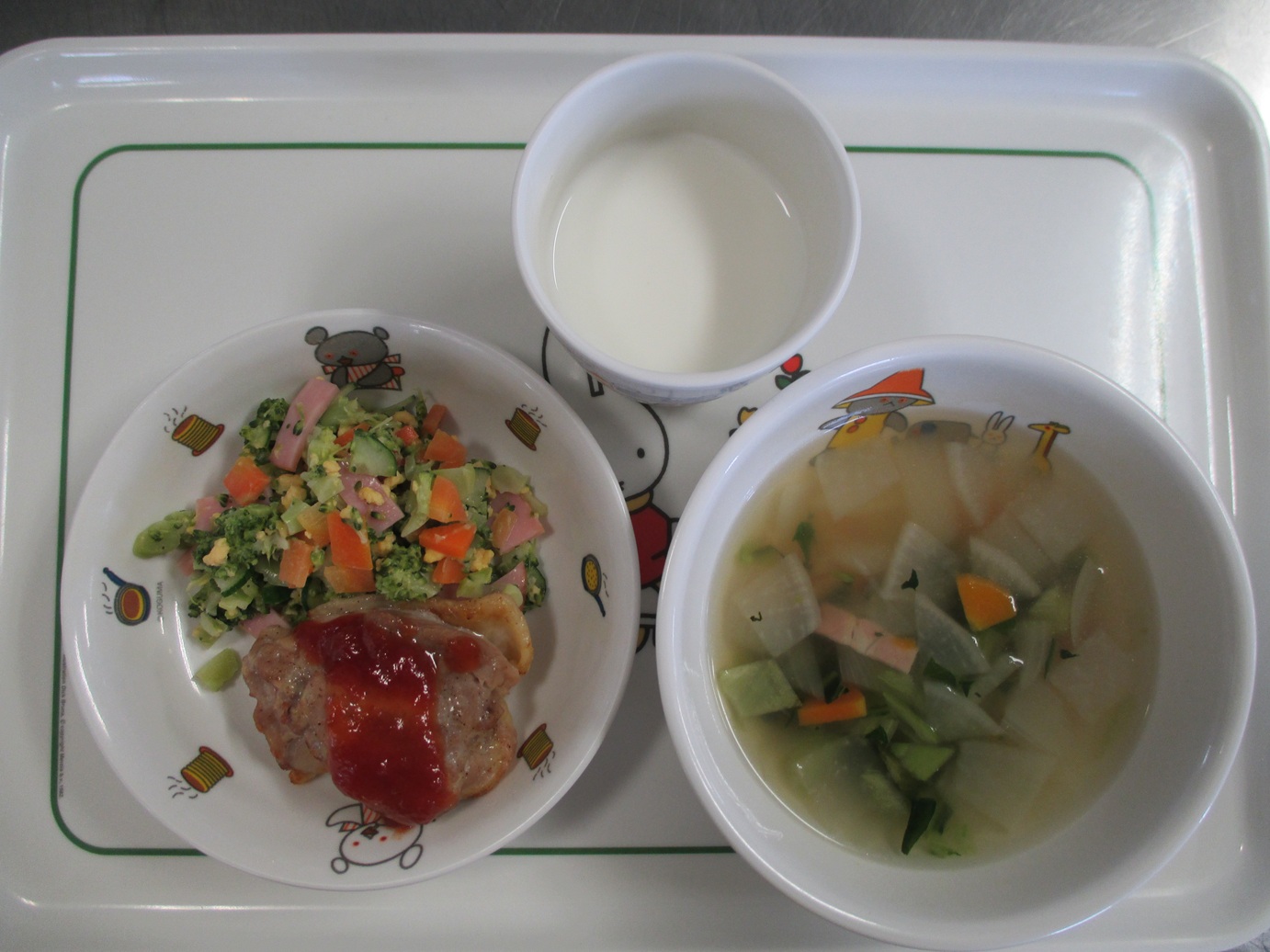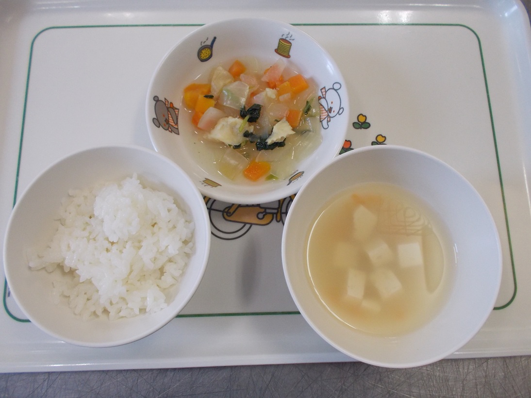 4月14日(月)から4月19日(土)までの給食献立写真・離乳食提供量と写真の一例です。