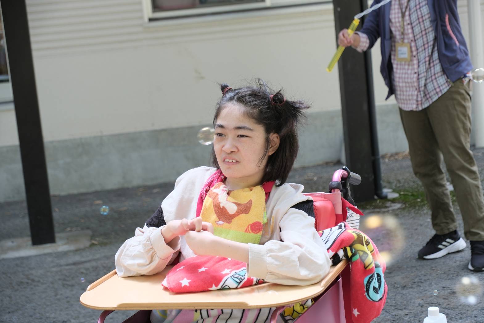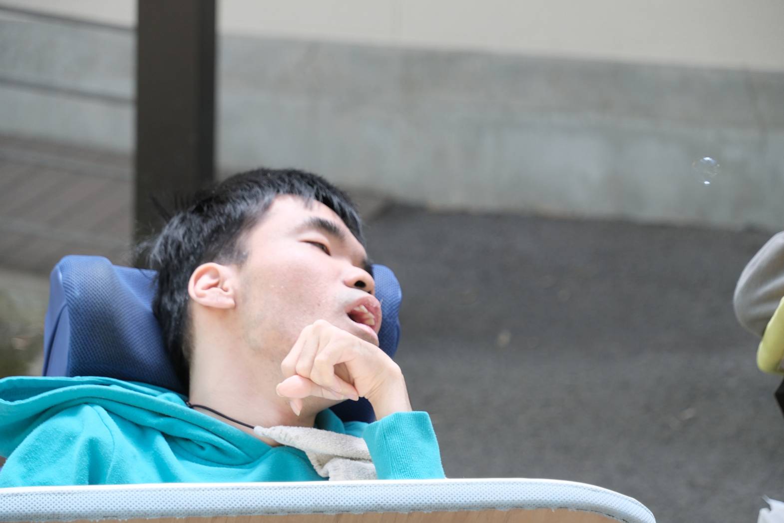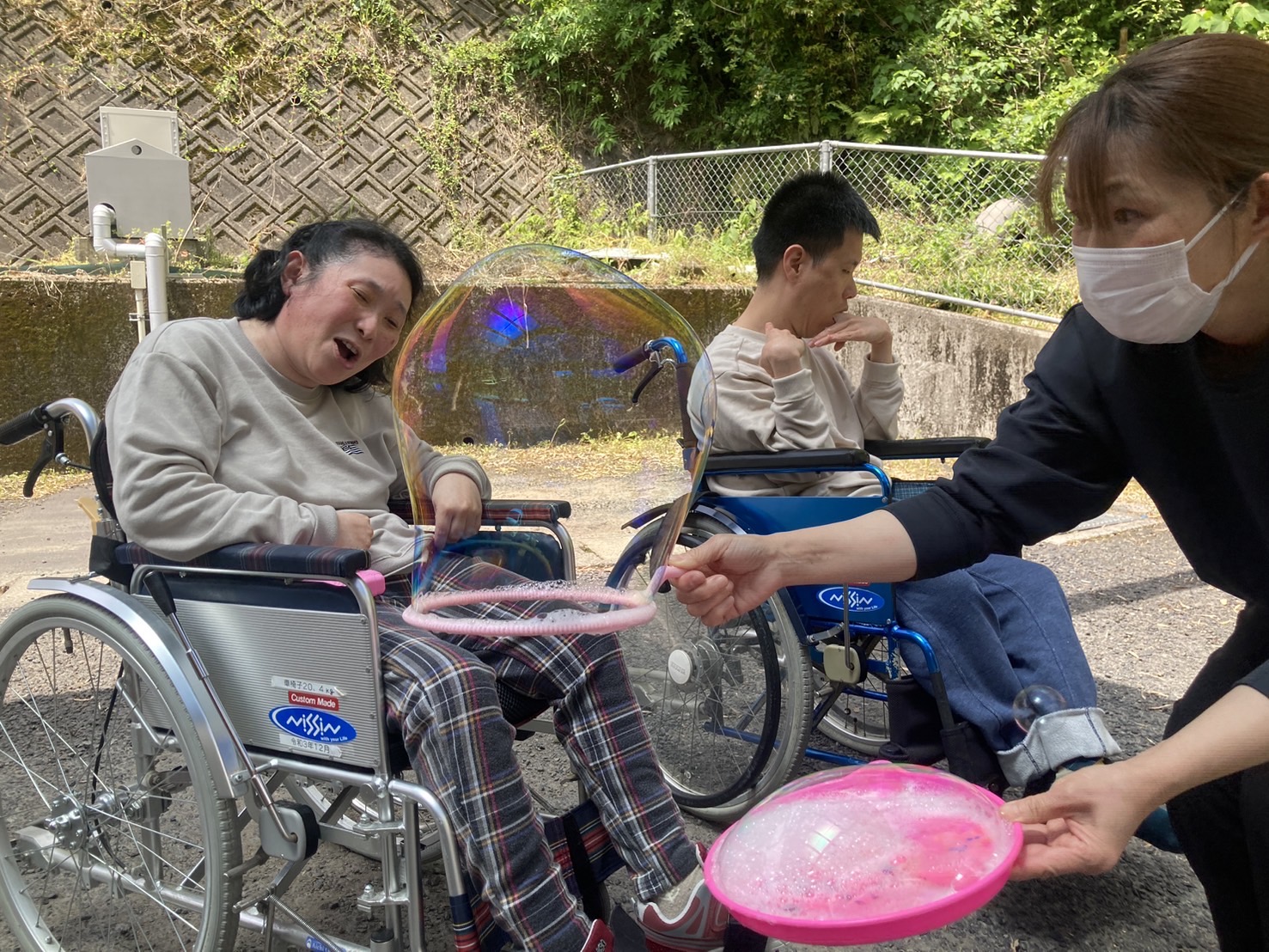 最近、暖かい日が続きますね!そんな日は外に出て、気分をリフレッシュしたいですよね。 今日は園庭に出て、久しぶりにシャボン玉を使ってレクリエーションを行いました。 室内で少しウトウトしていた利用者の方も、外に出ると目がぱっちりに! 外はとっても気持ちが良いですね! 園庭を散策したり、シャボン玉を作って活動を楽しみました。 今回はゆっくりと穏やかな活動を楽しむことができました。今月はスヌーズレンやハンモックなどのリラクゼーション活動を行う予定ですので、そちらも楽しみにしておいてくださいね♪