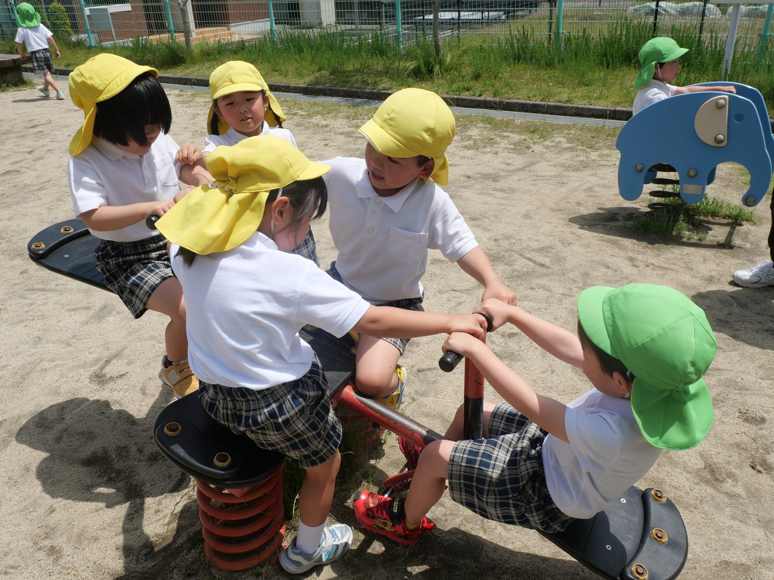 また、友だちと鬼ごっこをしたりシーソーをしたりして遊ぶ子も見られます。
