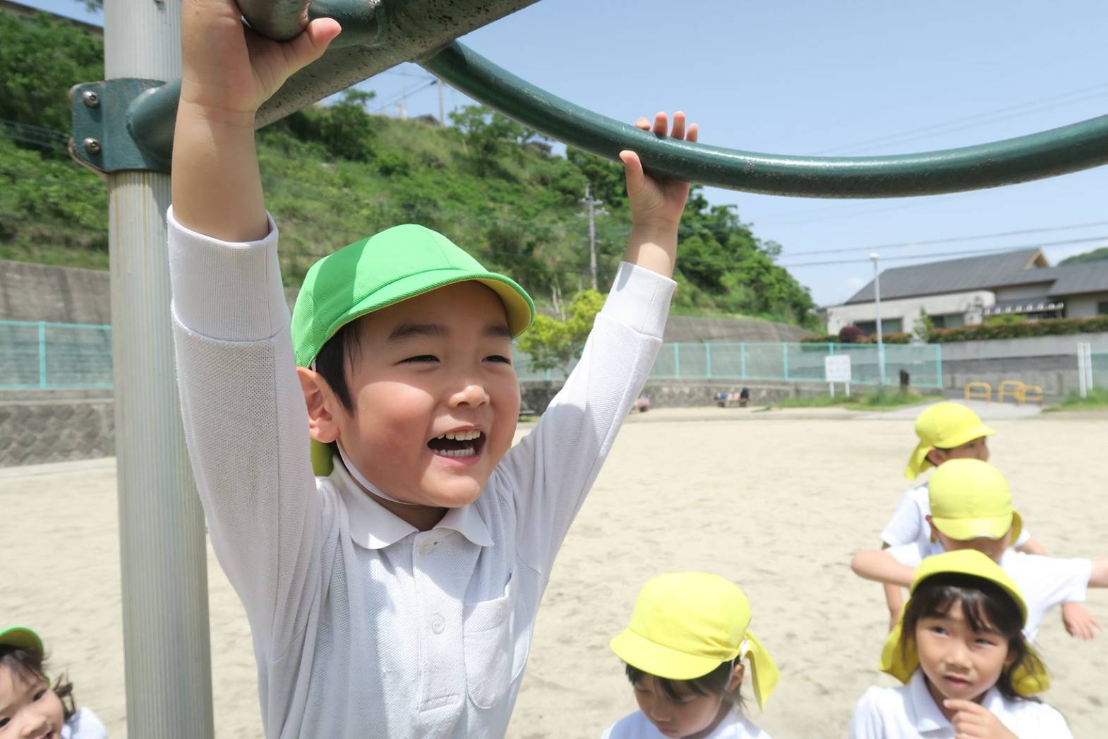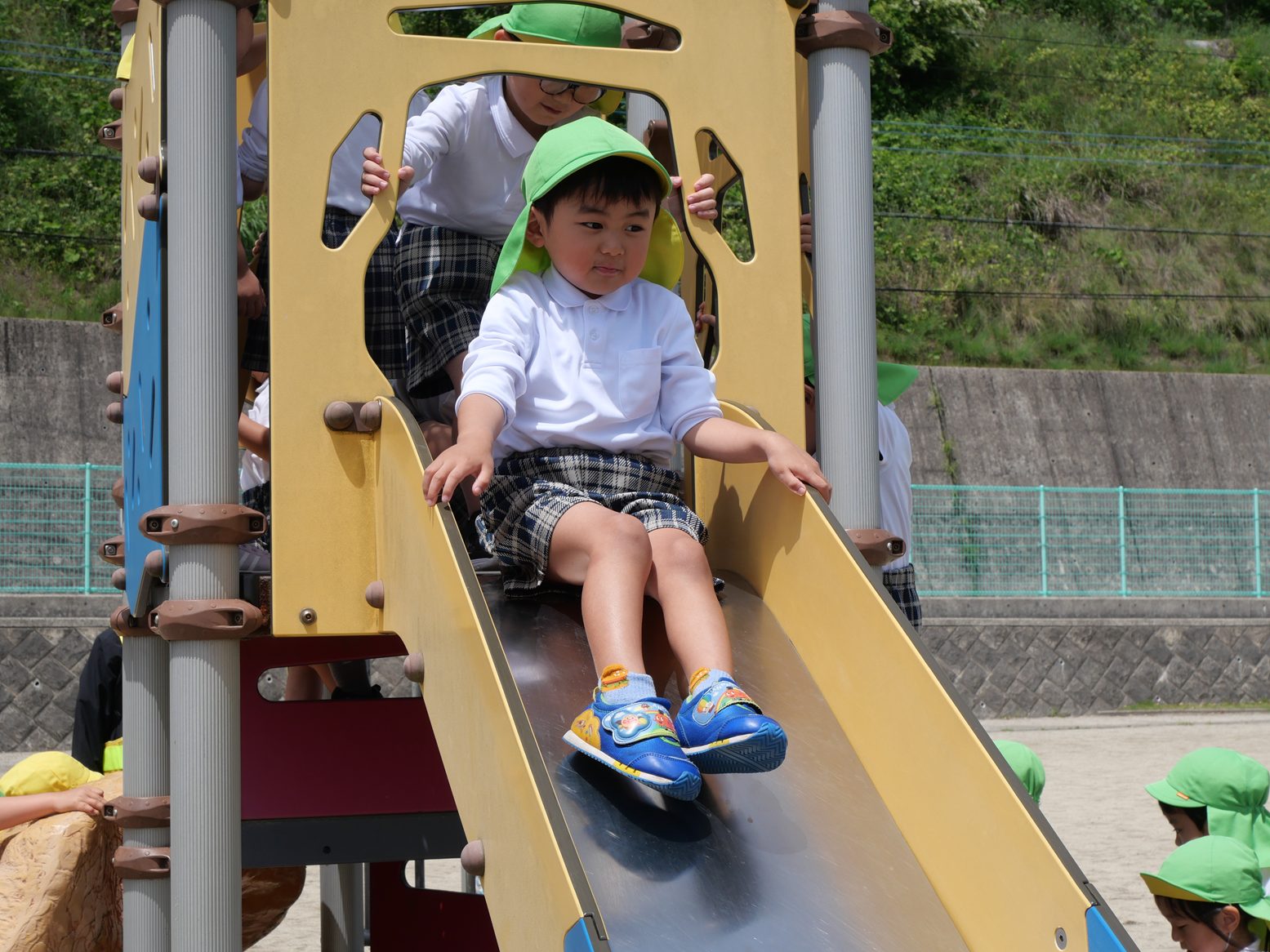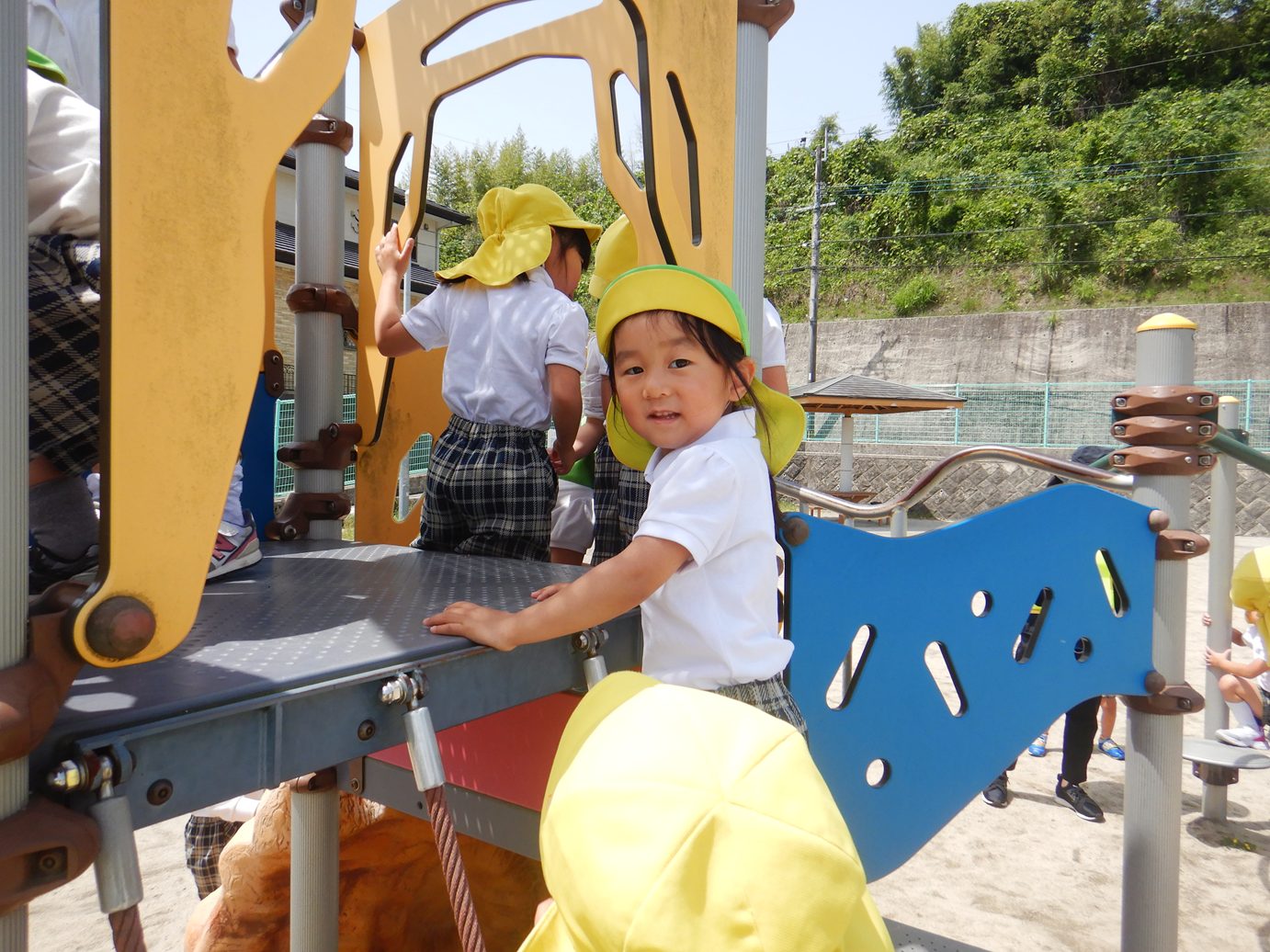 「これできるよ!」「滑り台、楽しいな。」と嬉しそうに話しながら、何度も遊具で遊ぶ姿が見られました。