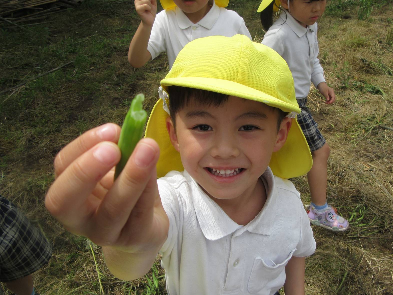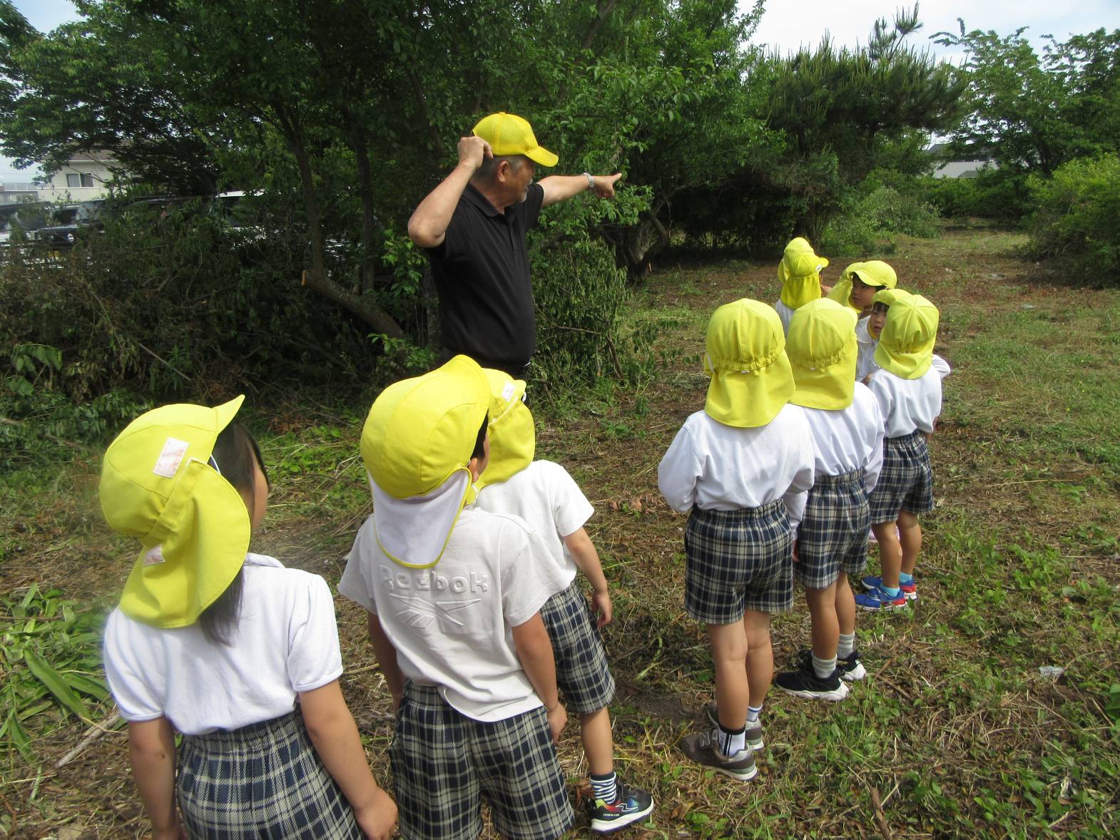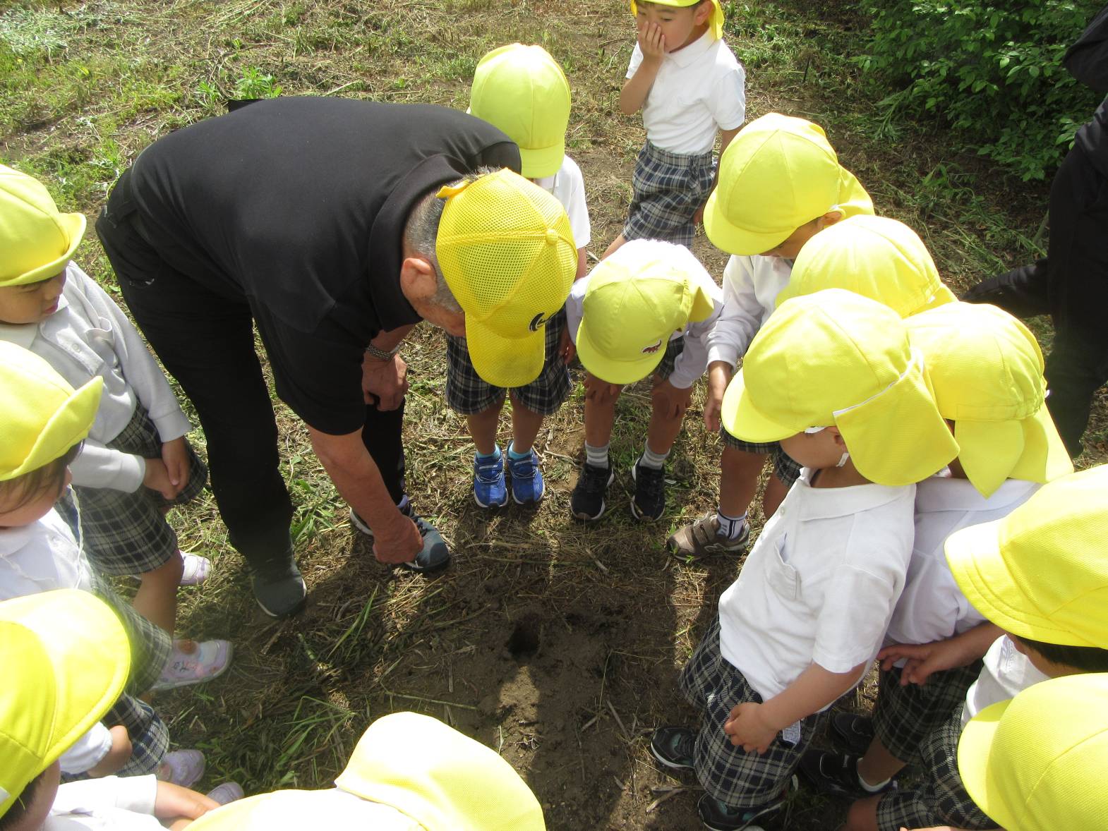 今日は、園長先生と保育園の裏側を探検しに行きました。 「何があるかな?」とわくわくしながら向かっていきます! 虫を見つけると、園長先生が持ってきた虫眼鏡でじっくり観察することができ、「わぁ~!すごい!」と大興奮の子どもたち。 「梅みたいなものがある!」、「これは何かな?」と様々な物を発見し、友だちと共有することを楽しんだきりん組さんでした。