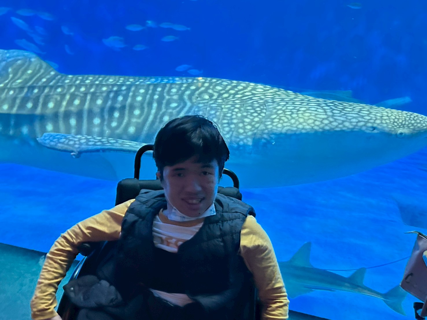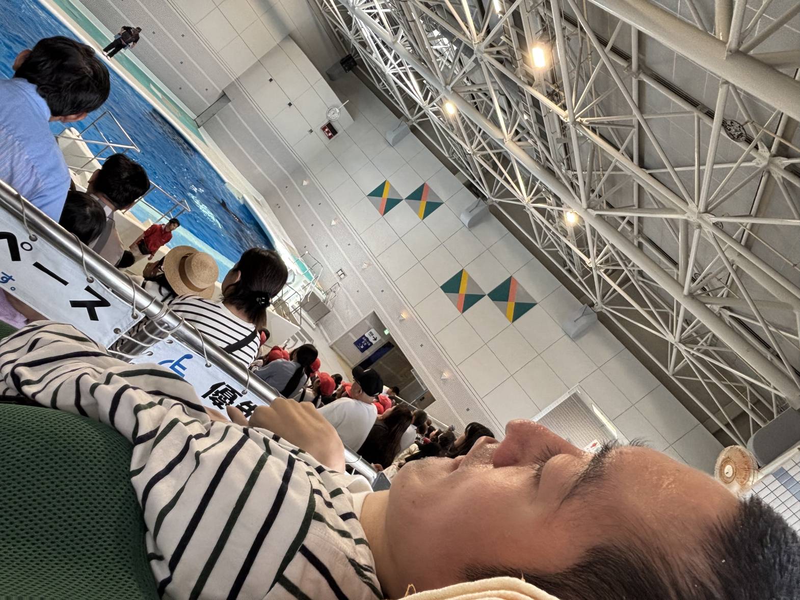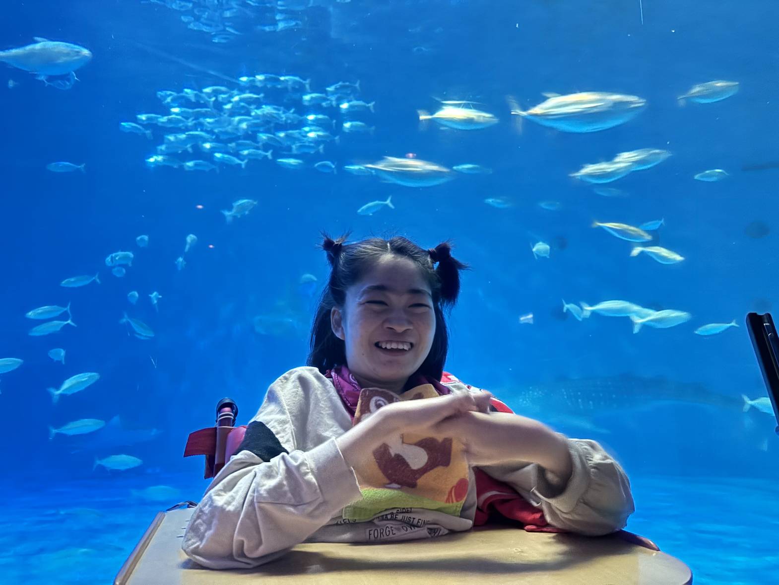 今日は2班目の水族館外出でした! 今日の外出活動をとても楽しみにされていたそうです! 出発前から皆さん、ニコニコです♪ バックヤード見学の後、イルカショーを見て楽しみました。 残念ながらイルカにサインを出せる係には指名されず・・・ それでも皆さんと一緒に手を大きく動かして、サインをしておりました! 次回の水族館外出に参加される方も楽しみにしておいてくださいね♪