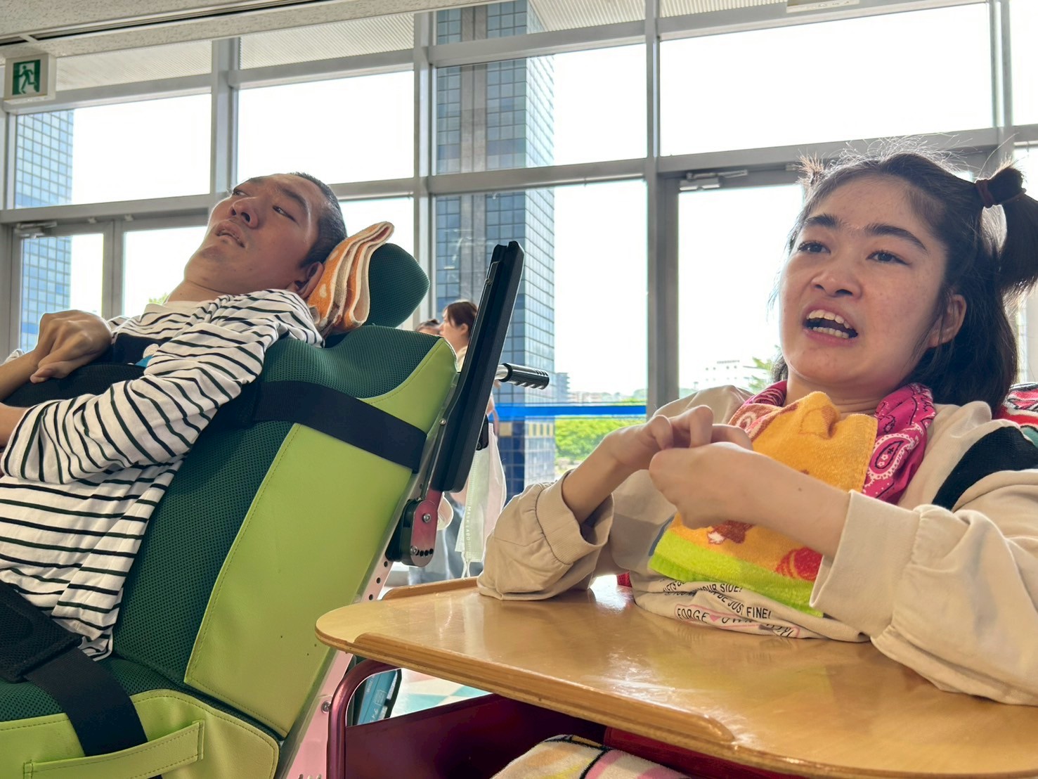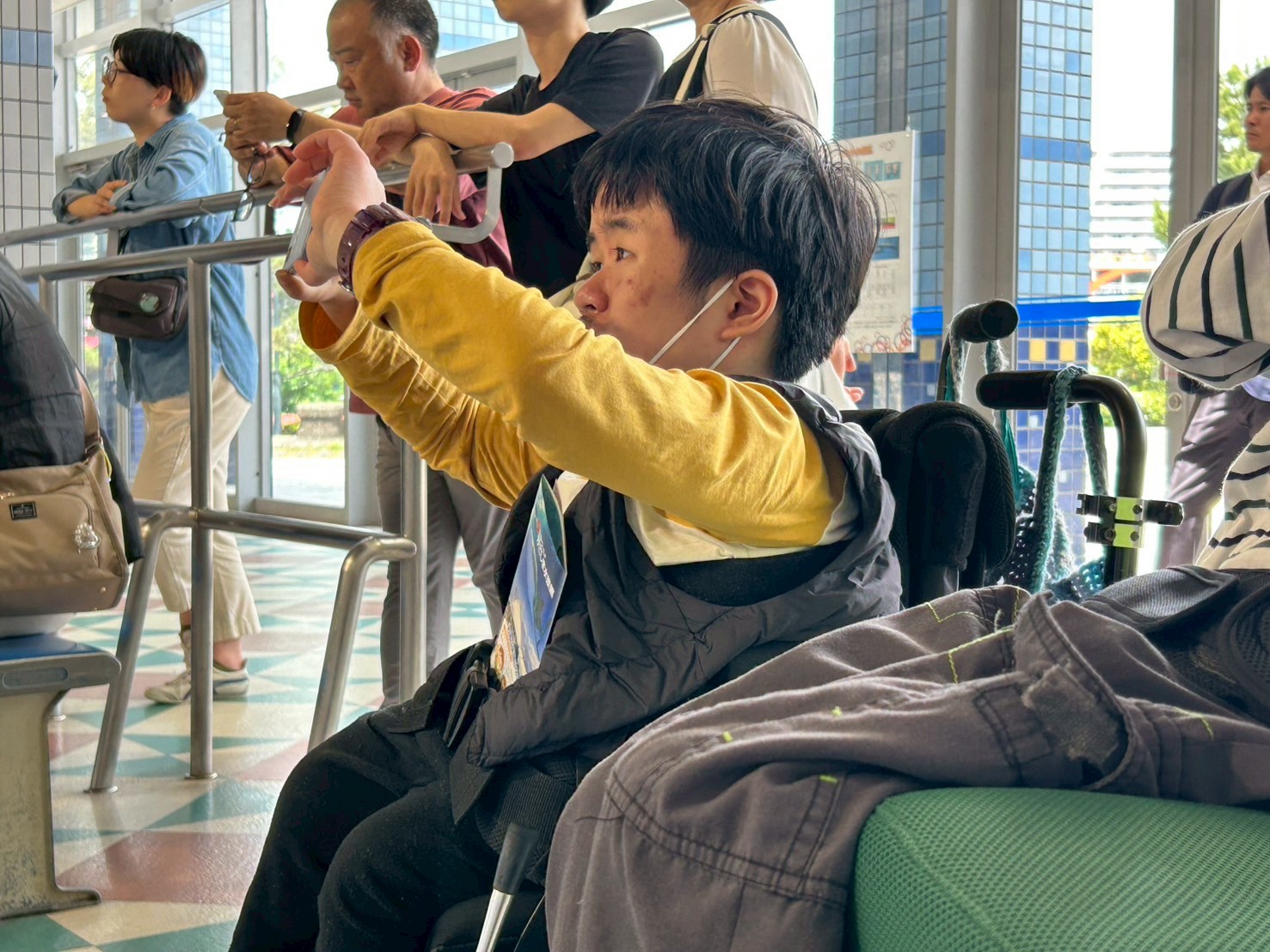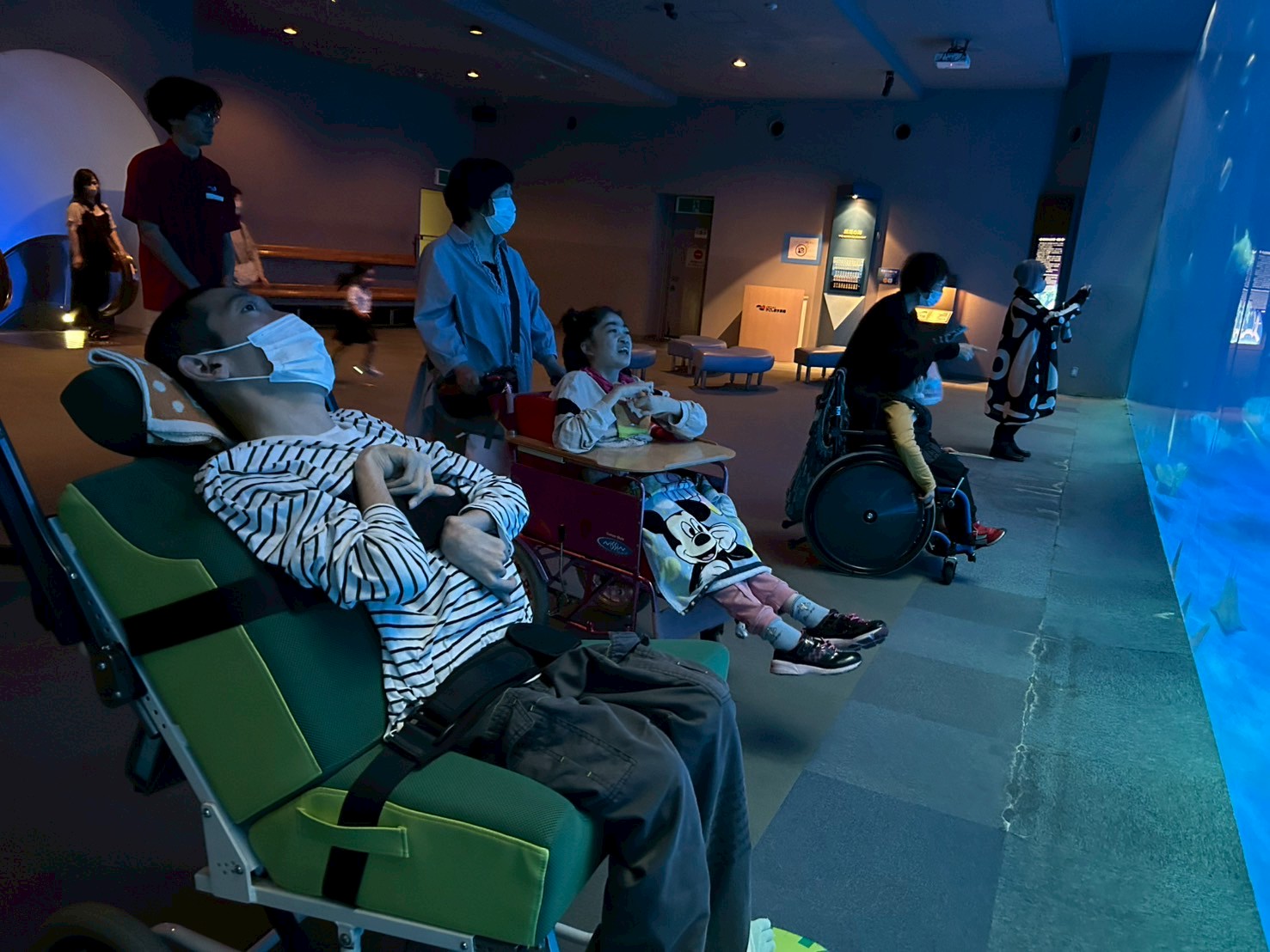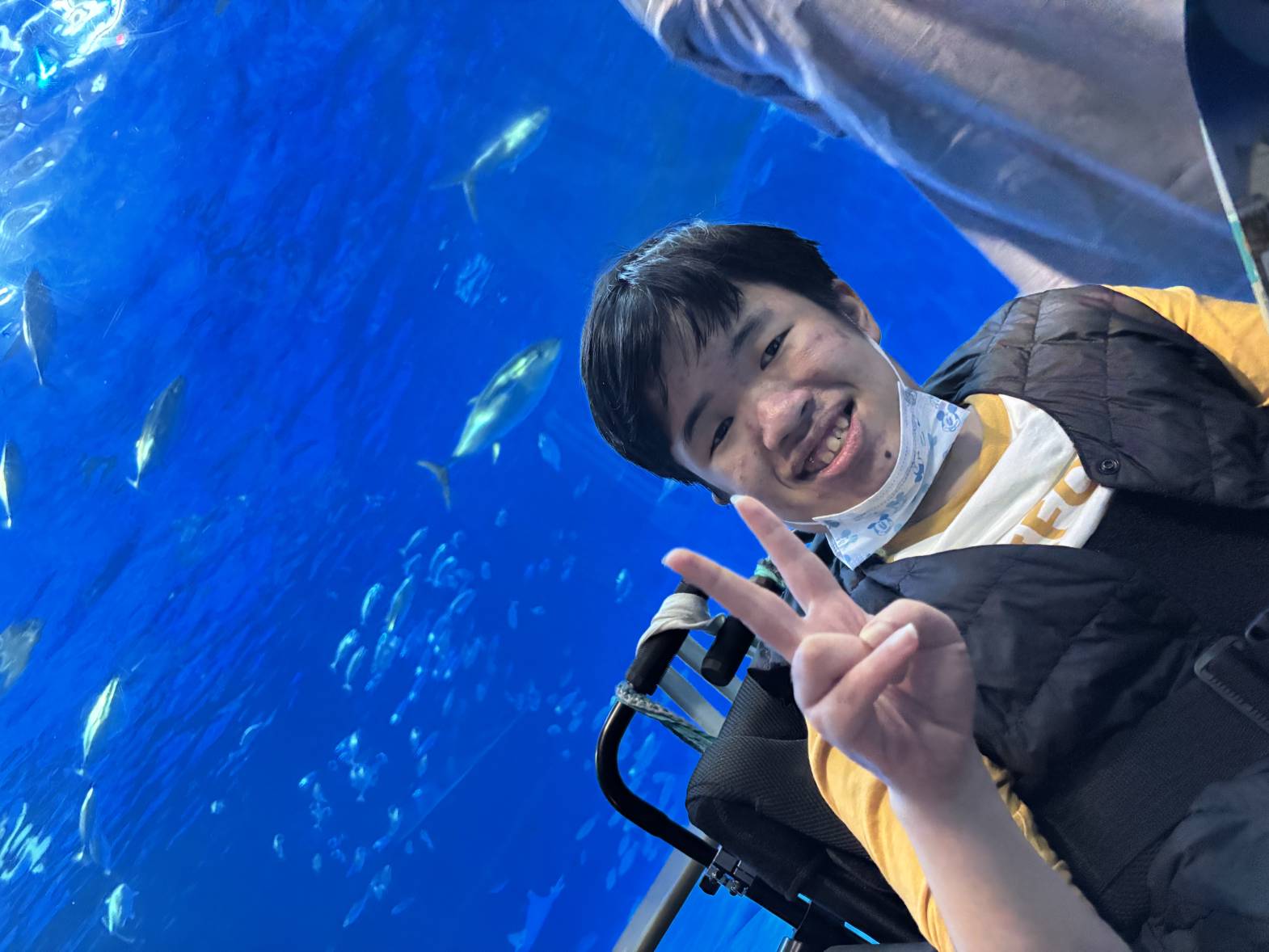 今日は2班目の水族館外出でした! 今日の外出活動をとても楽しみにされていたそうです! 出発前から皆さん、ニコニコです♪ バックヤード見学の後、イルカショーを見て楽しみました。 残念ながらイルカにサインを出せる係には指名されず・・・ それでも皆さんと一緒に手を大きく動かして、サインをしておりました! 次回の水族館外出に参加される方も楽しみにしておいてくださいね♪