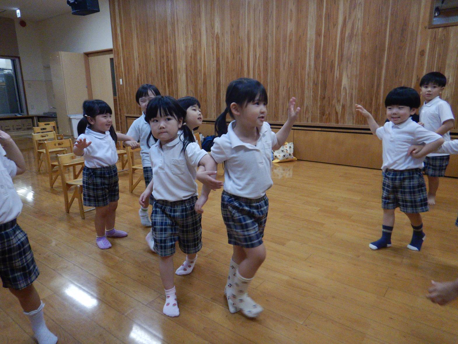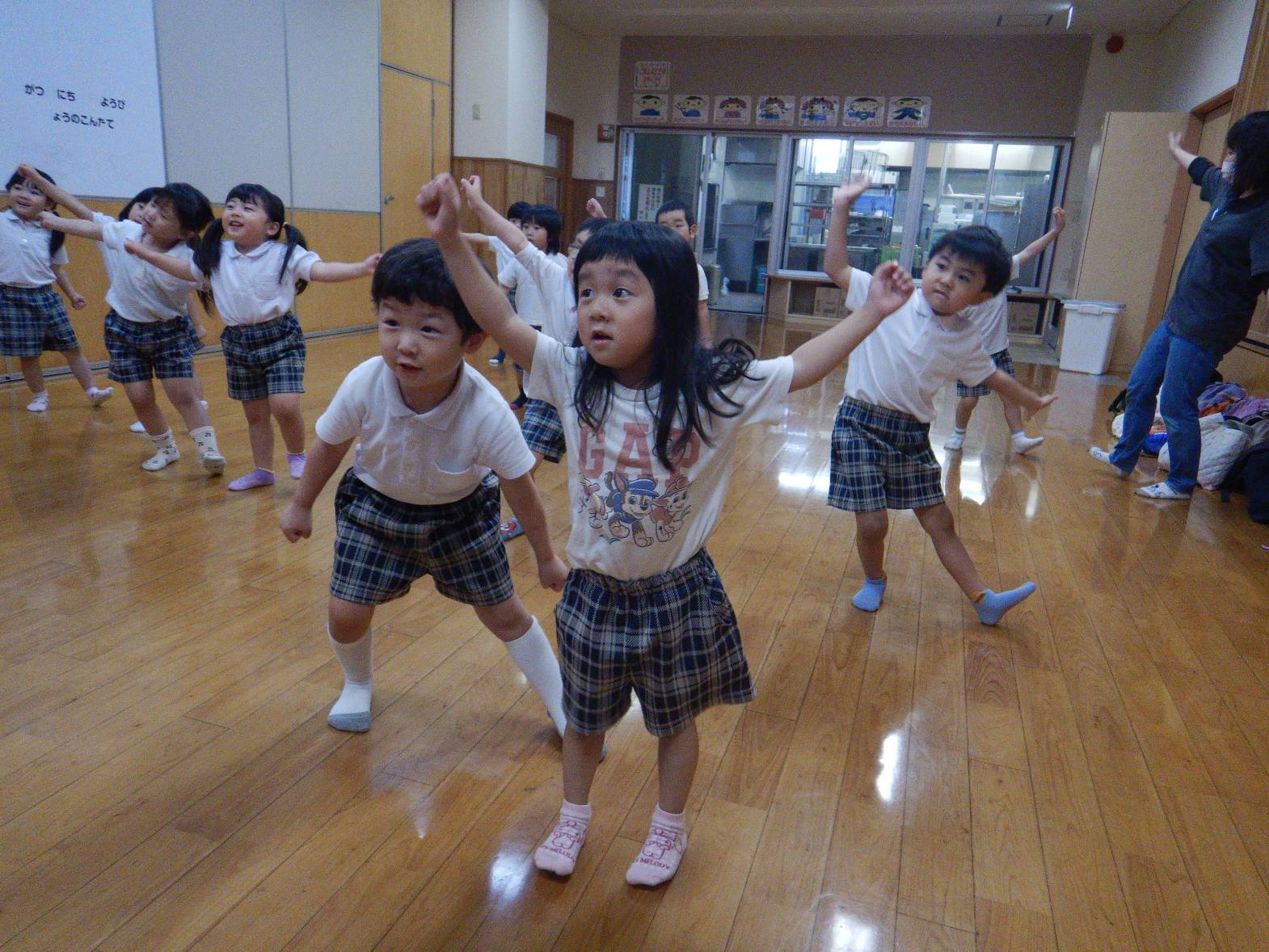 今日はお昼から雨だったのでプレイルームでダンスに挑戦しました!! 「これりす組さんの時に踊ったよね!」「上手に踊れるよ!」と楽しそうな子どもたち。 「これも踊れるかな?」「これしてみたい!」とたくさんのダンスに挑戦していくうさぎ組さんでした。