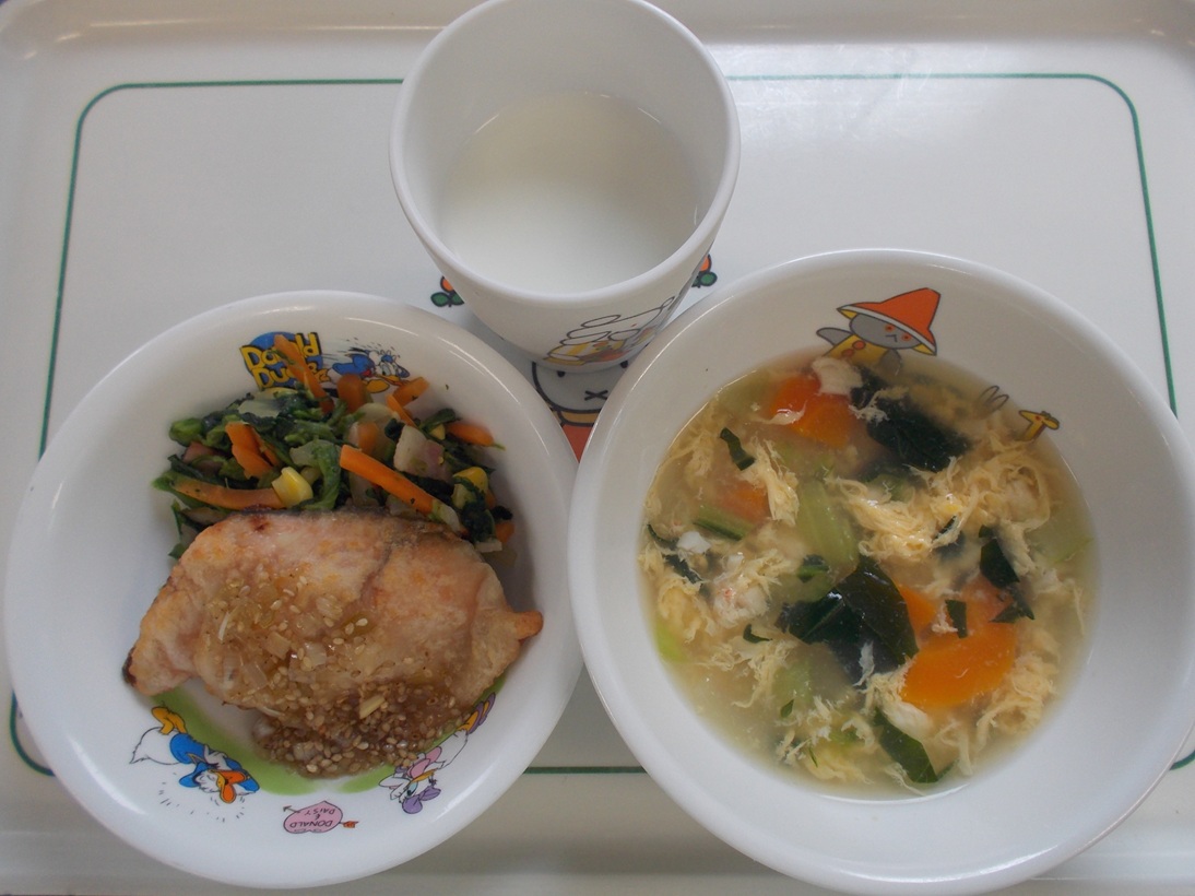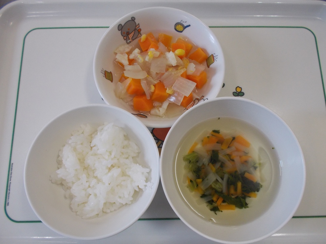 5月26日(月)から5月31日(土)までの給食献立写真・離乳食提供量と写真の一例です。