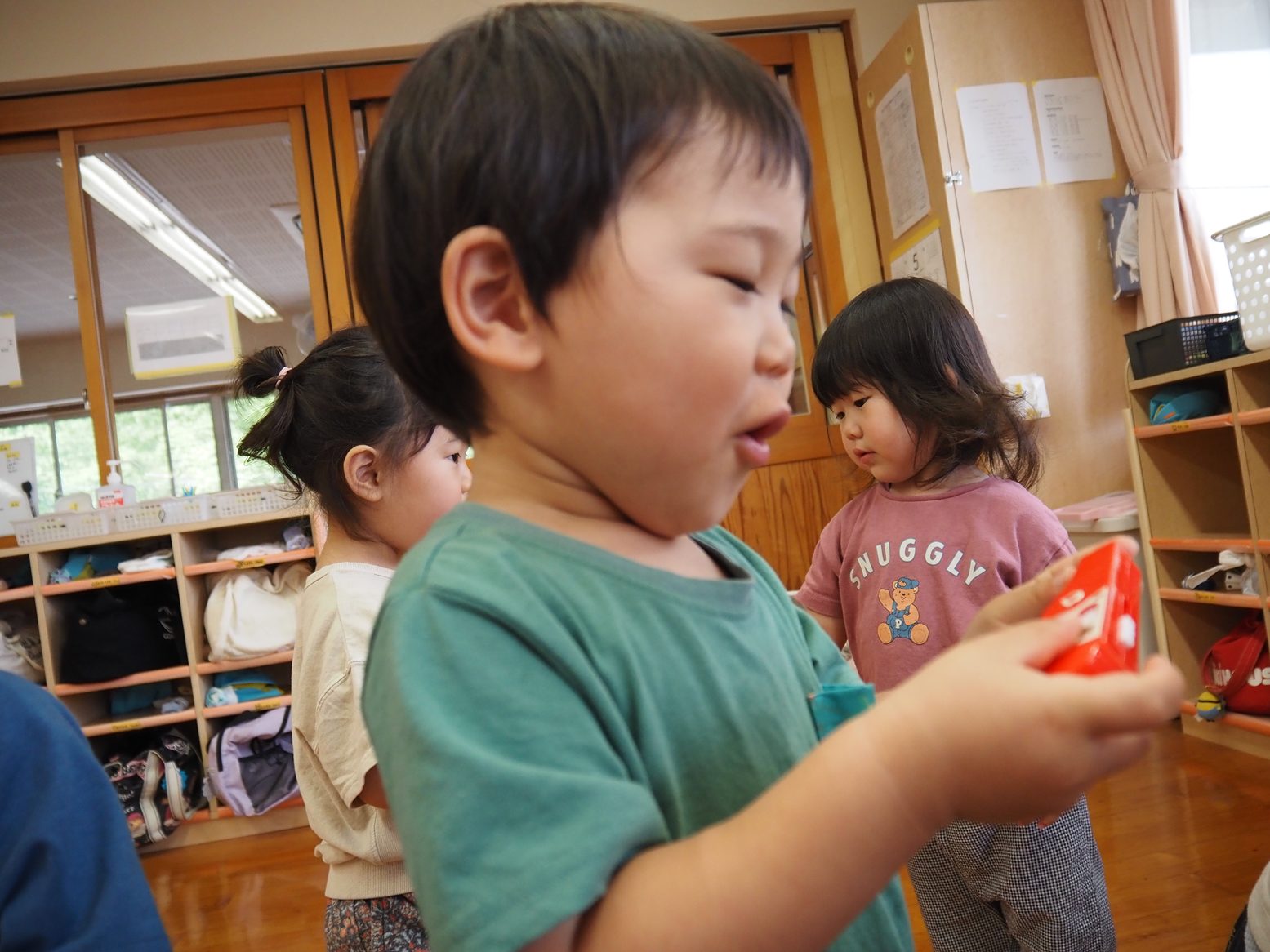 他児との会話を楽しむ姿も見られてきたため、ごっこ遊びをさらに楽しむことができるよう、子どもたちと一緒に実際に製作したもので遊ぶなど、遊びを工夫していきたいと思います。