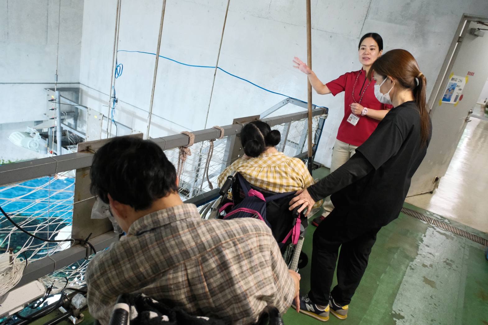 本日は4組目の水族館外出でした🐟 大きな黒潮水槽の中をゆったり泳ぐ魚達に癒されました。 その後バックヤード見学に行き、 皆さん、普段見ない位置からの水槽に釘付けでした☆ イルカショーは下の階に行き、水中から迫力あるイルカの泳ぎを観察しました🐬 今日は天気が良かったこともあり、イルカショーの後に外の水路で青空イルカウォッチングも見に行くことができました! 久しぶりの水族館、満喫できたみたいでした☆