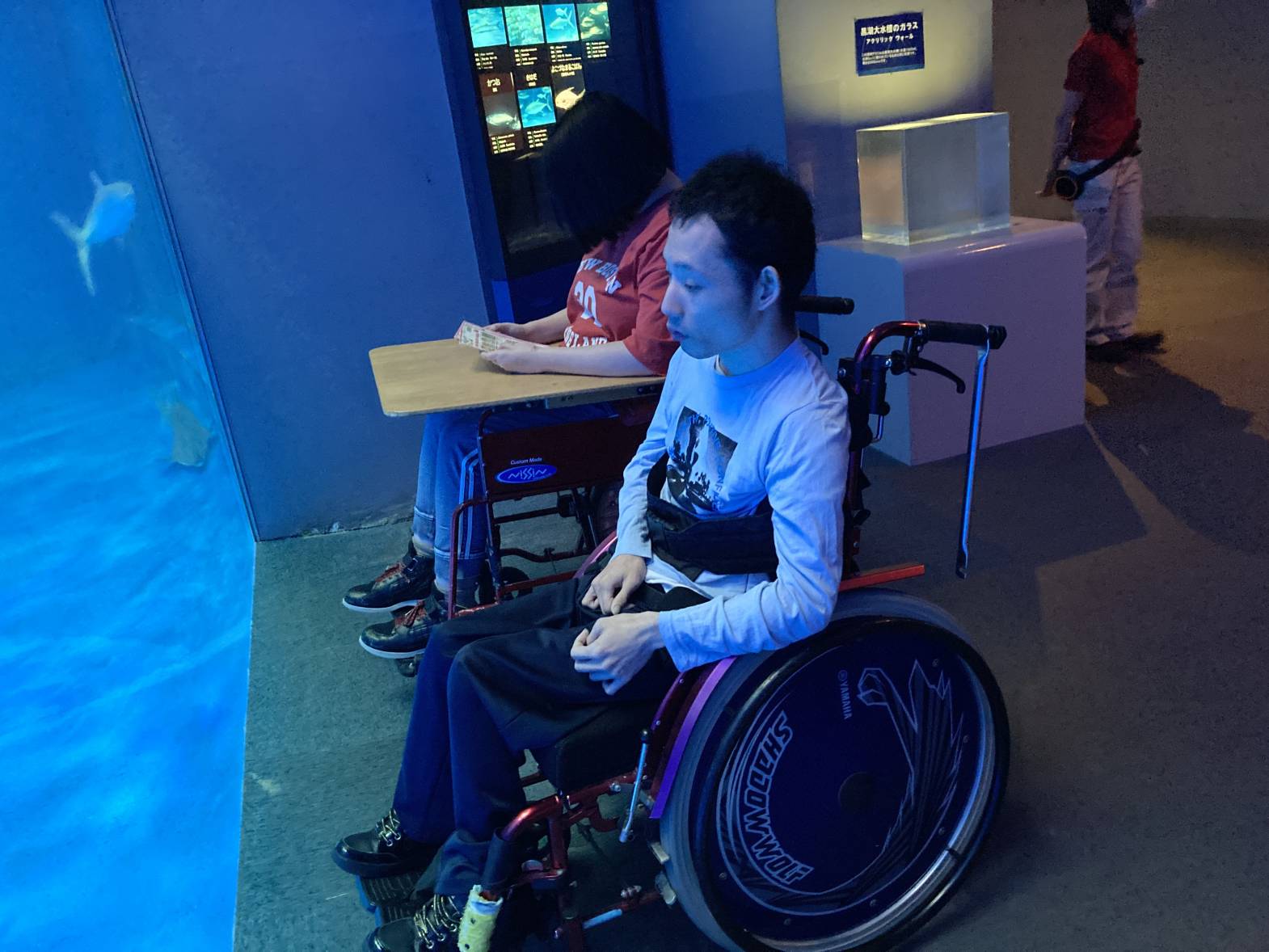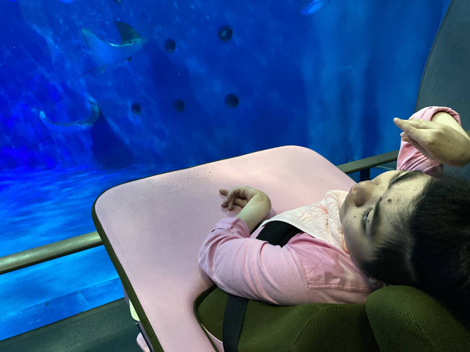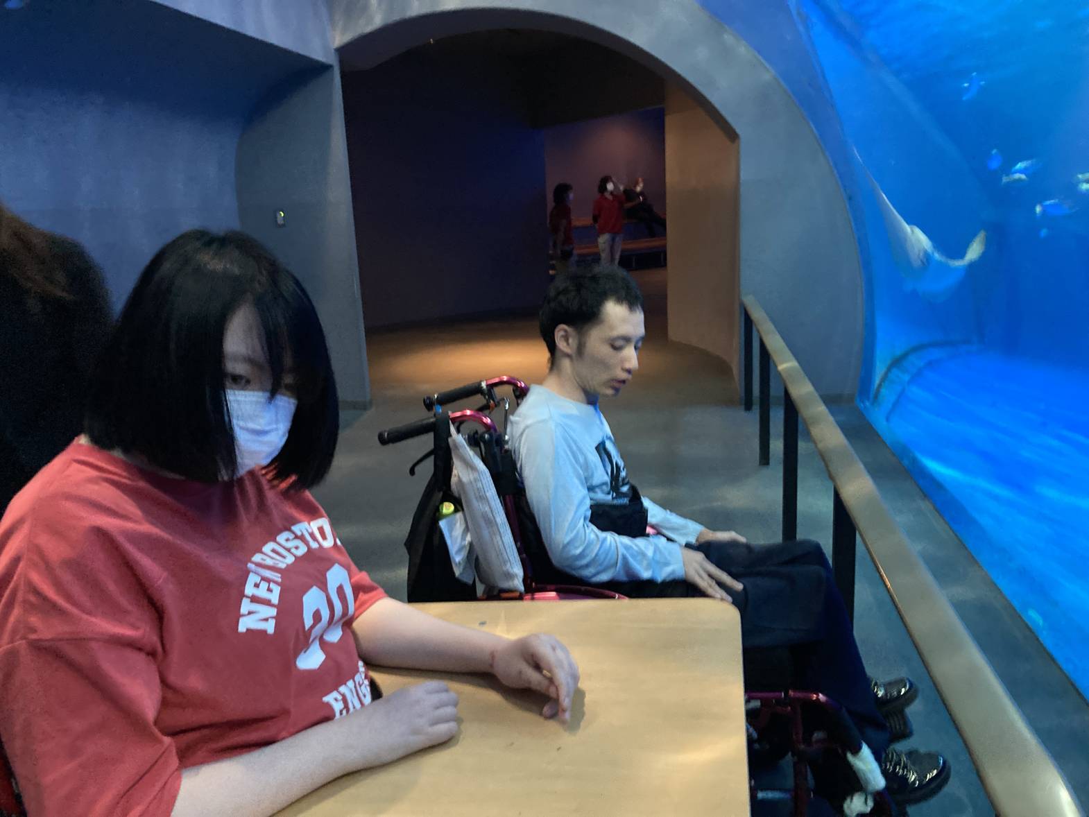 今日は3班目が水族館外出に出発しました! 黒潮大水槽の迫力は圧巻ですね! 水族館について早々、皆さん水槽内で泳ぐたくさんの魚たちに見入っておりました! バックヤード見学は普段見る水槽と違って、上から覗く水槽はなんだか不思議な感覚でしたね! 最後はイルカショーの見学をしました♪そして、なんと一番前の席を取れました! とっても楽しかったですが、イルカたちとの距離が近すぎたのかちょっとびっくりしちゃう場面も・・・ それでも、水族館外出は楽しかった様子でした♪