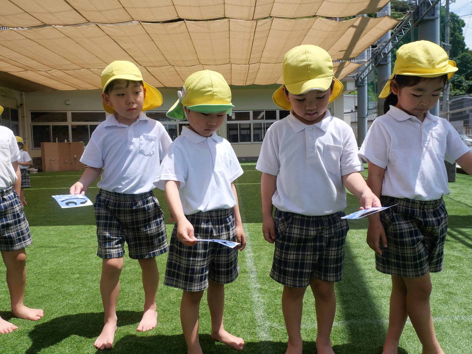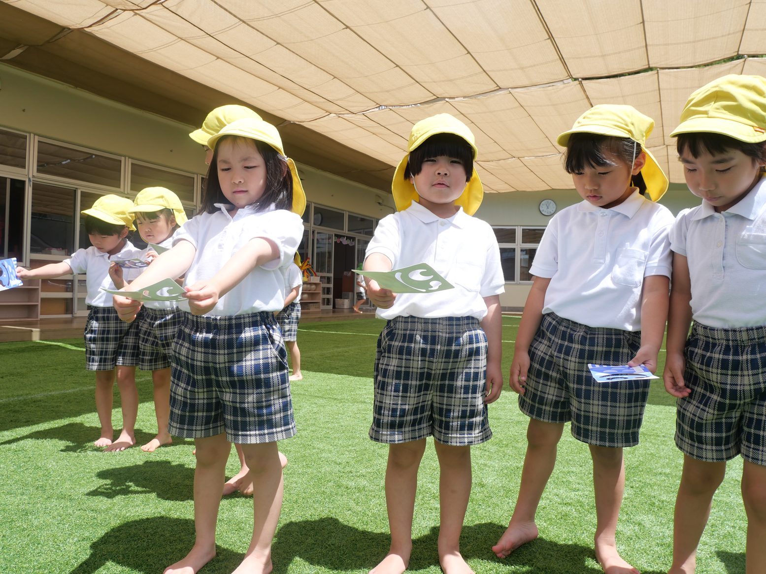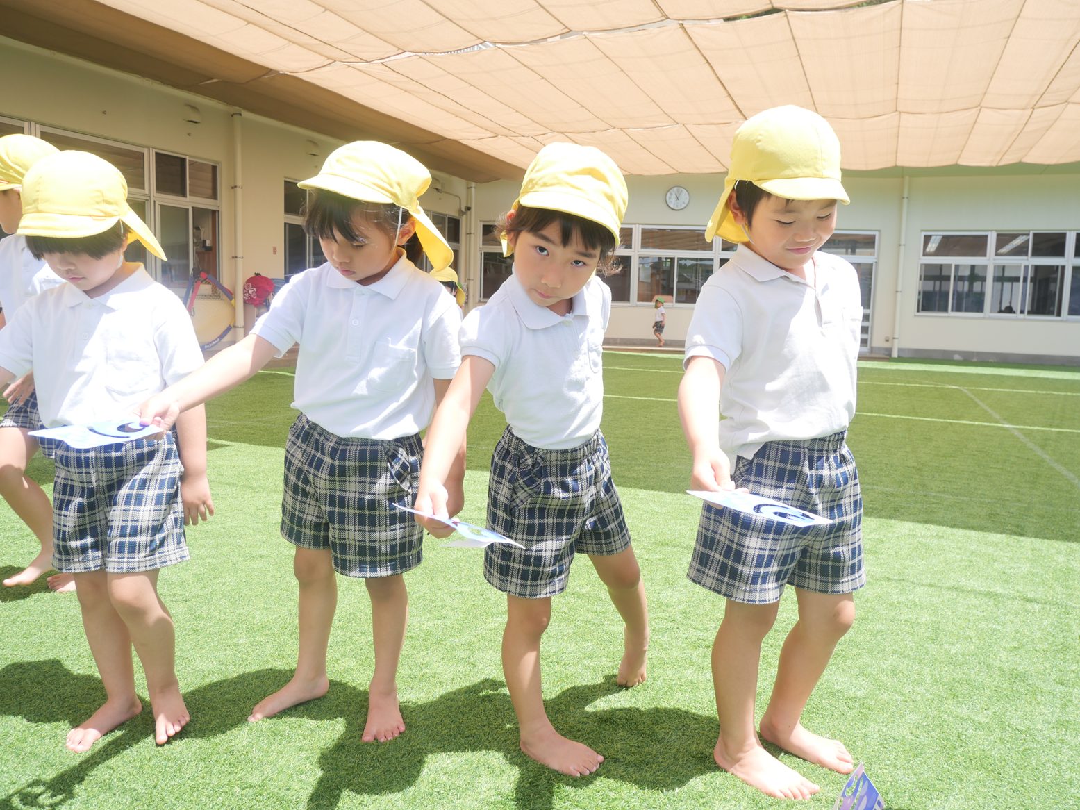 「見て、ここに影ができているよ。」「こいのぼりが出てきた!」と、大興奮で話すきりん組さん。